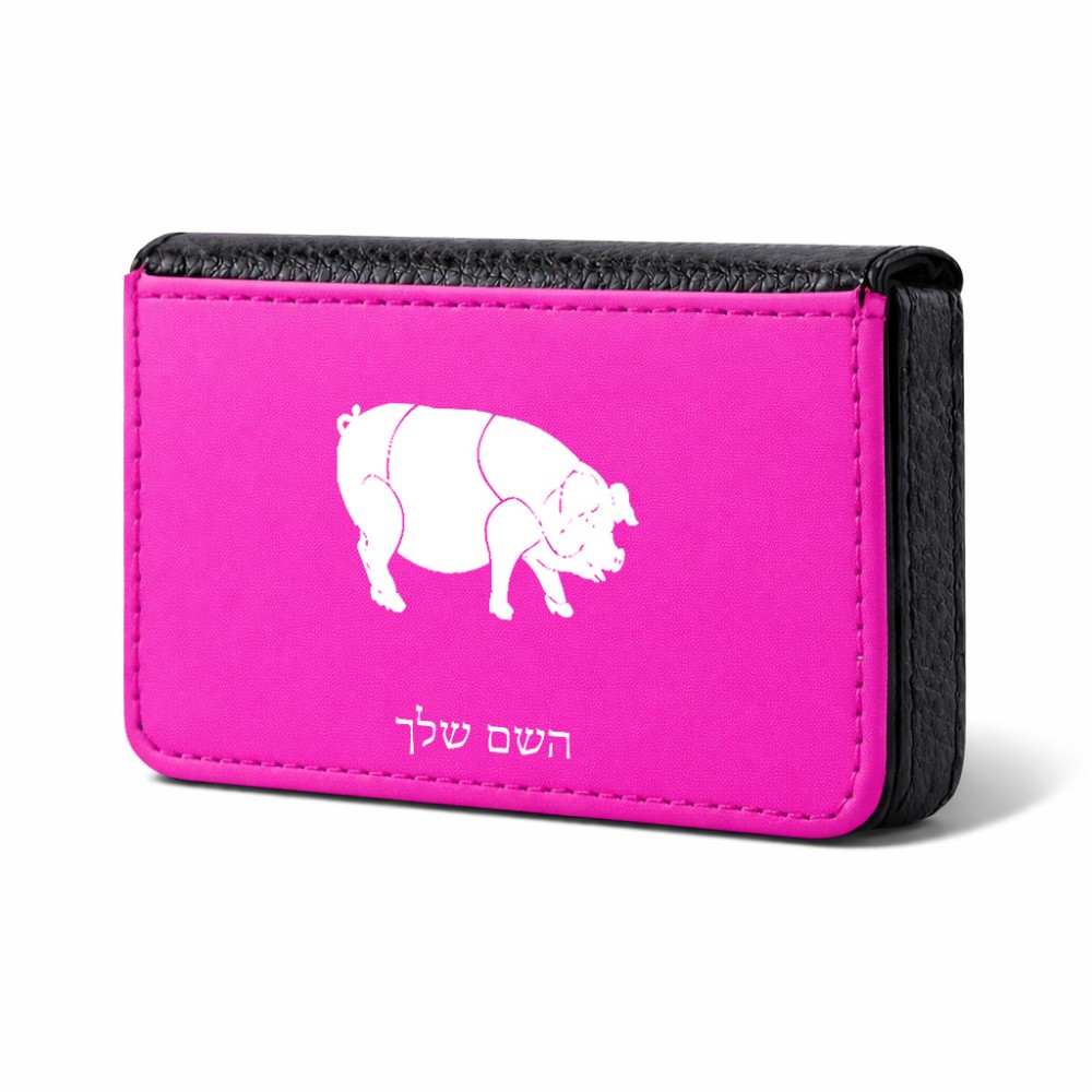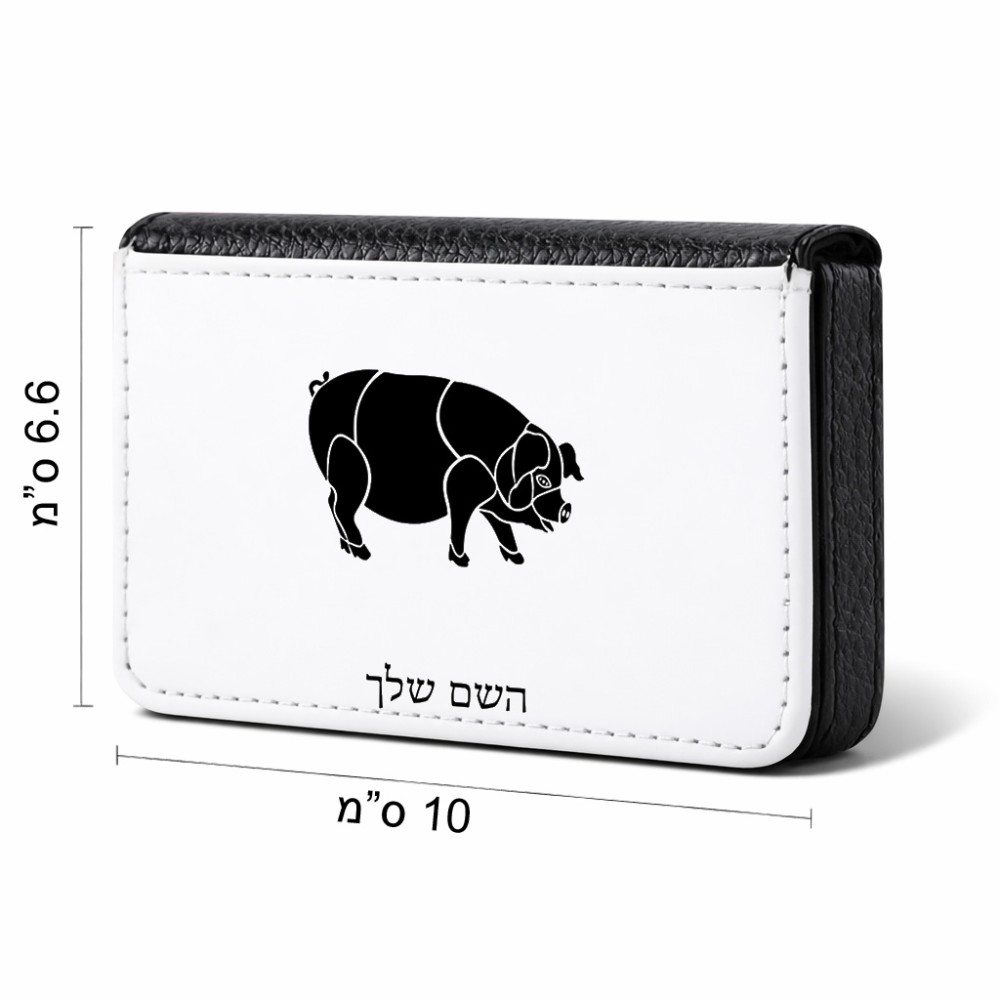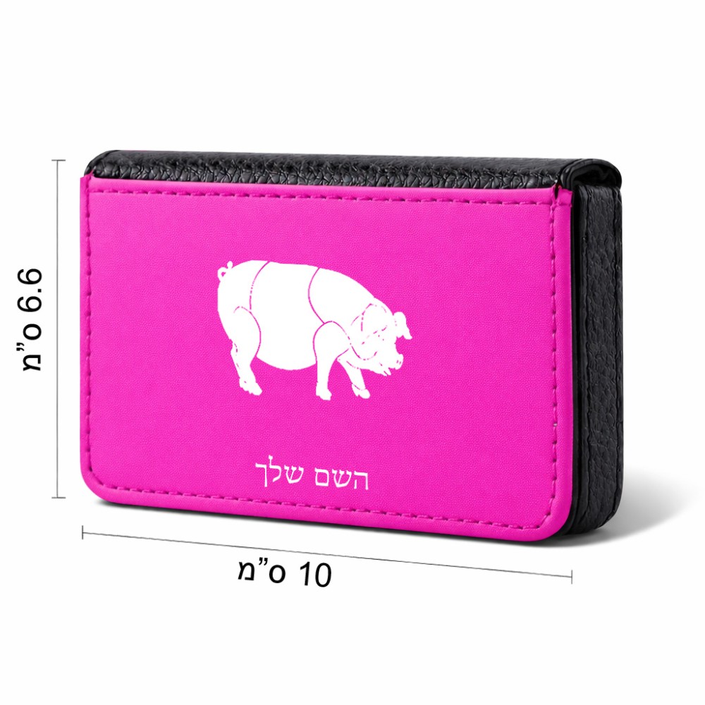 ארנק כרטיסי אשראי בעיצוב אישי עם השם שלך בעיצוב חזיר גודל גודל ארנק כרטיסי אשראי 10 × 6.6 ס"מ. את השם המבוקש ניתן לציין בהזמנה, אם לא צויין אנחנו ניצור קשר לבירור.