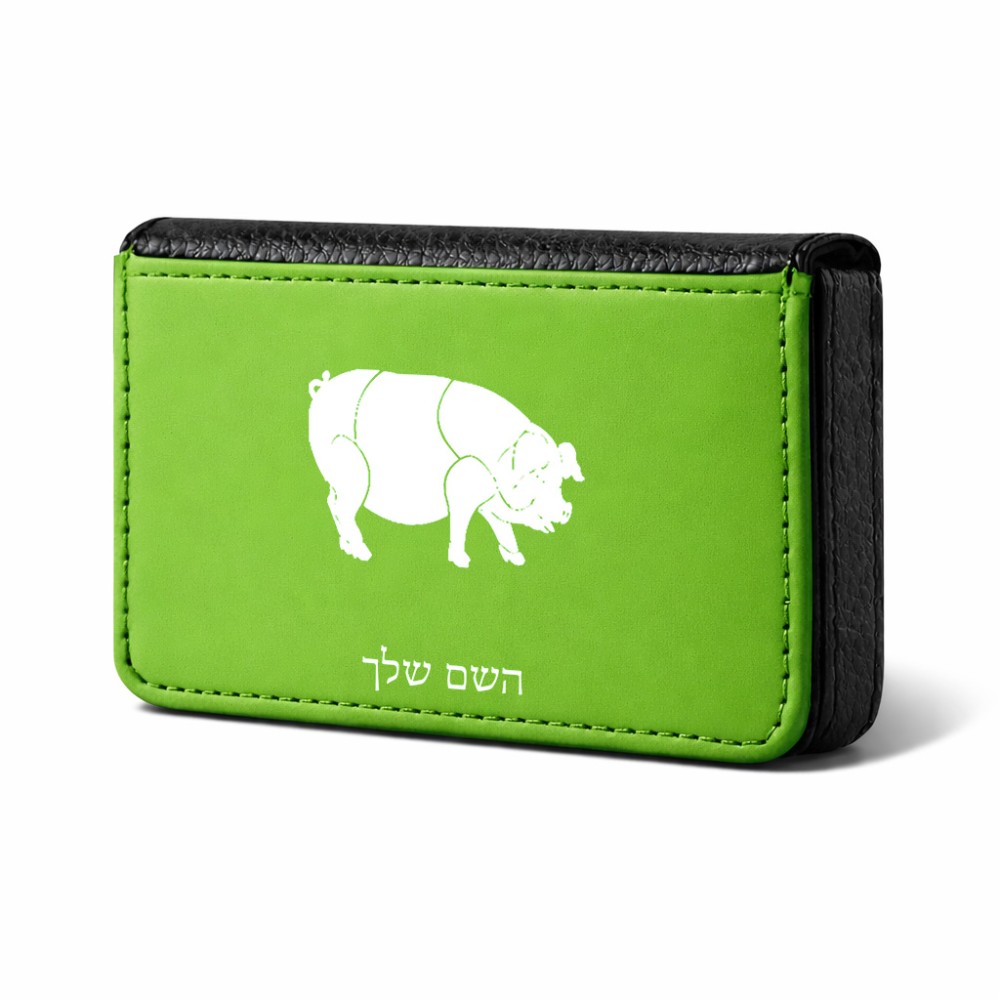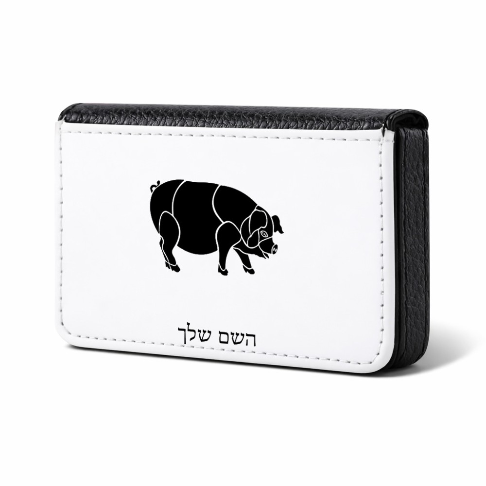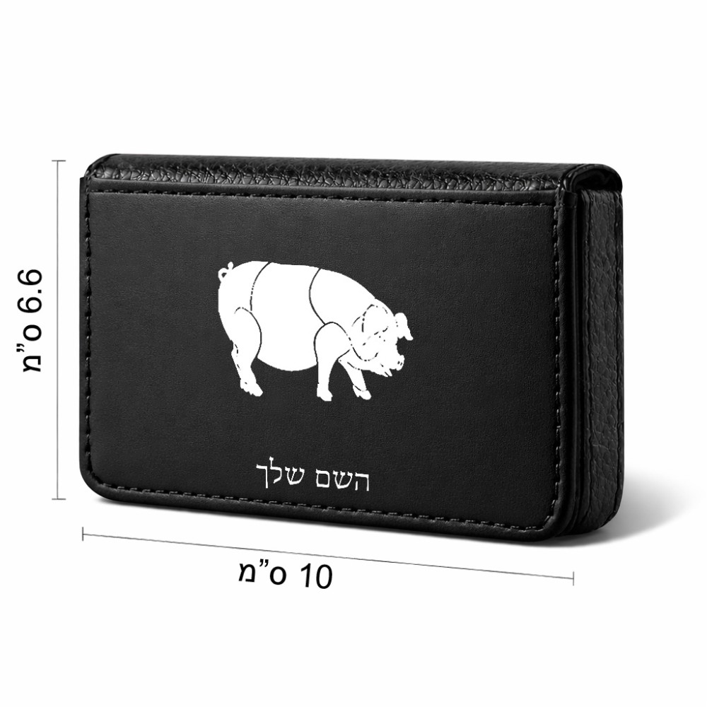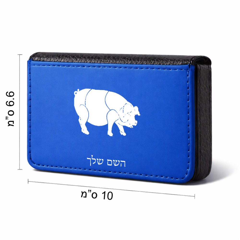 ארנק כרטיסי אשראי בעיצוב אישי עם השם שלך בעיצוב חזיר גודל גודל ארנק כרטיסי אשראי 10 × 6.6 ס"מ. את השם המבוקש ניתן לציין בהזמנה, אם לא צויין אנחנו ניצור קשר לבירור.