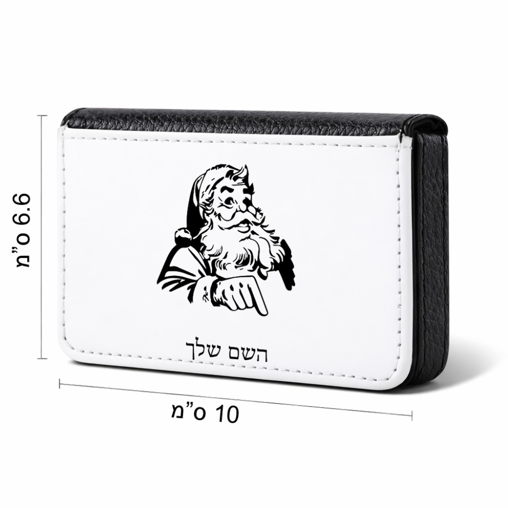ארנק כרטיסי אשראי בעיצוב אישי עם השם שלך בעיצוב סנטה קלאוס גודל גודל ארנק כרטיסי אשראי 10 × 6.6 ס"מ. את השם המבוקש ניתן לציין בהזמנה, אם לא צויין אנחנו ניצור קשר לבירור.