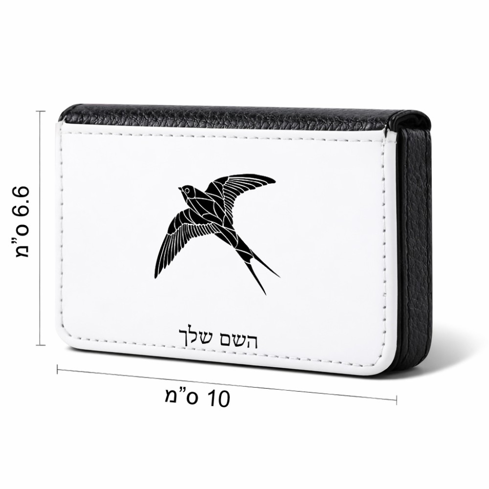 ארנק כרטיסי אשראי בעיצוב אישי עם השם שלך בעיצוב לבלוע גודל גודל ארנק כרטיסי אשראי 10 × 6.6 ס"מ. את השם המבוקש ניתן לציין בהזמנה, אם לא צויין אנחנו ניצור קשר לבירור.