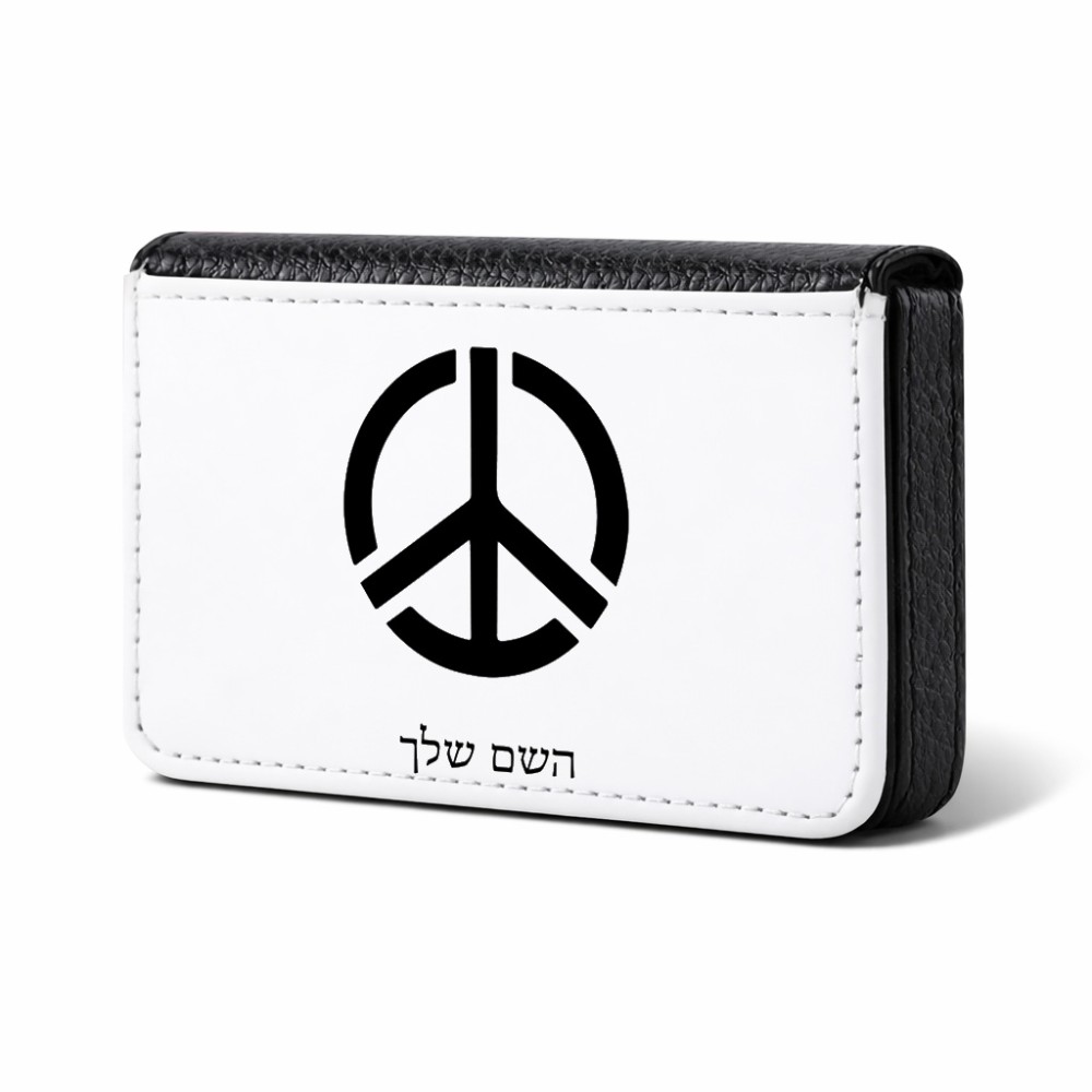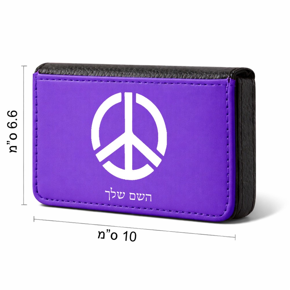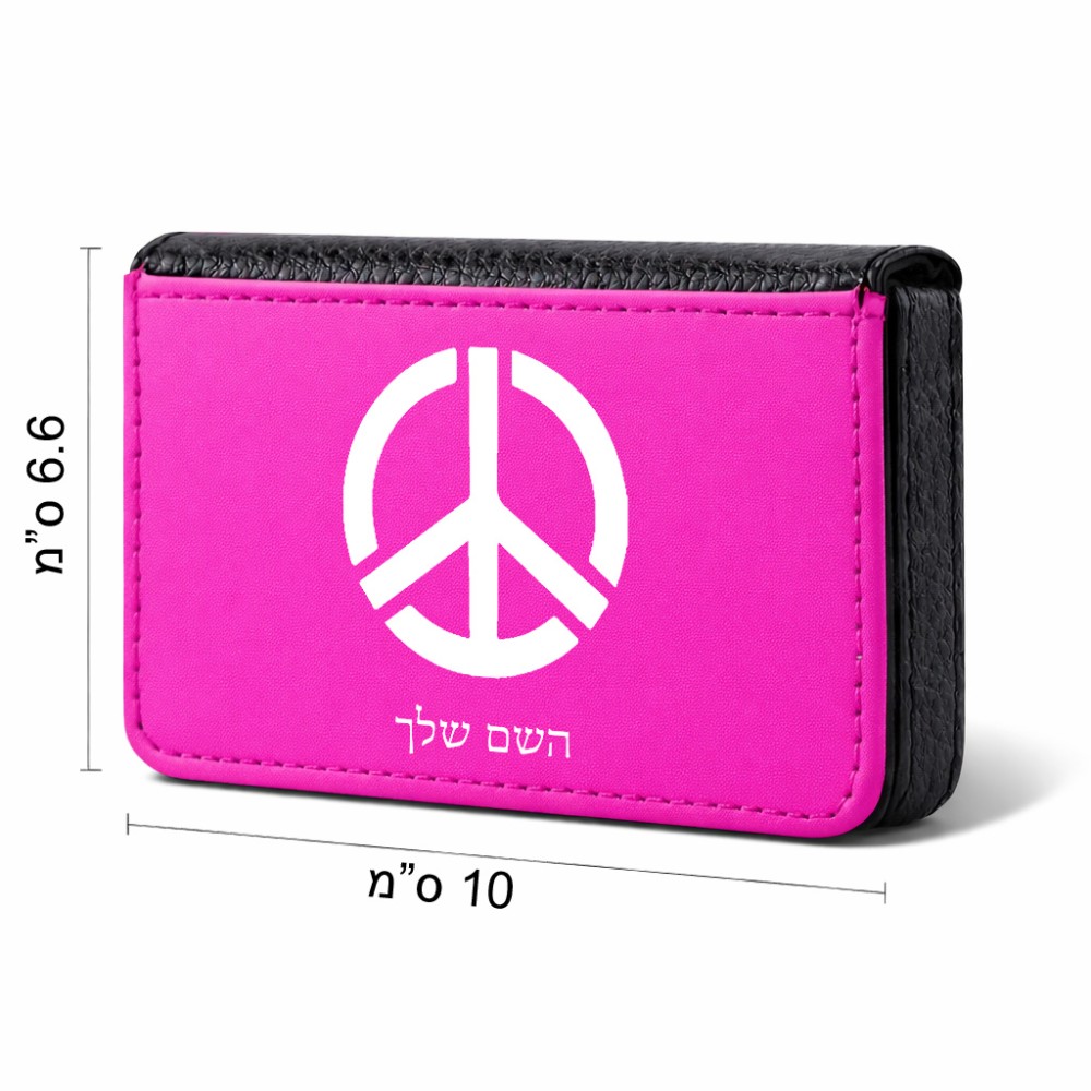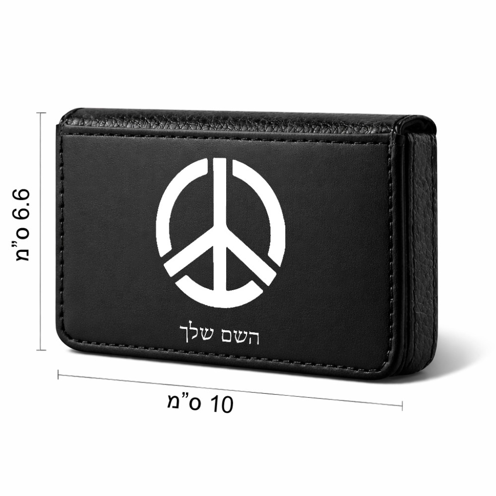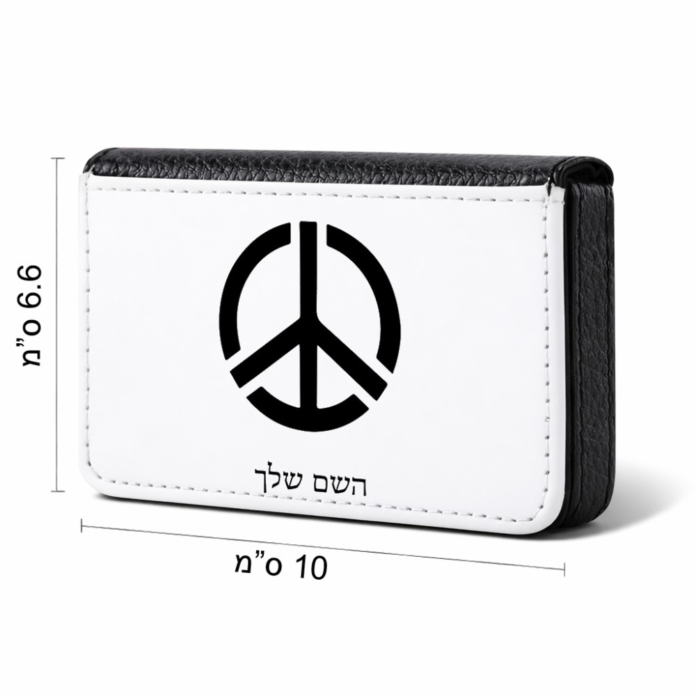 ארנק כרטיסי אשראי בעיצוב אישי עם השם שלך בעיצוב סמל השלום גודל גודל ארנק כרטיסי אשראי 10 × 6.6 ס"מ. את השם המבוקש ניתן לציין בהזמנה, אם לא צויין אנחנו ניצור קשר לבירור.