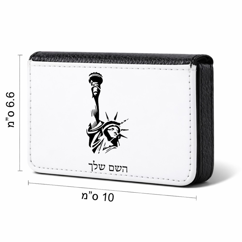 ארנק כרטיסי אשראי בעיצוב אישי עם השם שלך בעיצוב פסל החירות גודל גודל ארנק כרטיסי אשראי 10 × 6.6 ס"מ. את השם המבוקש ניתן לציין בהזמנה, אם לא צויין אנחנו ניצור קשר לבירור.