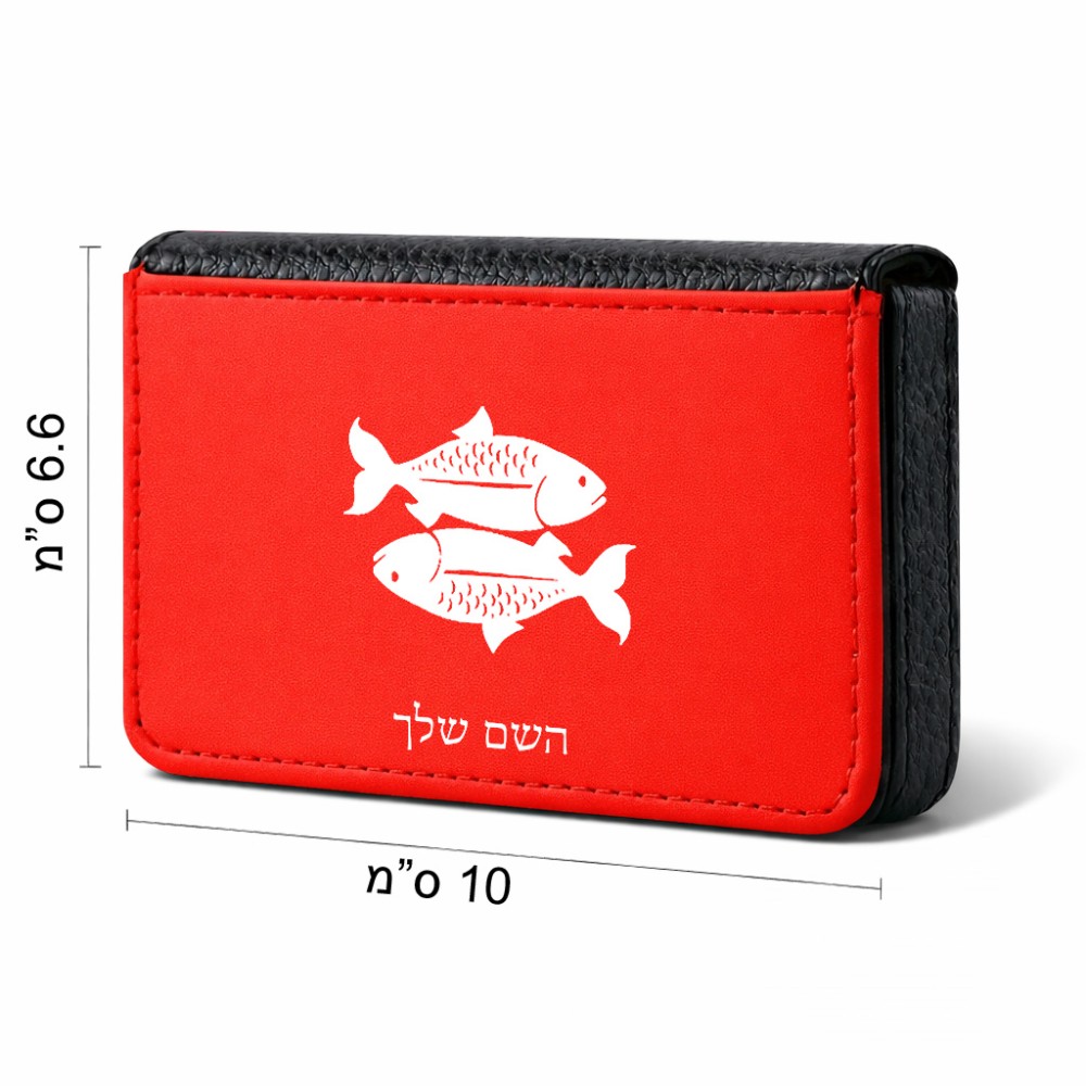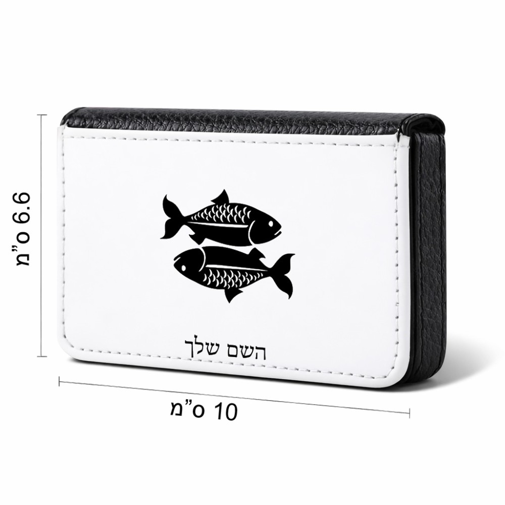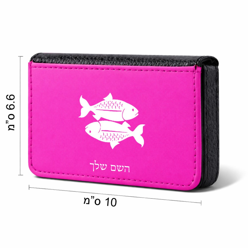 ארנק כרטיסי אשראי בעיצוב אישי עם השם שלך בעיצוב מזלות - דגים גודל גודל ארנק כרטיסי אשראי 10 × 6.6 ס"מ. את השם המבוקש ניתן לציין בהזמנה, אם לא צויין אנחנו ניצור קשר לבירור.
