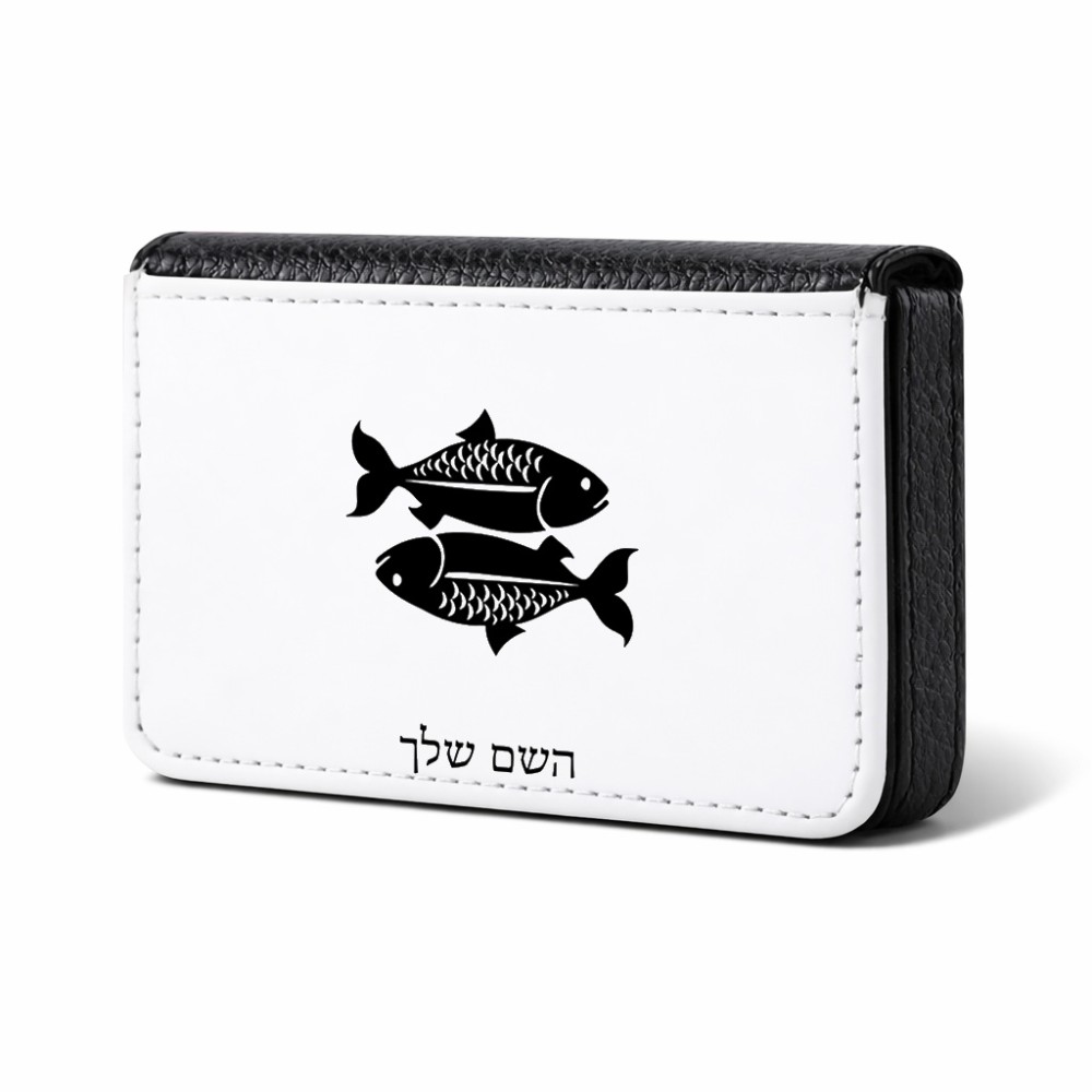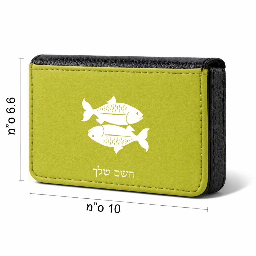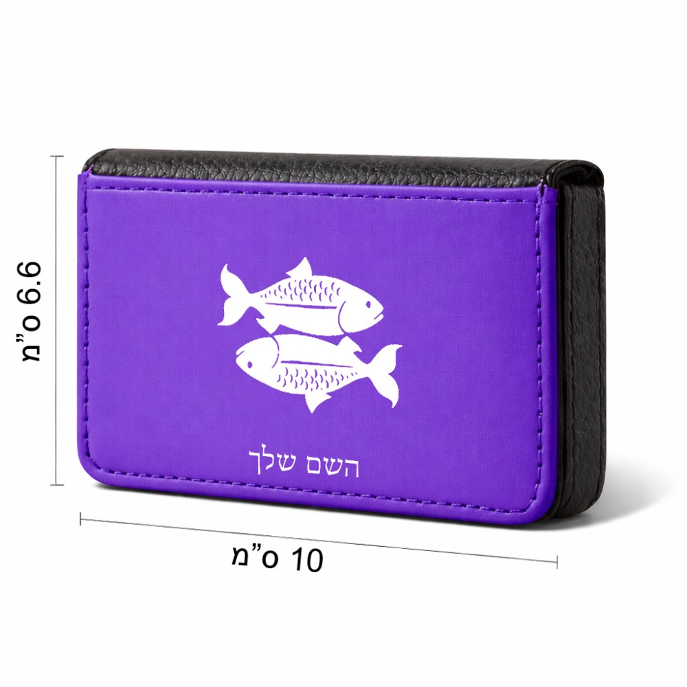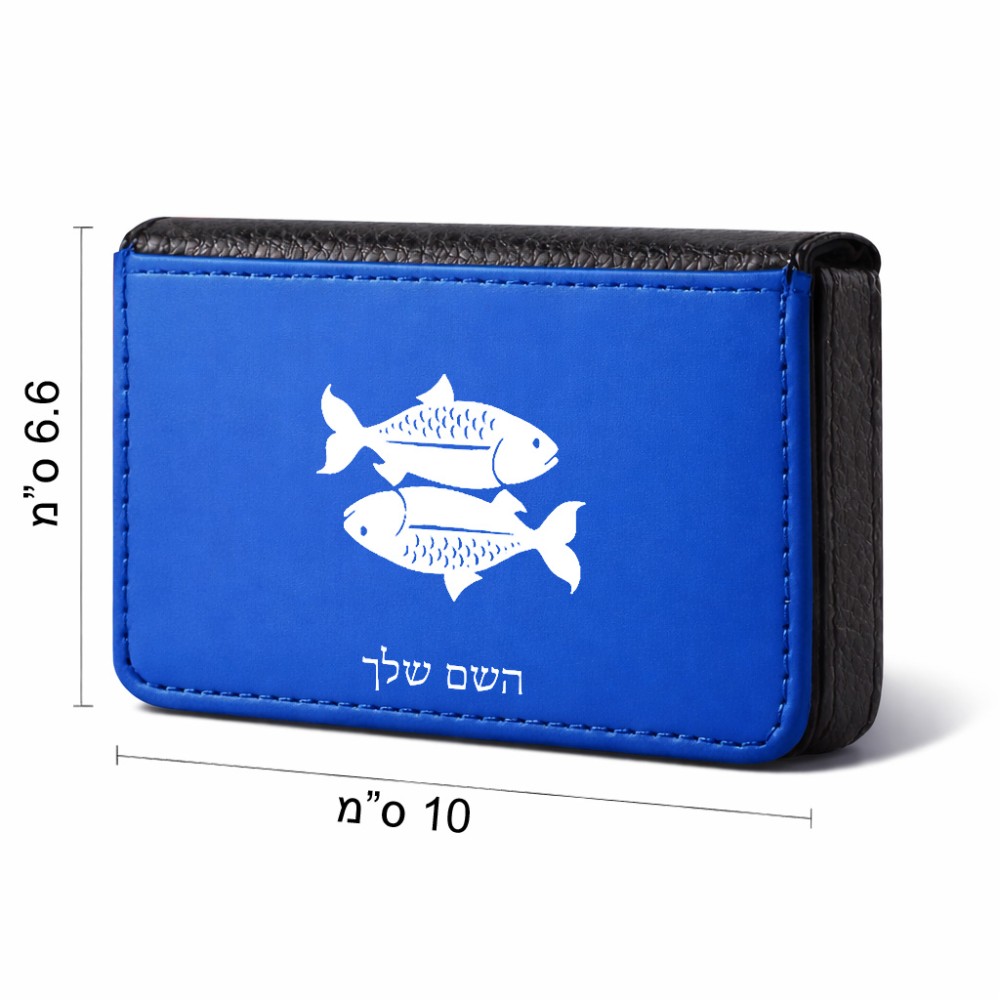 ארנק כרטיסי אשראי בעיצוב אישי עם השם שלך בעיצוב מזלות - דגים גודל גודל ארנק כרטיסי אשראי 10 × 6.6 ס"מ. את השם המבוקש ניתן לציין בהזמנה, אם לא צויין אנחנו ניצור קשר לבירור.
