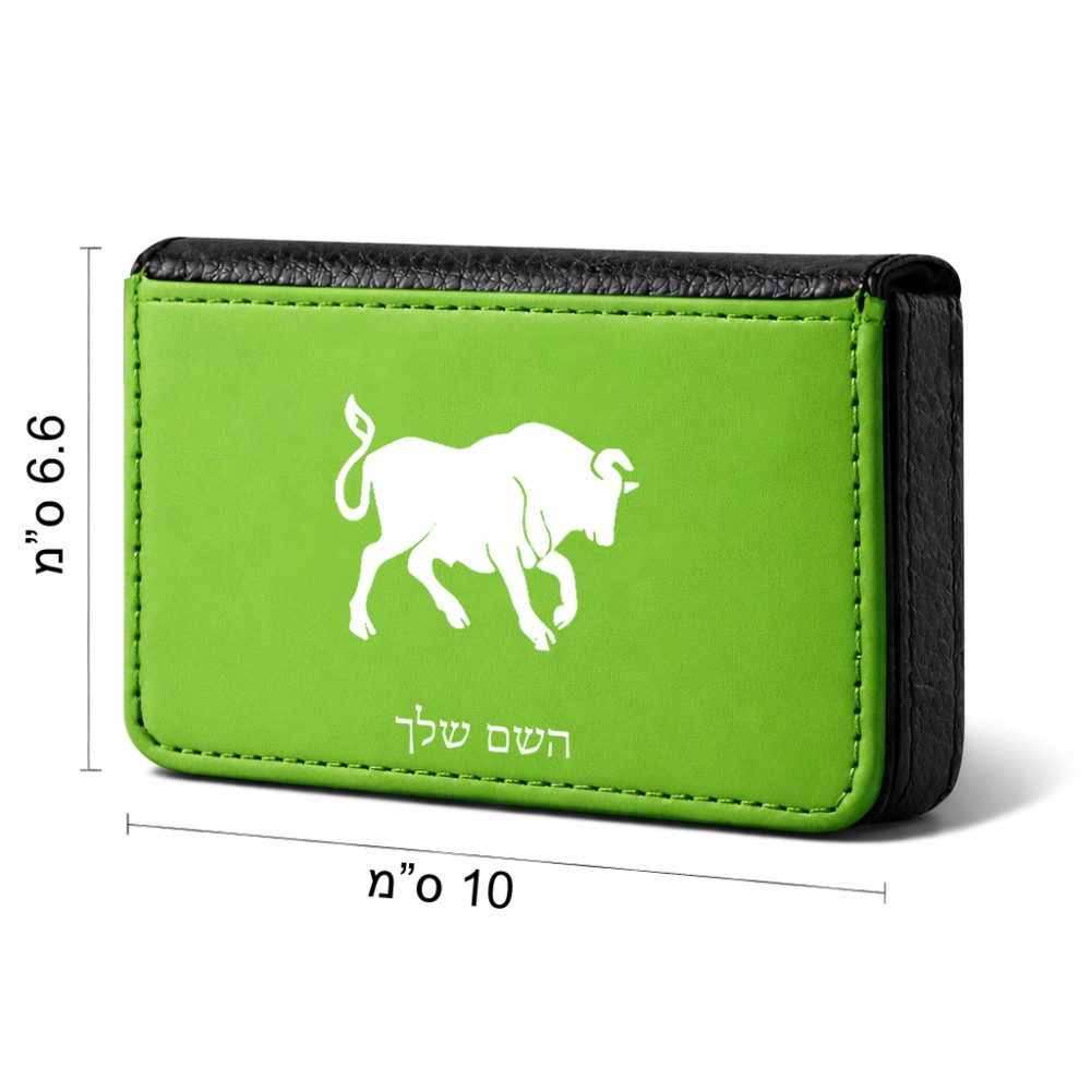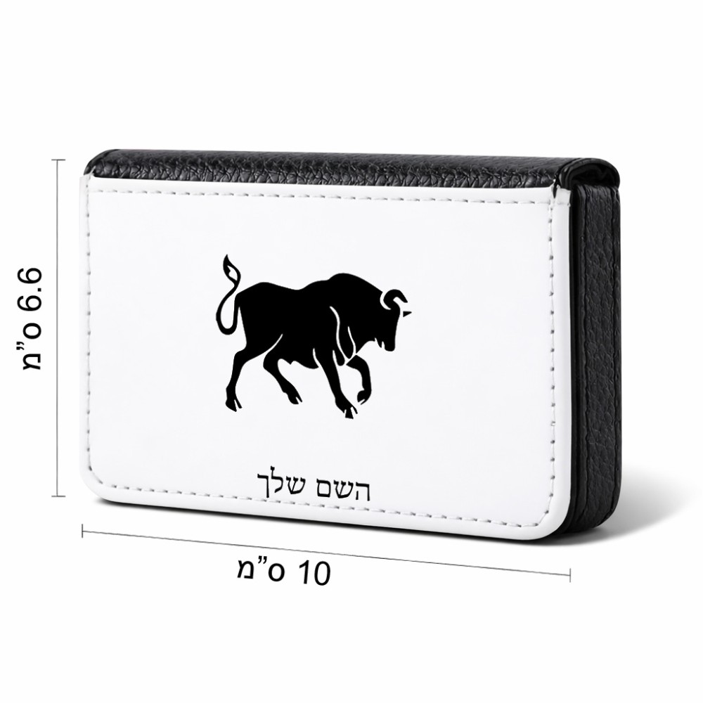 ארנק כרטיסי אשראי בעיצוב אישי עם השם שלך בעיצוב מזלות - שור גודל גודל ארנק כרטיסי אשראי 10 × 6.6 ס"מ. את השם המבוקש ניתן לציין בהזמנה, אם לא צויין אנחנו ניצור קשר לבירור.