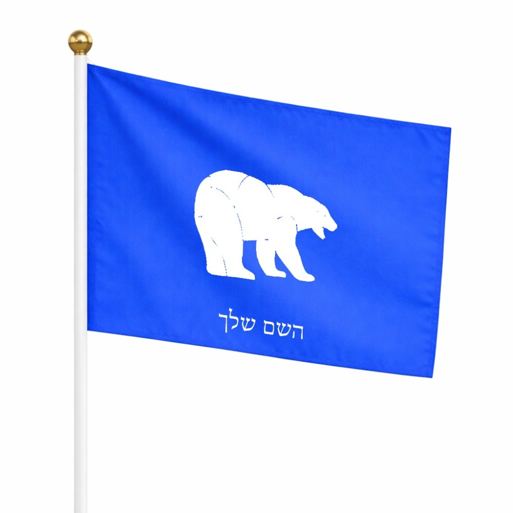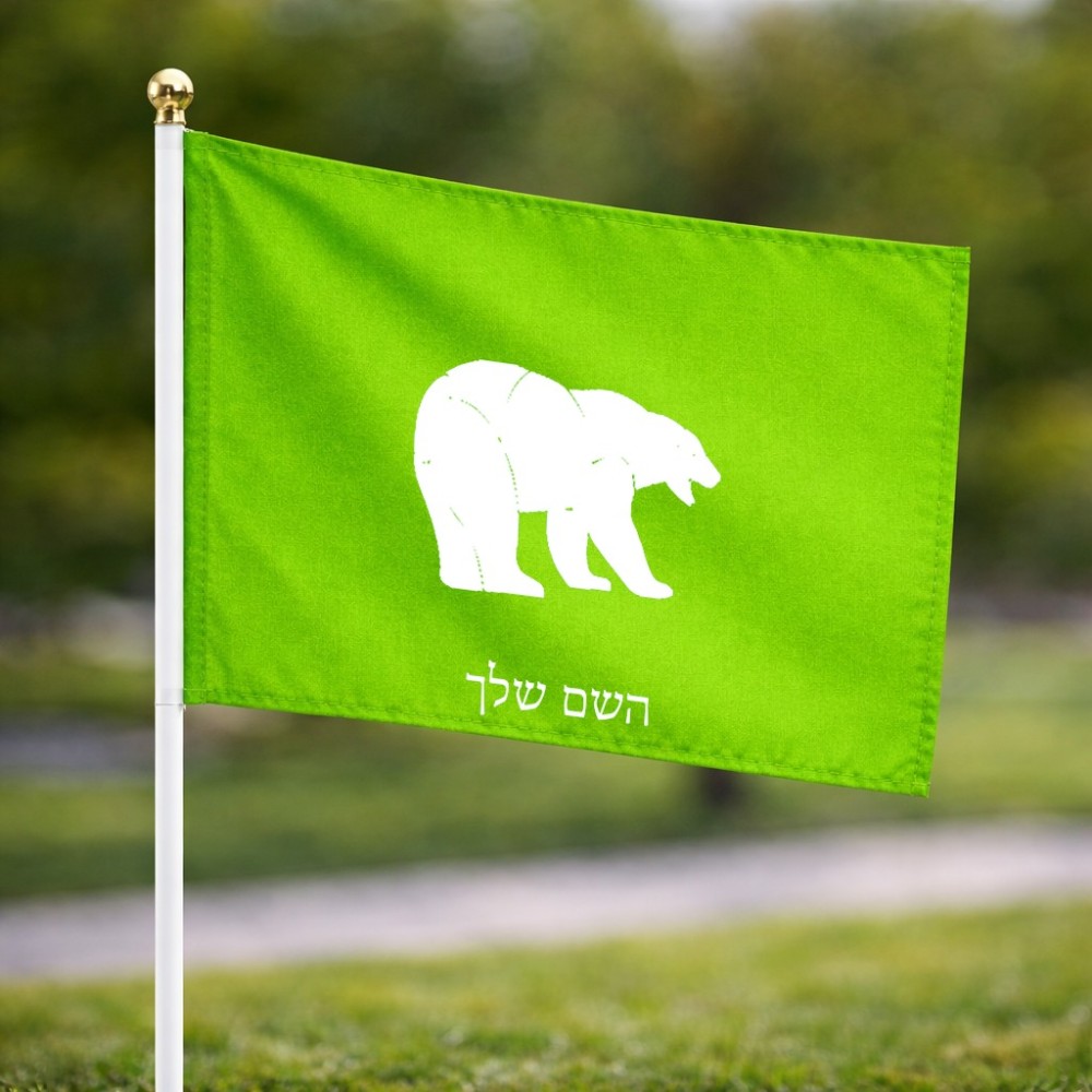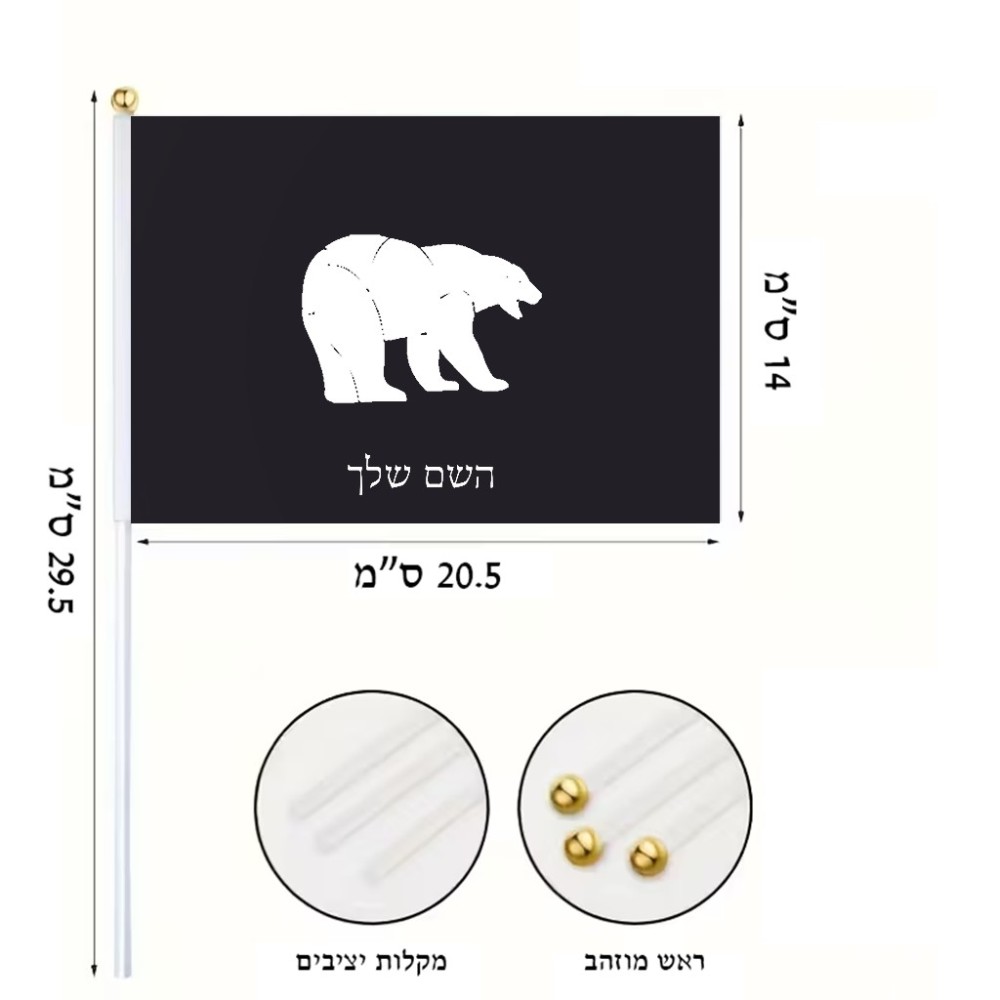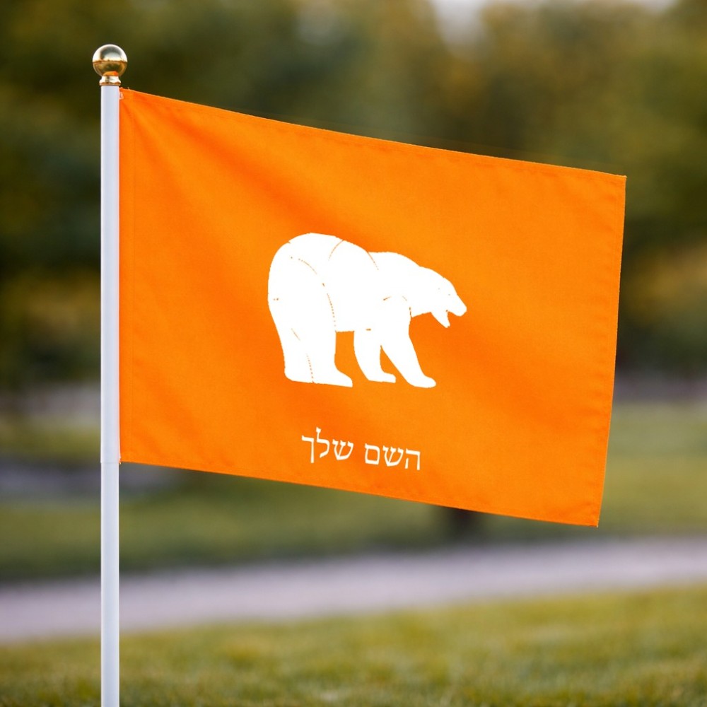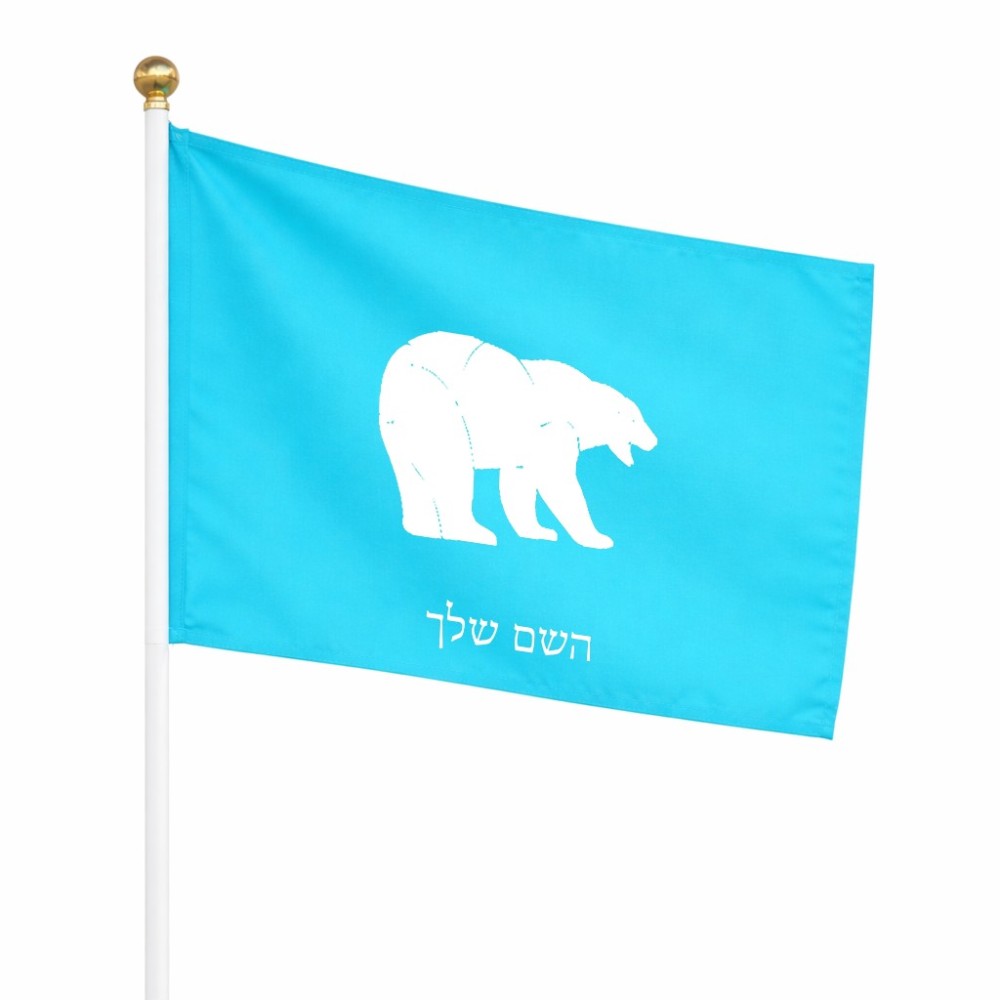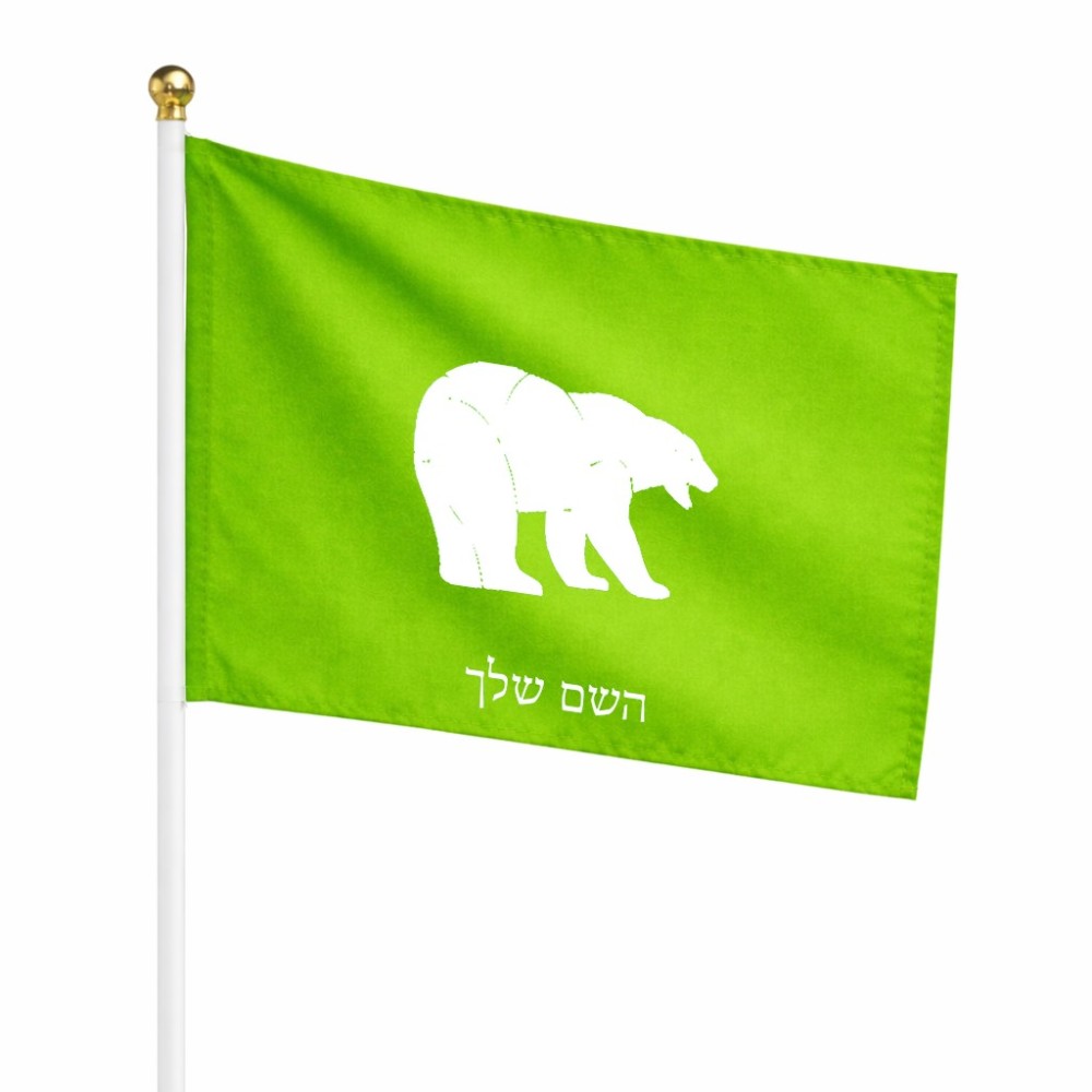 דיגלון בעיצוב אישי עם השם שלך בעיצוב דוב גודל הדיגלון 20.5 × 14 ס"מ, ההדפסה מתבצעת בשני צידי הדגל, את השם המבוקש ניתן לציין בהזמנה, אם לא צויין אנחנו ניצור קשר לבירור.