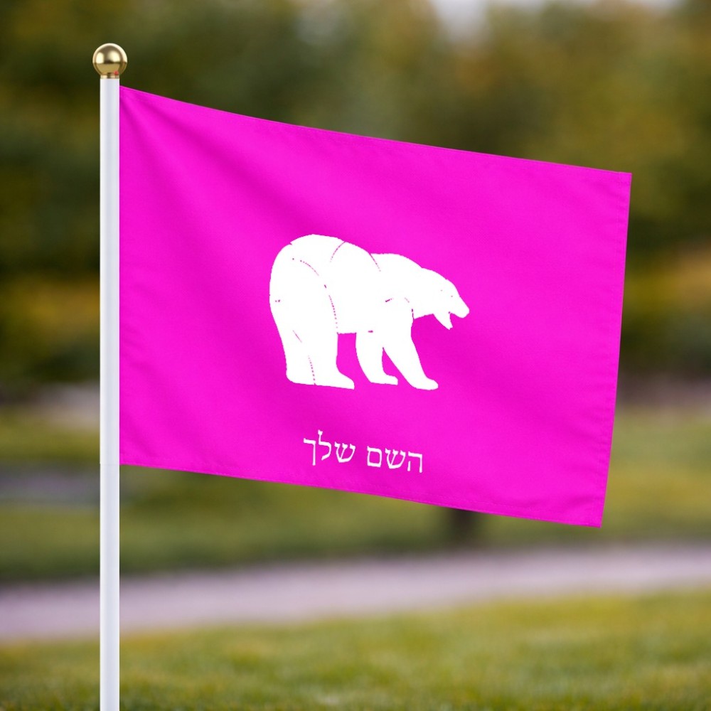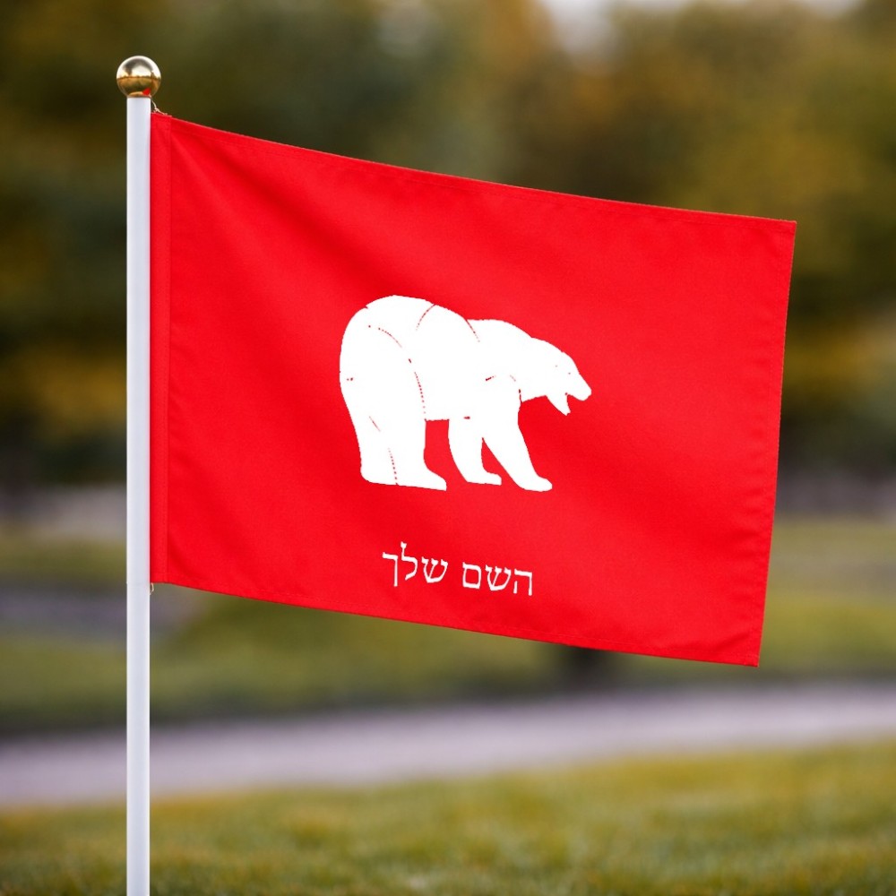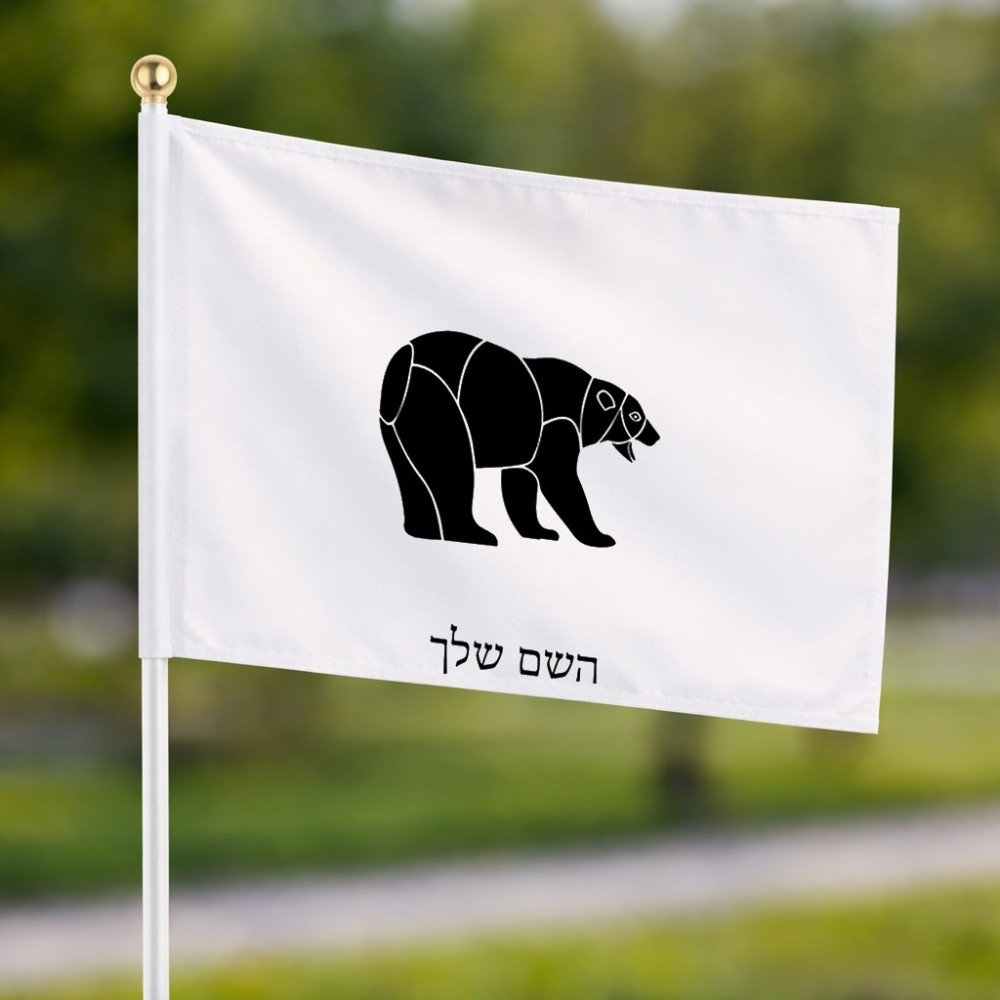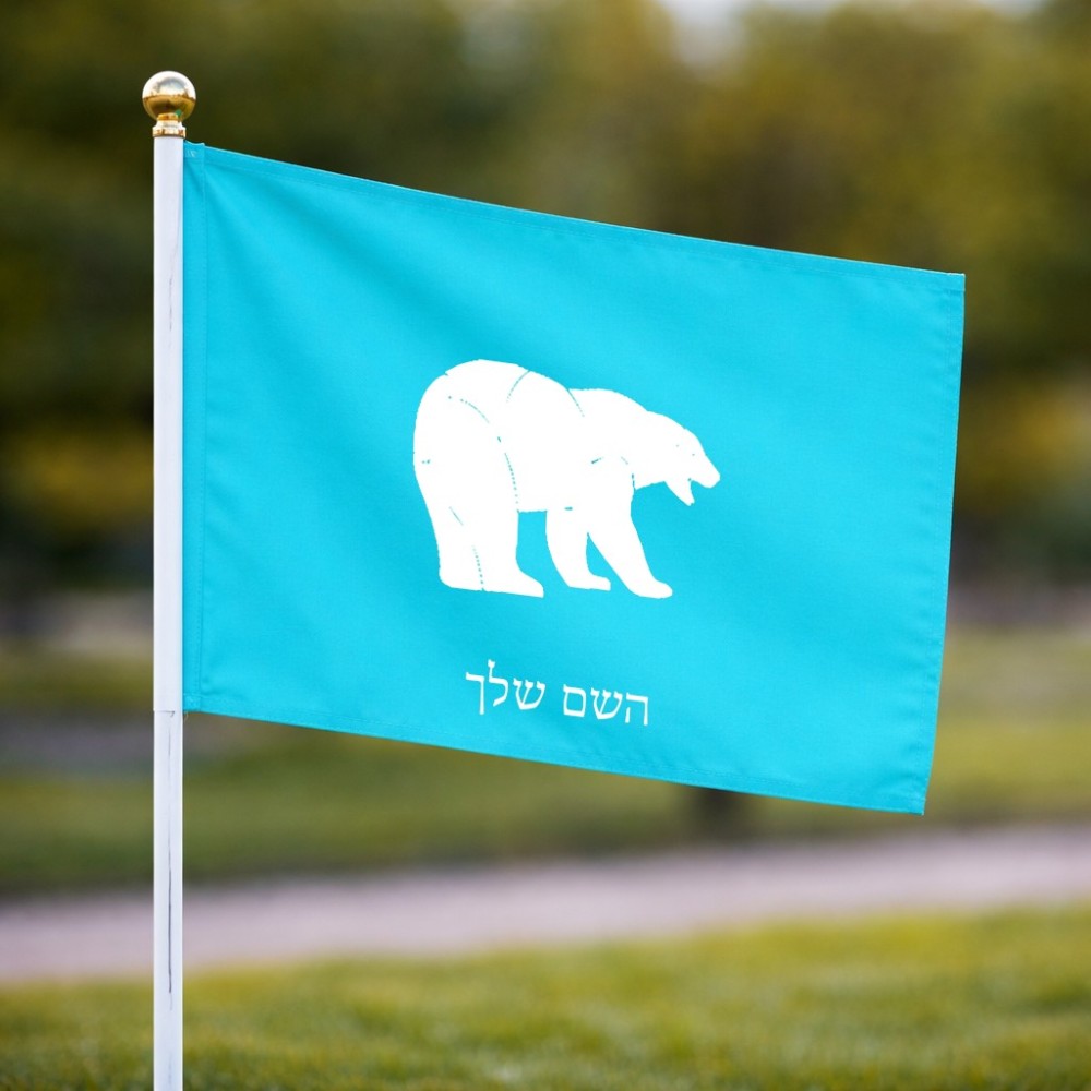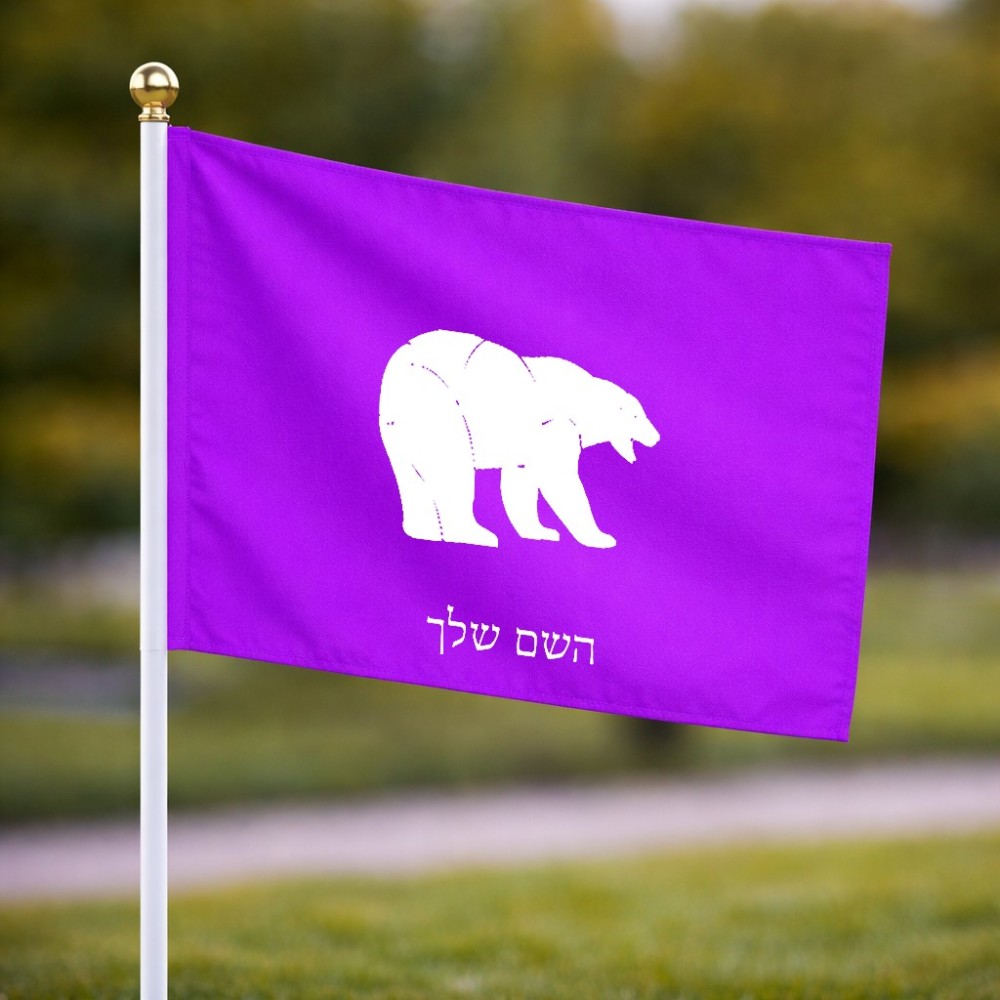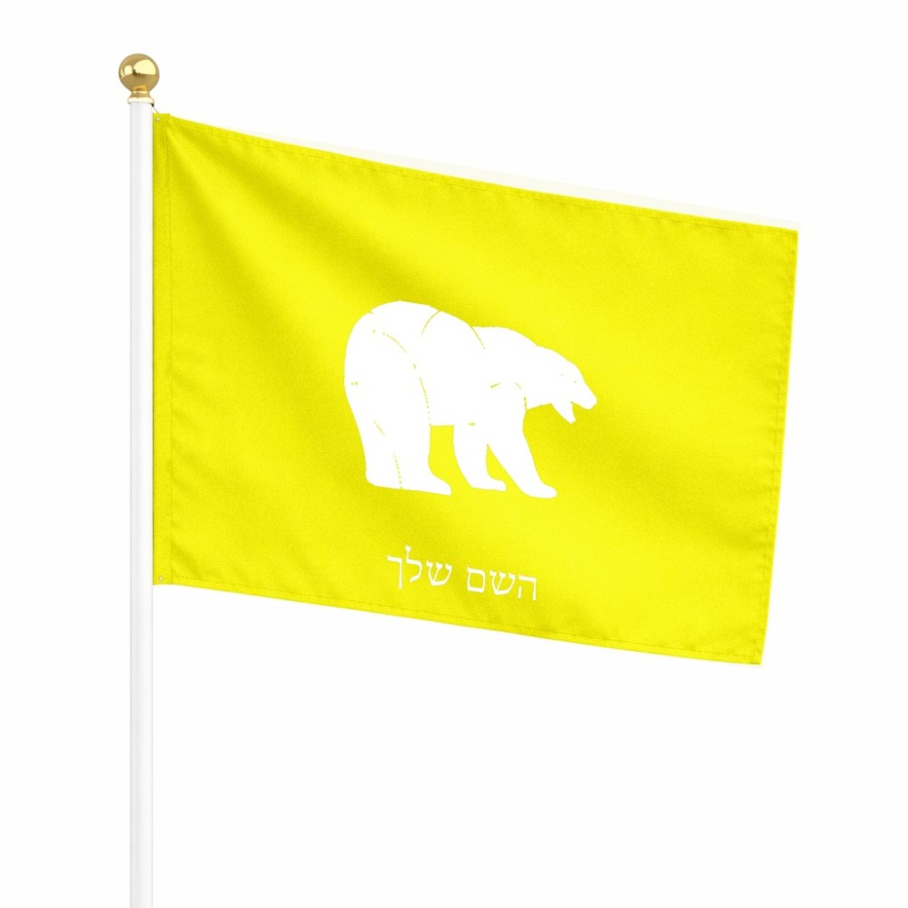 דיגלון בעיצוב אישי עם השם שלך בעיצוב דוב גודל הדיגלון 20.5 × 14 ס"מ, ההדפסה מתבצעת בשני צידי הדגל, את השם המבוקש ניתן לציין בהזמנה, אם לא צויין אנחנו ניצור קשר לבירור.