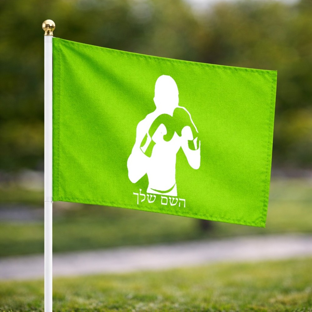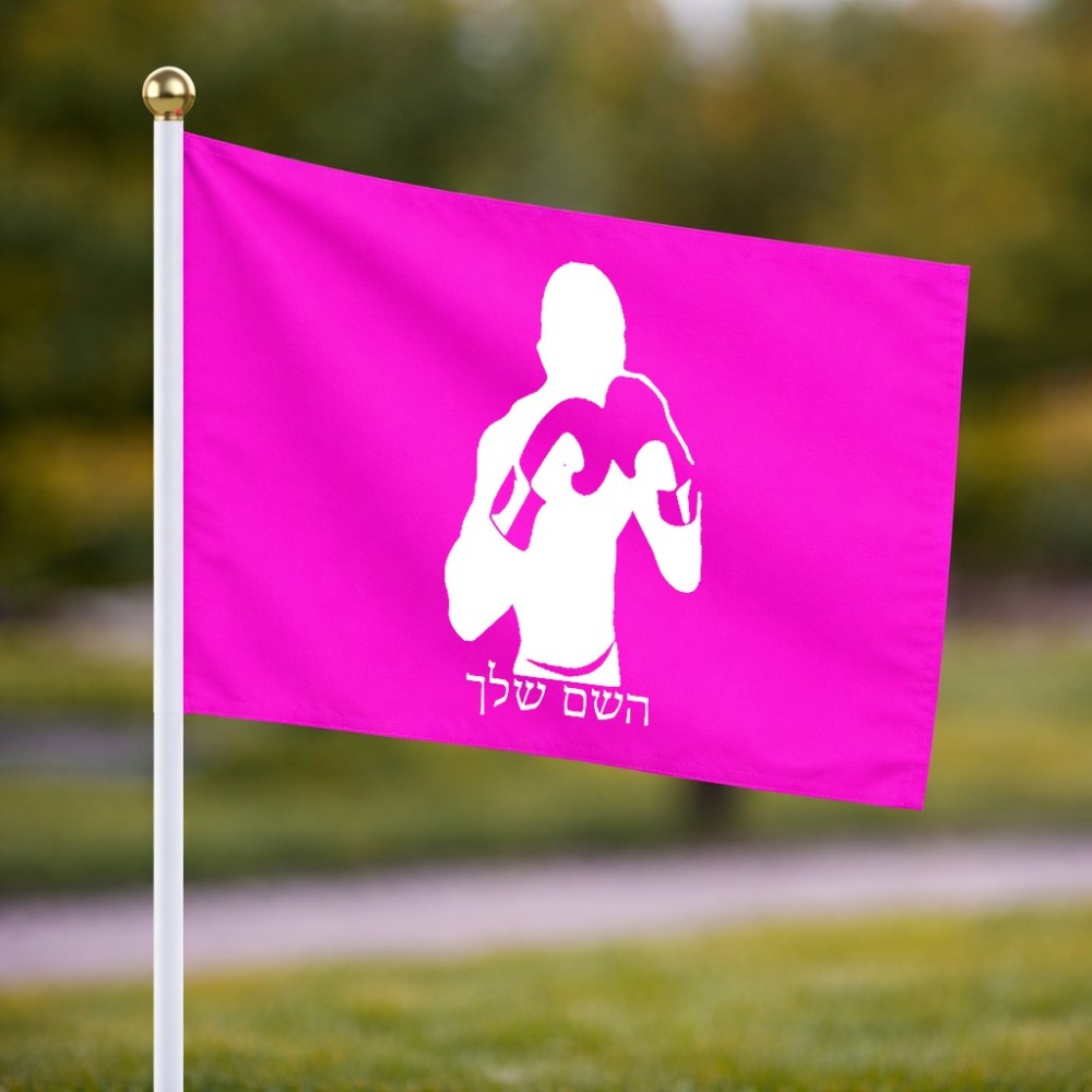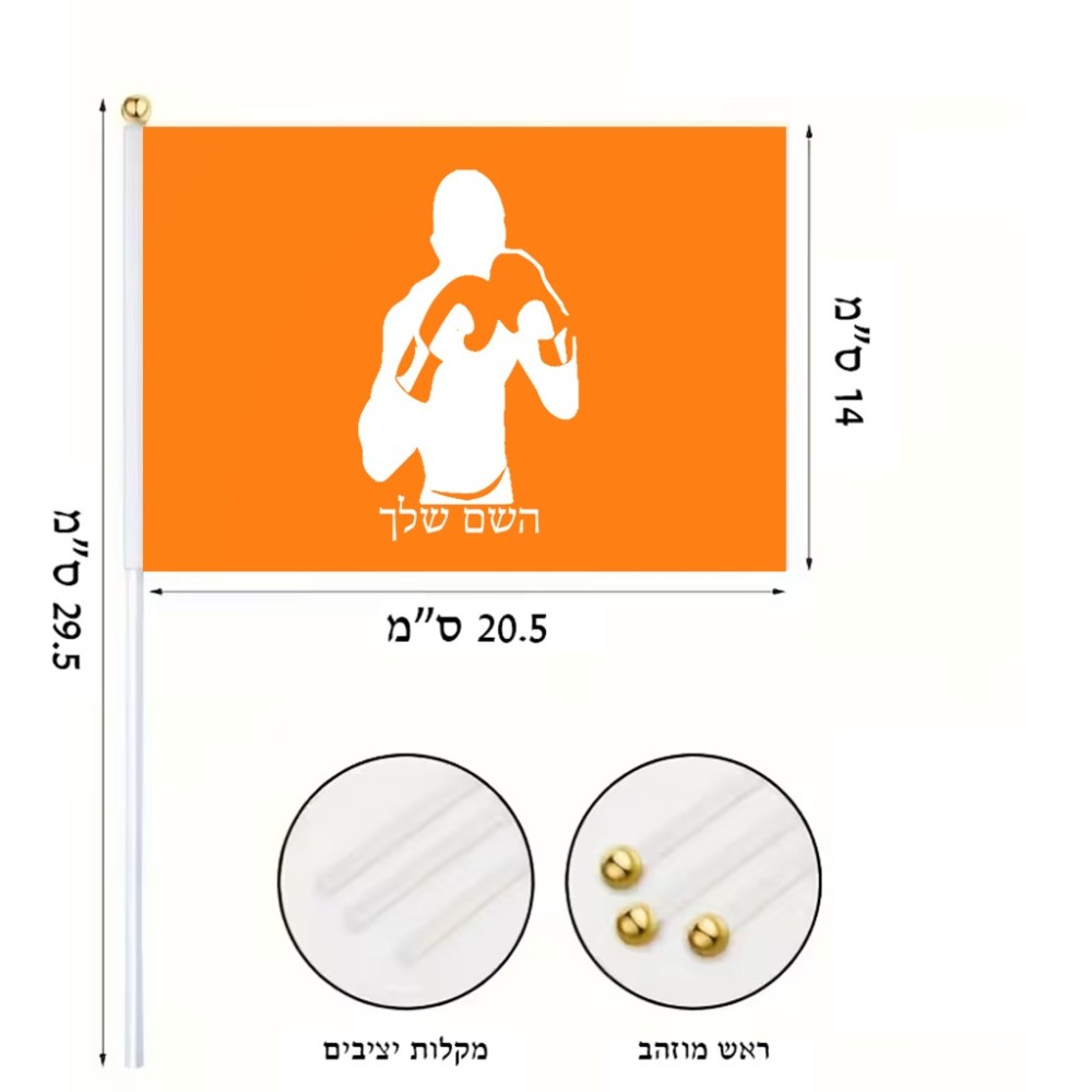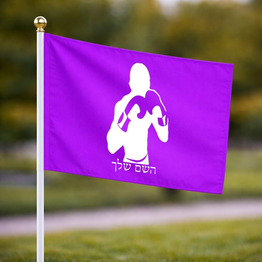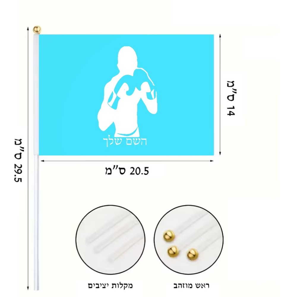 דיגלון בעיצוב אישי עם השם שלך בעיצוב אגרוף גודל הדיגלון 20.5 × 14 ס"מ, ההדפסה מתבצעת בשני צידי הדגל, את השם המבוקש ניתן לציין בהזמנה, אם לא צויין אנחנו ניצור קשר לבירור.