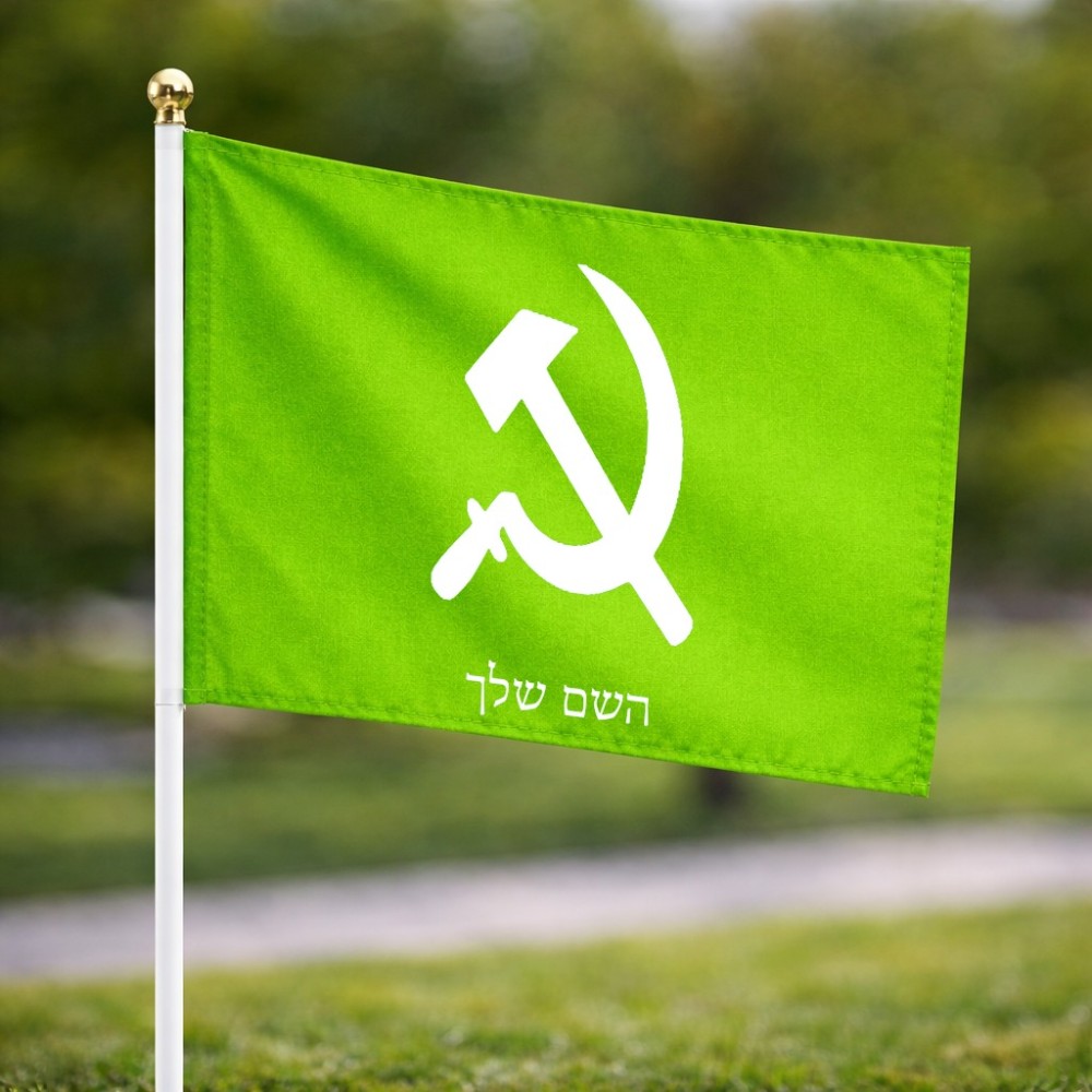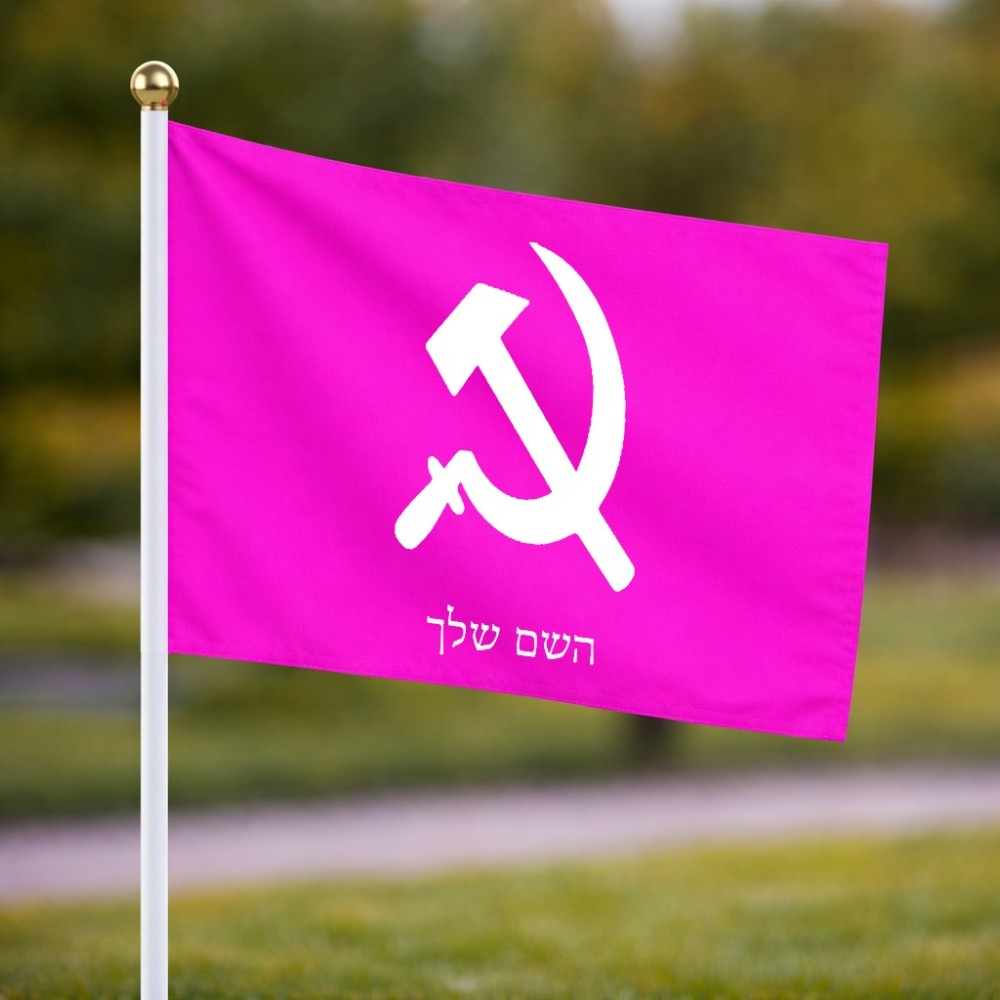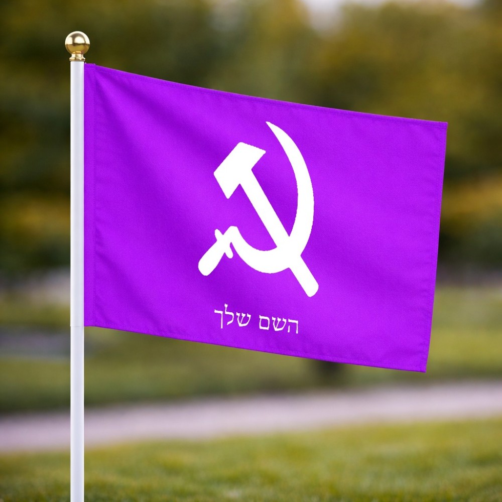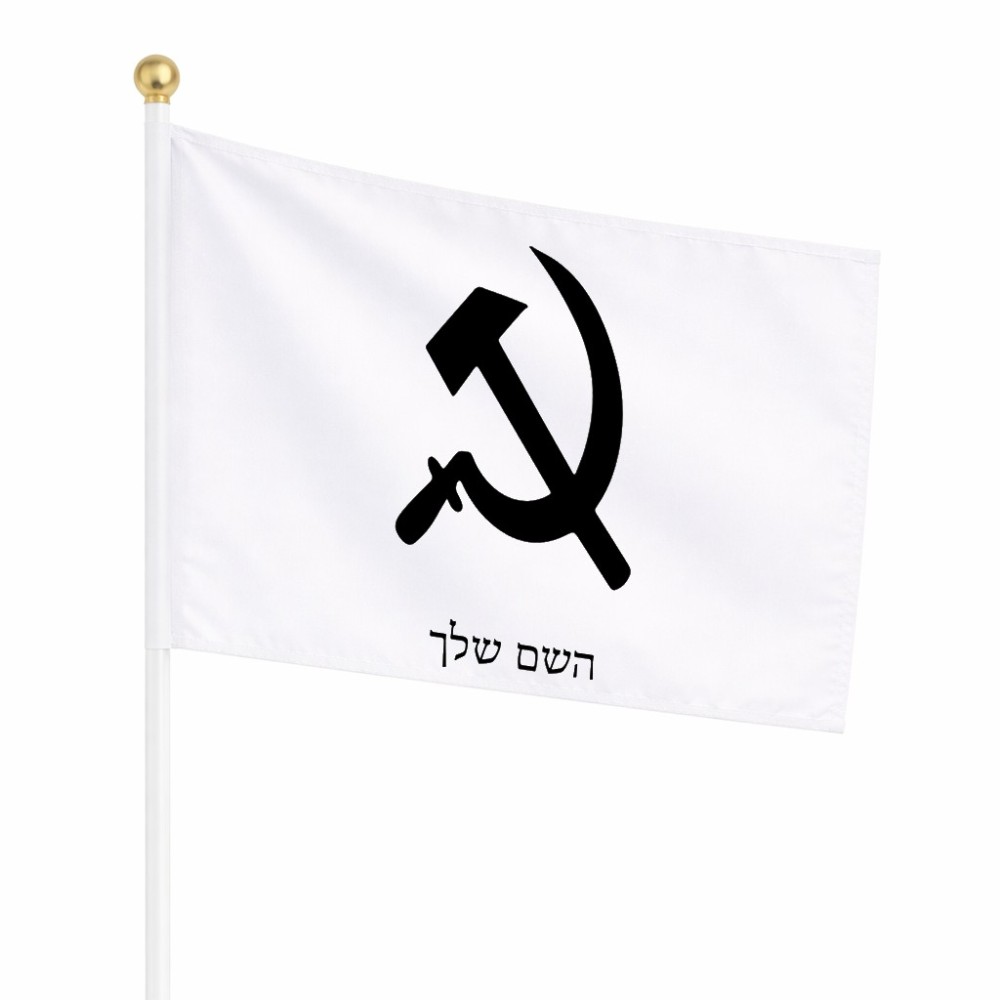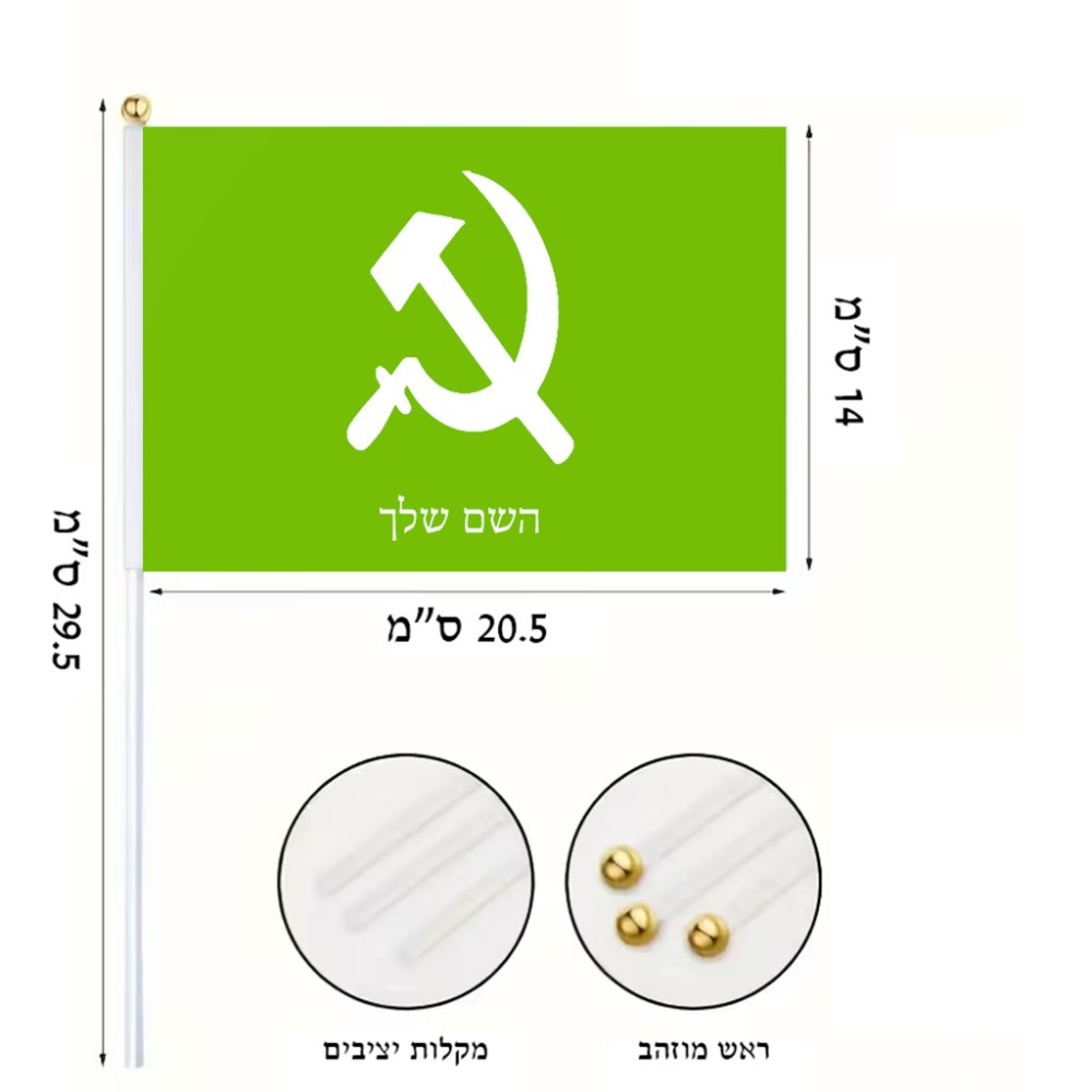 דיגלון בעיצוב אישי עם השם שלך בעיצוב פטיש ומגל גודל הדיגלון 20.5 × 14 ס"מ, ההדפסה מתבצעת בשני צידי הדגל, את השם המבוקש ניתן לציין בהזמנה, אם לא צויין אנחנו ניצור קשר לבירור.