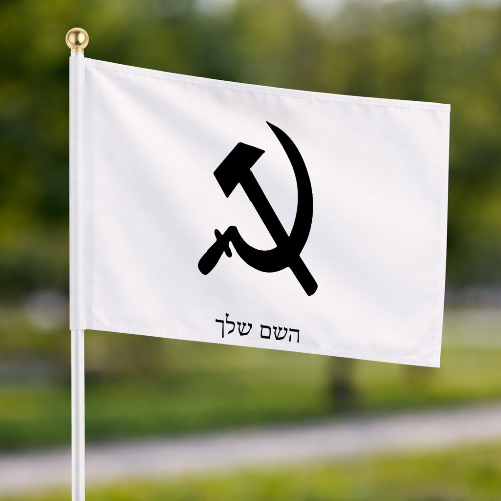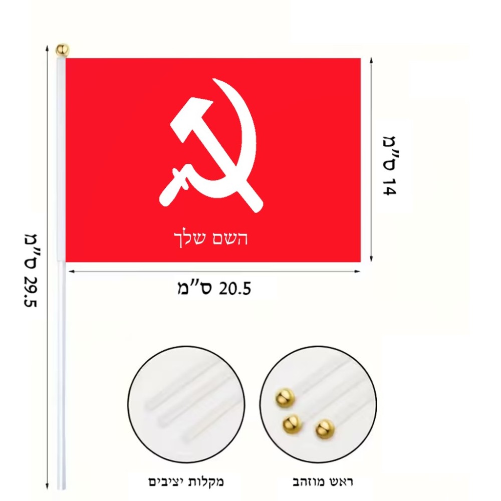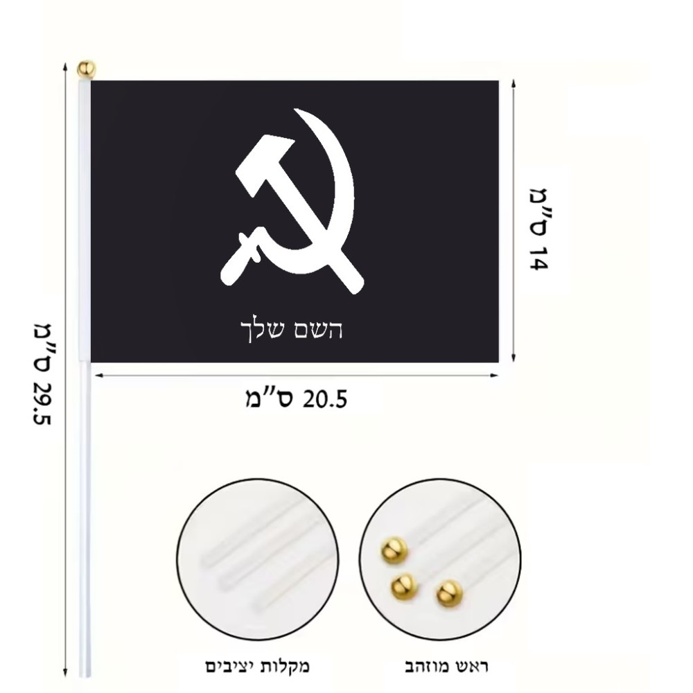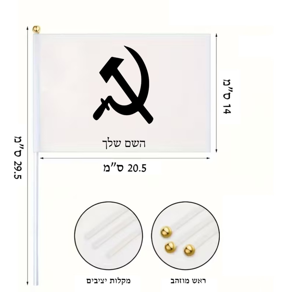 דיגלון בעיצוב אישי עם השם שלך בעיצוב פטיש ומגל גודל הדיגלון - 20.5 × 14 ס"מ