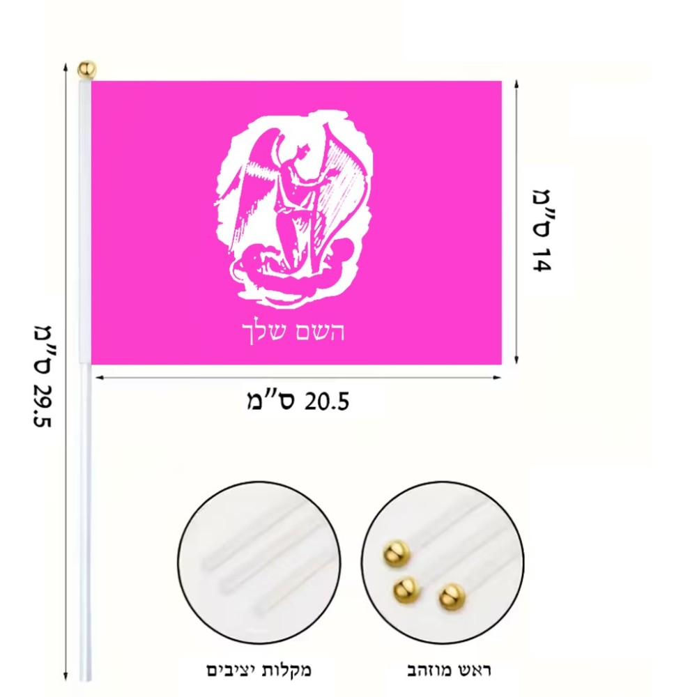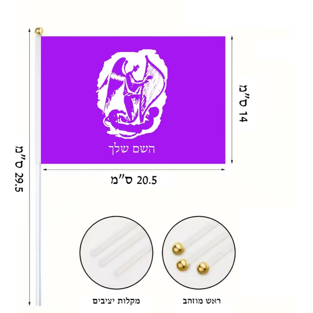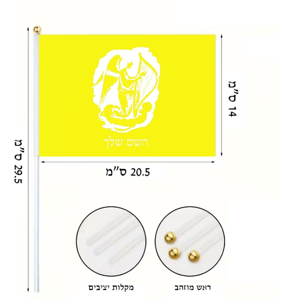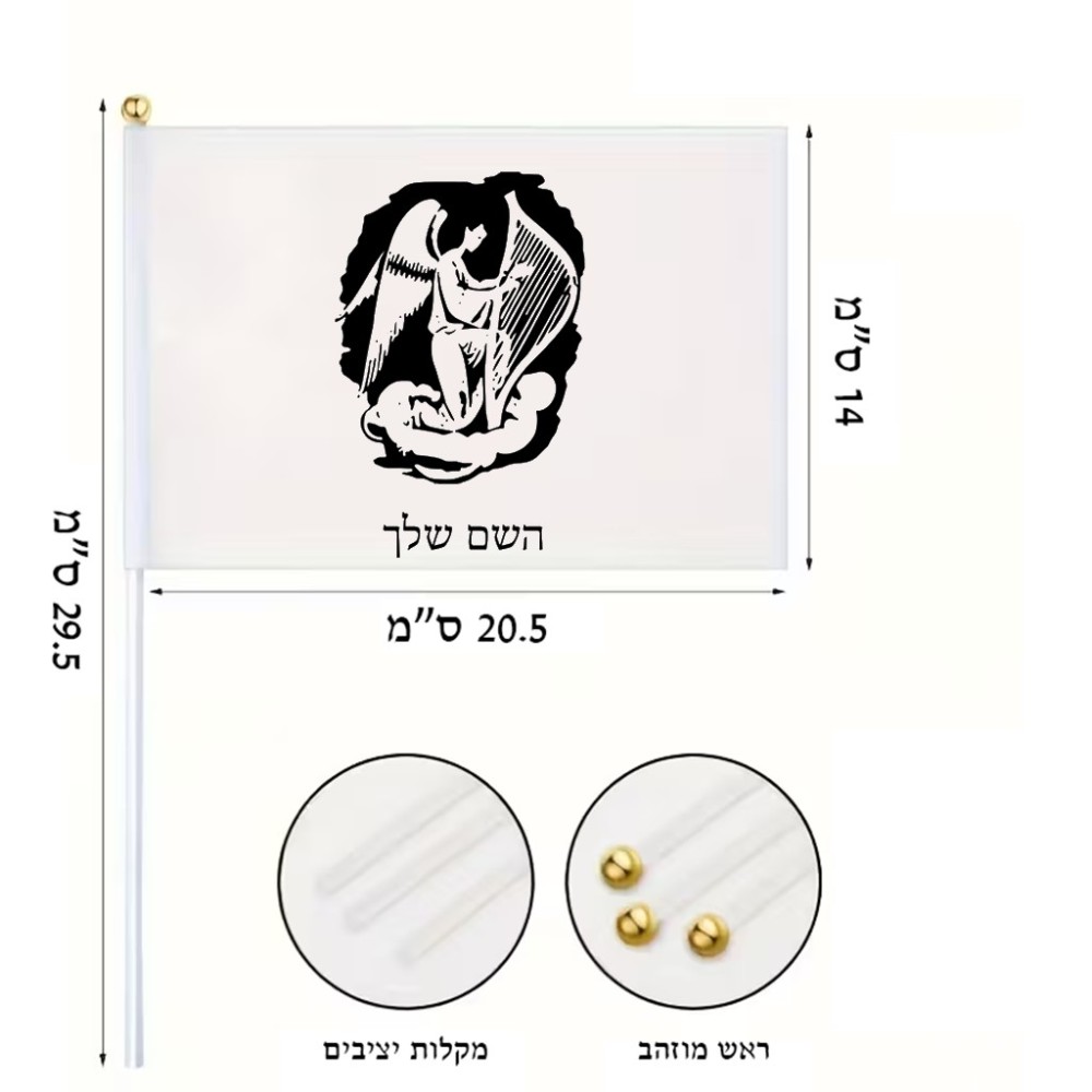 דיגלון בעיצוב אישי עם השם שלך בעיצוב אנג'ל מוזיקלי גודל הדיגלון 20.5 × 14 ס"מ, ההדפסה מתבצעת בשני צידי הדגל, את השם המבוקש ניתן לציין בהזמנה, אם לא צויין אנחנו ניצור קשר לבירור.