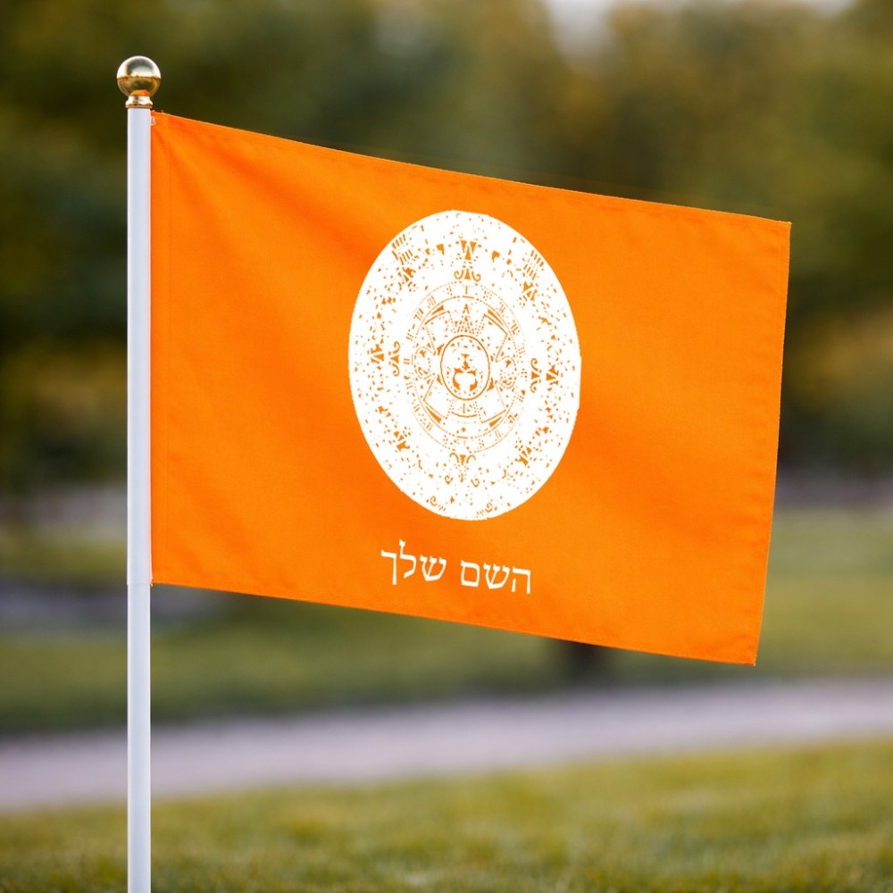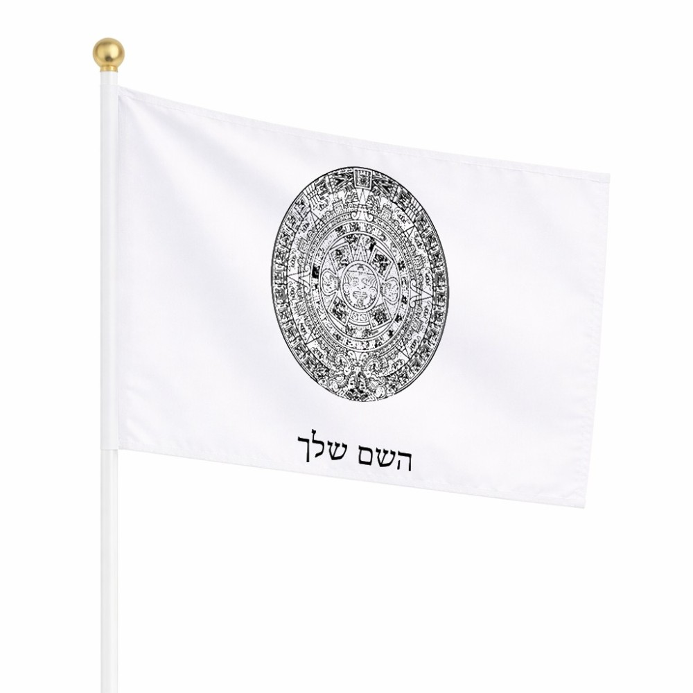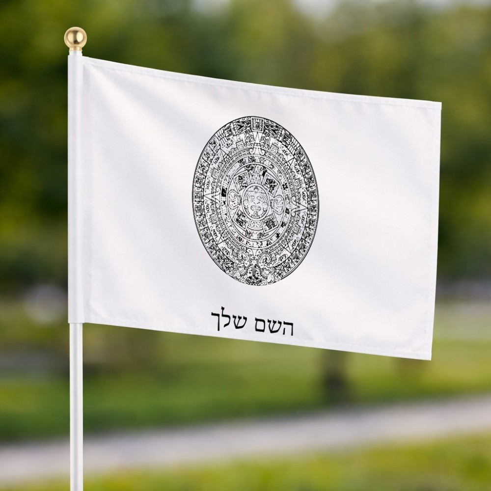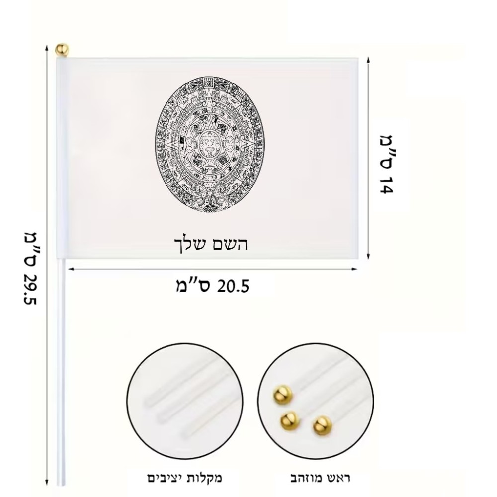 דיגלון בעיצוב אישי עם השם שלך בעיצוב לוח שנה אצטקי של המאיה גודל הדיגלון 20.5 × 14 ס"מ, ההדפסה מתבצעת בשני צידי הדגל, את השם המבוקש ניתן לציין בהזמנה, אם לא צויין אנחנו ניצור קשר לבירור.