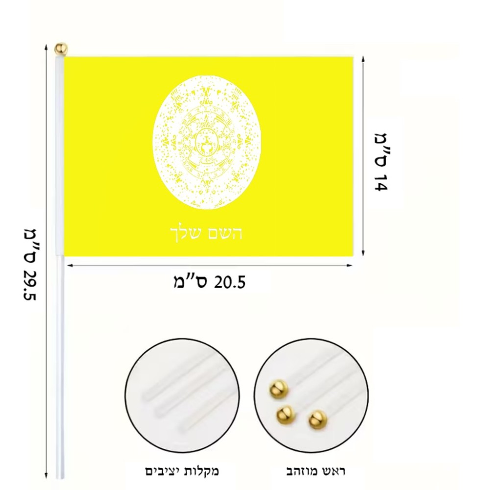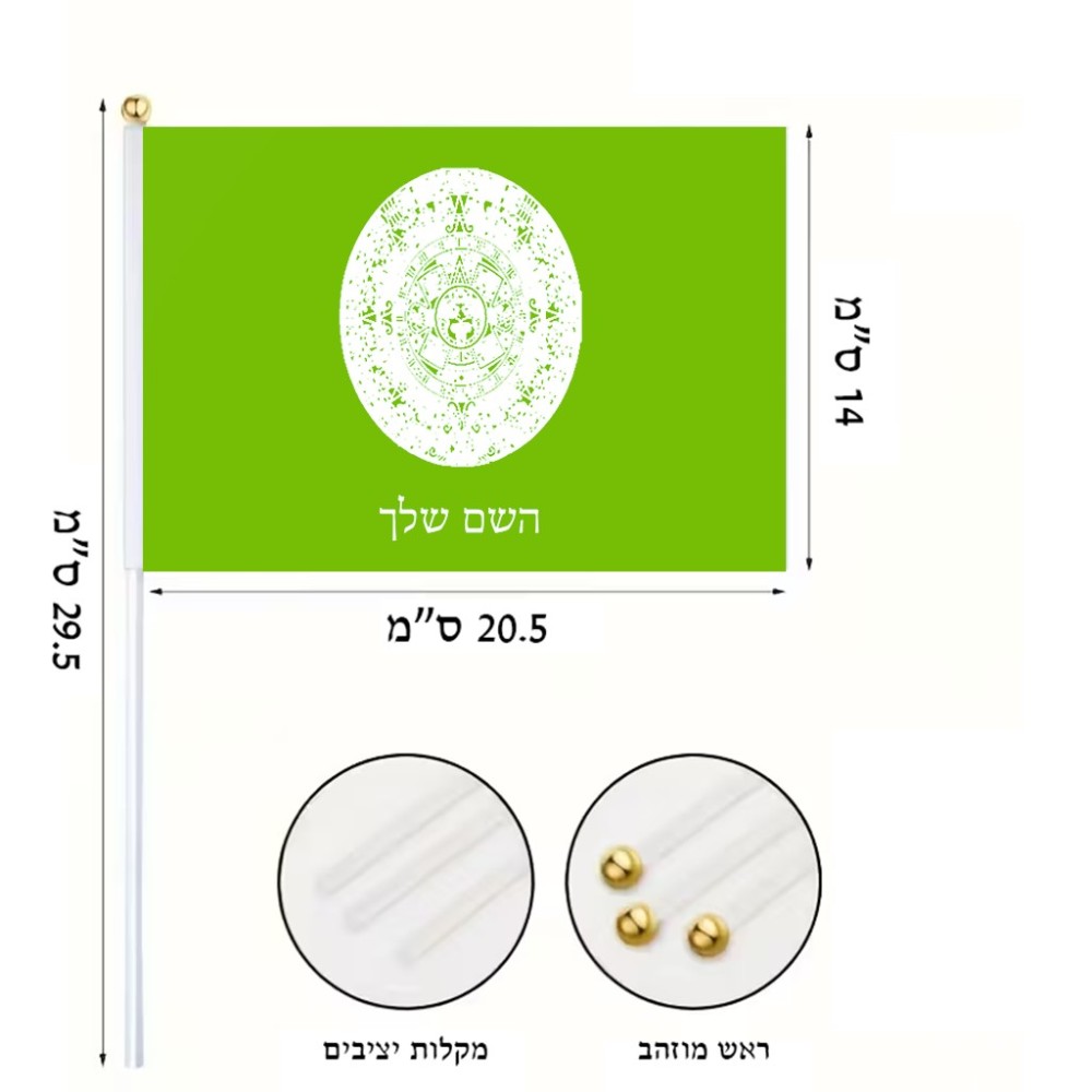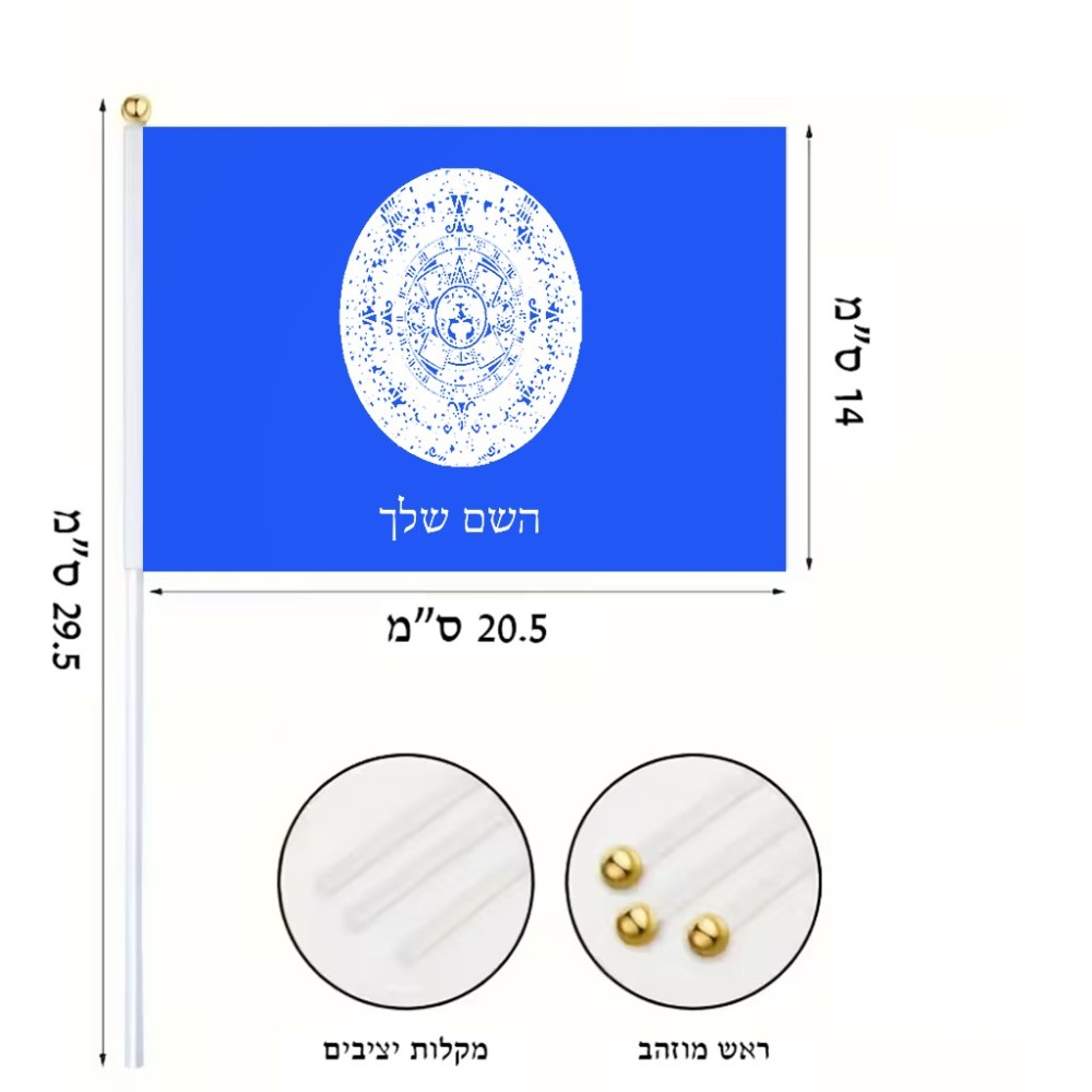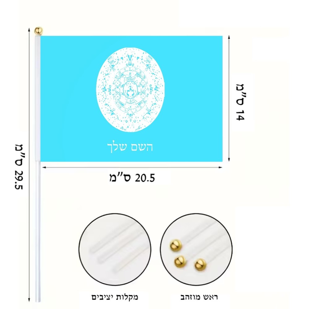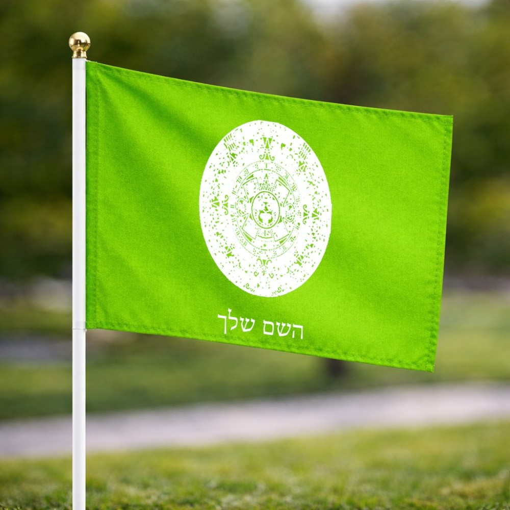 דיגלון בעיצוב אישי עם השם שלך בעיצוב לוח שנה אצטקי של המאיה גודל הדיגלון 20.5 × 14 ס"מ, ההדפסה מתבצעת בשני צידי הדגל, את השם המבוקש ניתן לציין בהזמנה, אם לא צויין אנחנו ניצור קשר לבירור.
