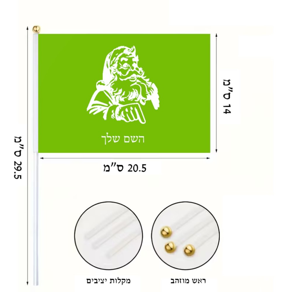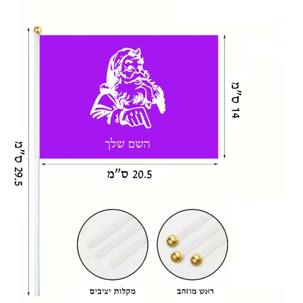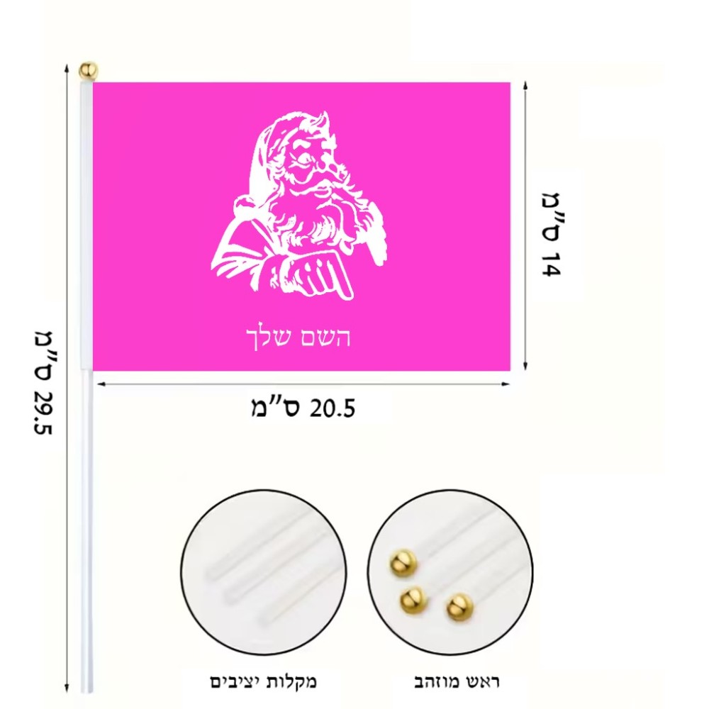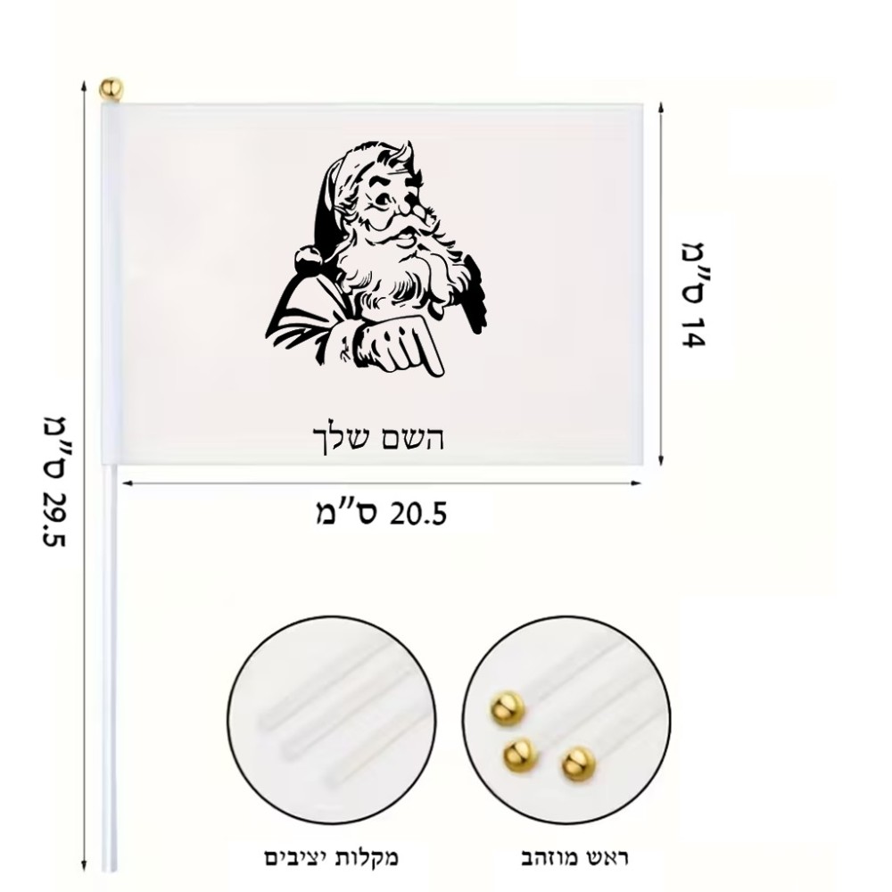 דיגלון בעיצוב אישי עם השם שלך בעיצוב סנטה קלאוס גודל הדיגלון 20.5 × 14 ס"מ, ההדפסה מתבצעת בשני צידי הדגל, את השם המבוקש ניתן לציין בהזמנה, אם לא צויין אנחנו ניצור קשר לבירור.