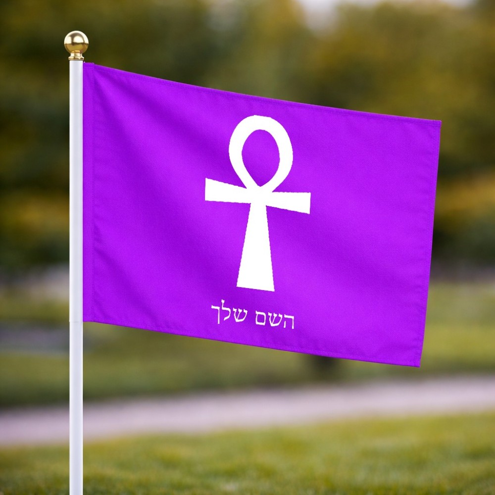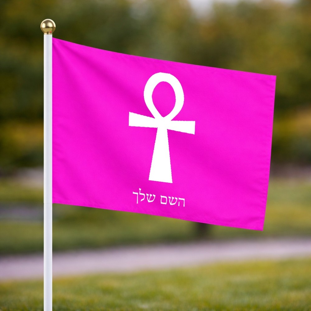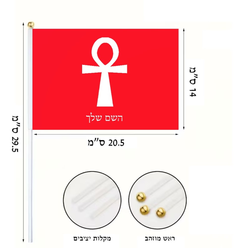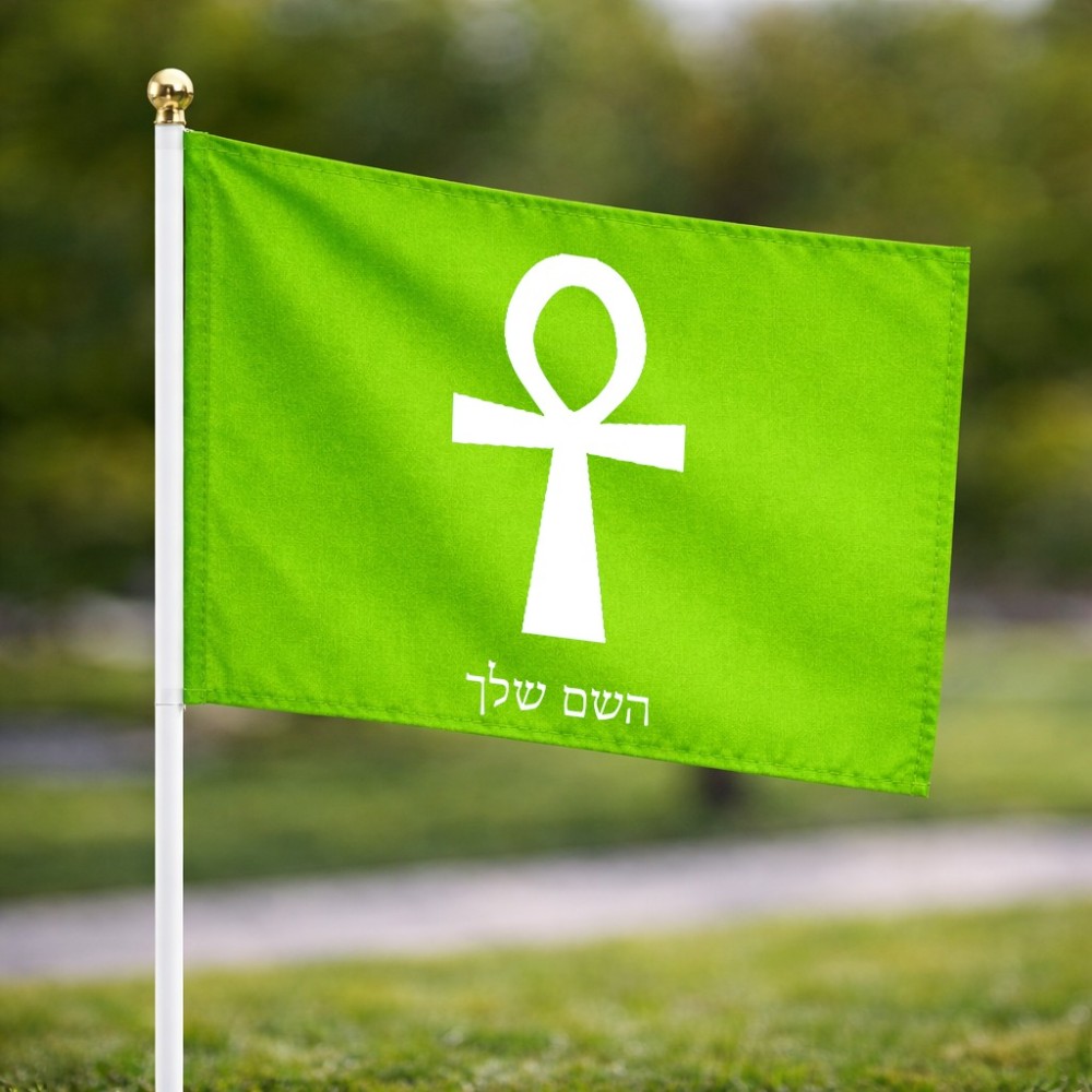 דיגלון בעיצוב אישי עם השם שלך בעיצוב אנק - מפתח החיים המצרי גודל הדיגלון 20.5 × 14 ס"מ, ההדפסה מתבצעת בשני צידי הדגל, את השם המבוקש ניתן לציין בהזמנה, אם לא צויין אנחנו ניצור קשר לבירור.