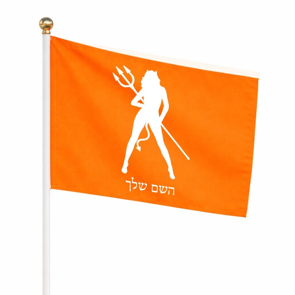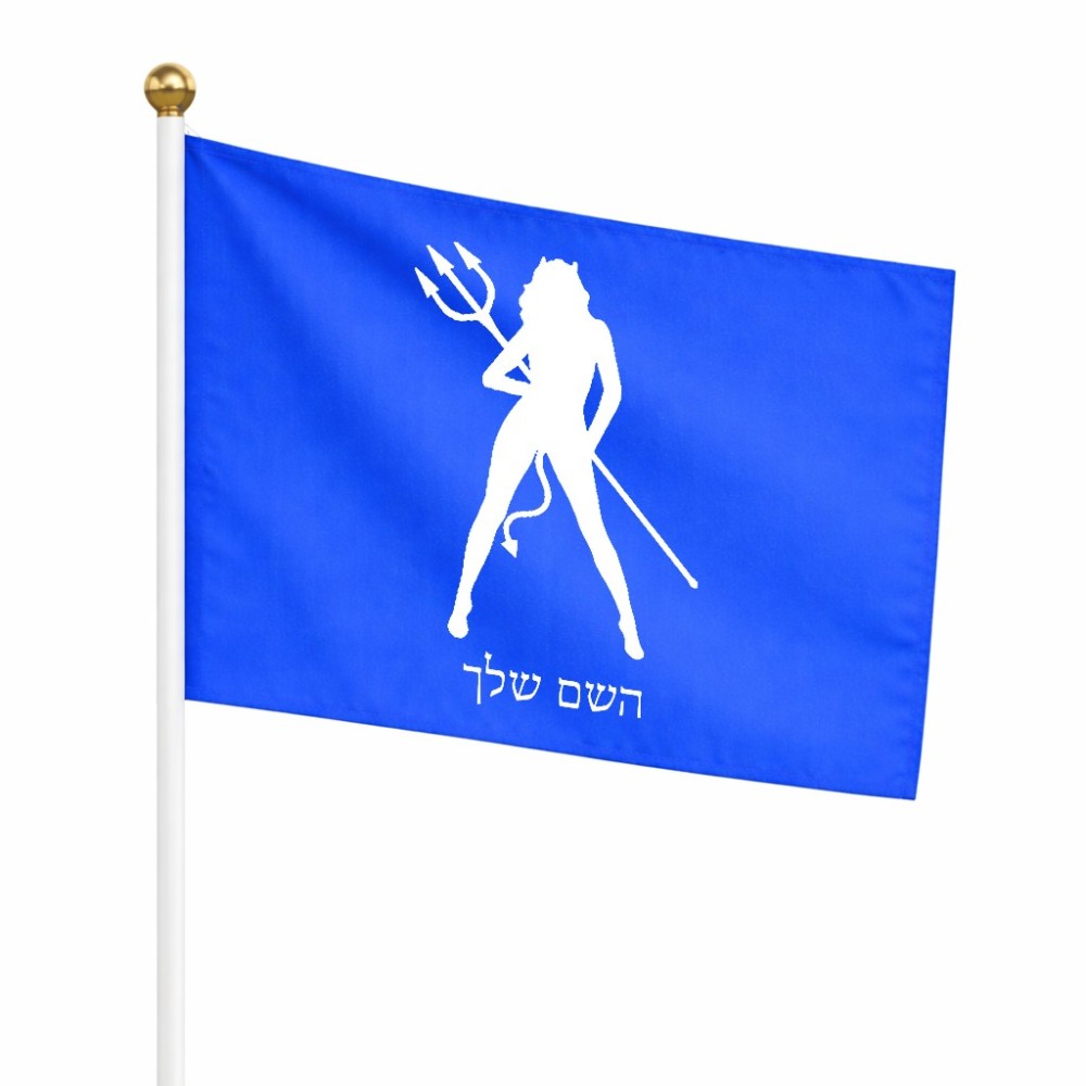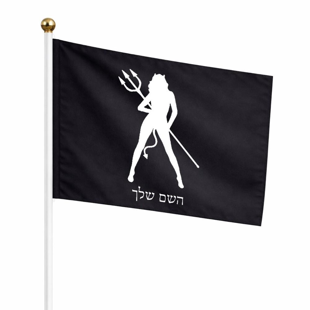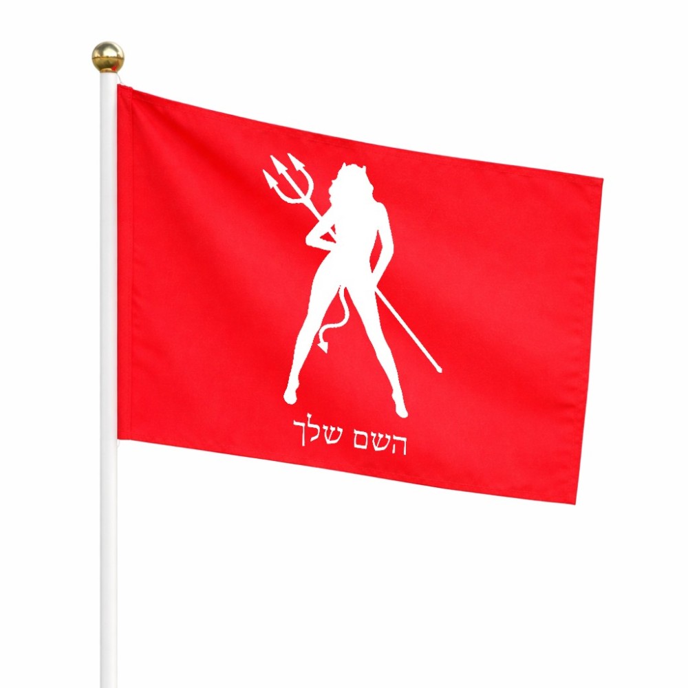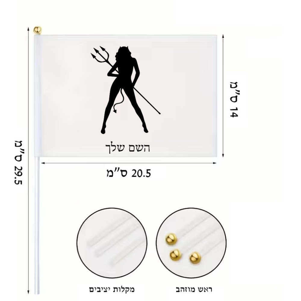 דיגלון בעיצוב אישי עם השם שלך בעיצוב אישה שטן גודל הדיגלון 20.5 × 14 ס"מ, ההדפסה מתבצעת בשני צידי הדגל, את השם המבוקש ניתן לציין בהזמנה, אם לא צויין אנחנו ניצור קשר לבירור.