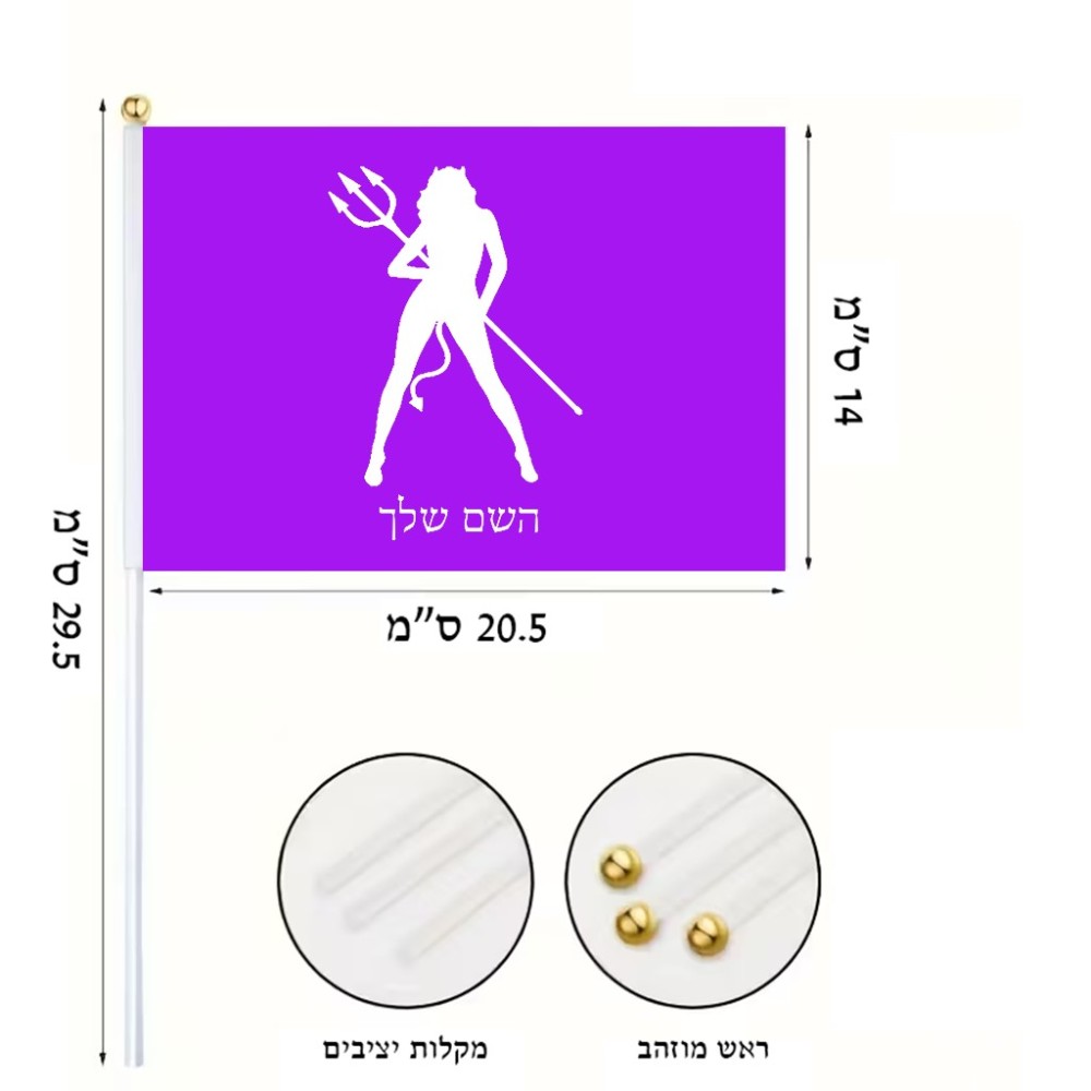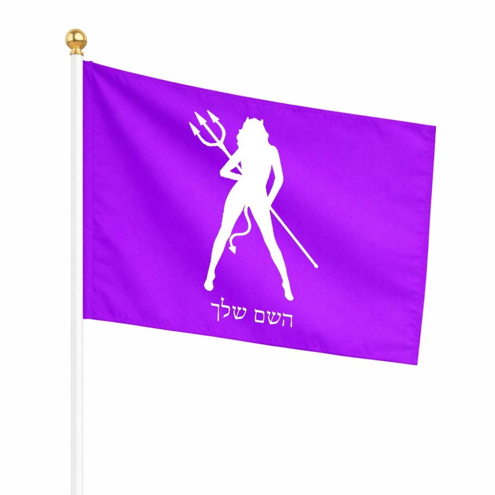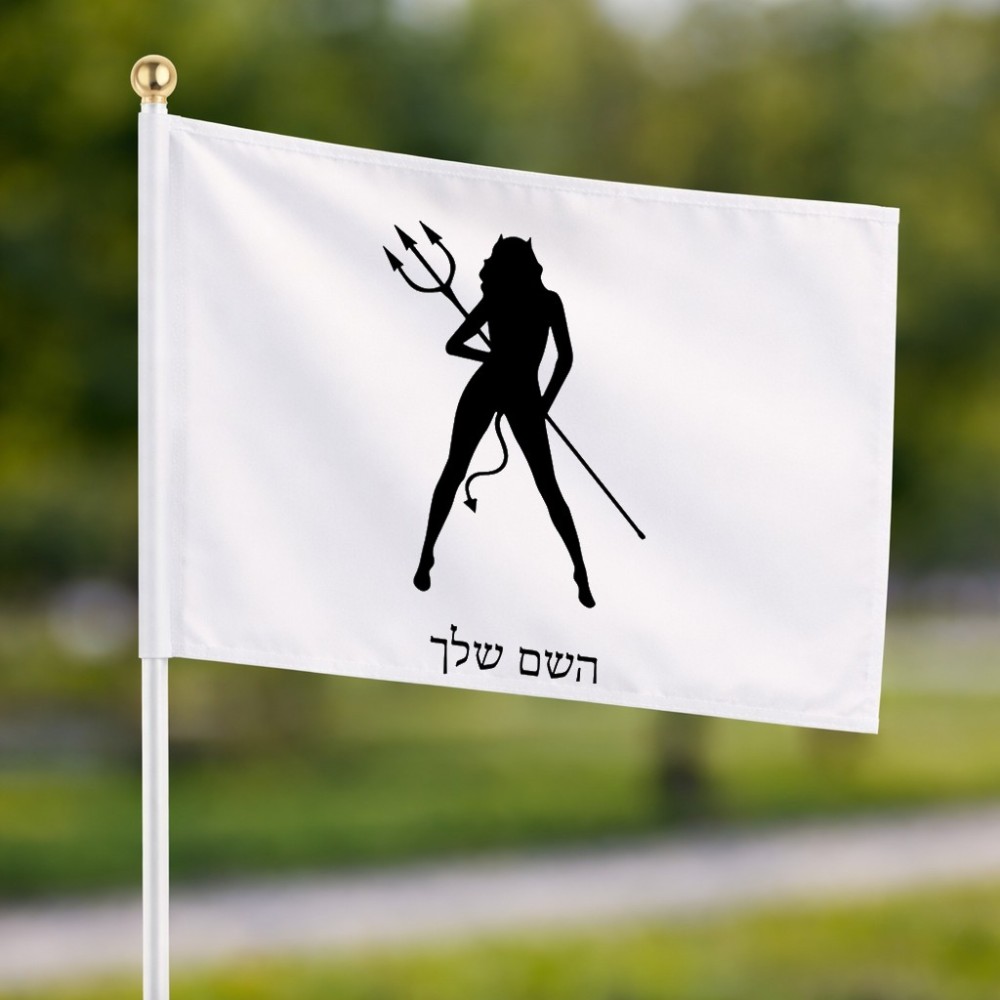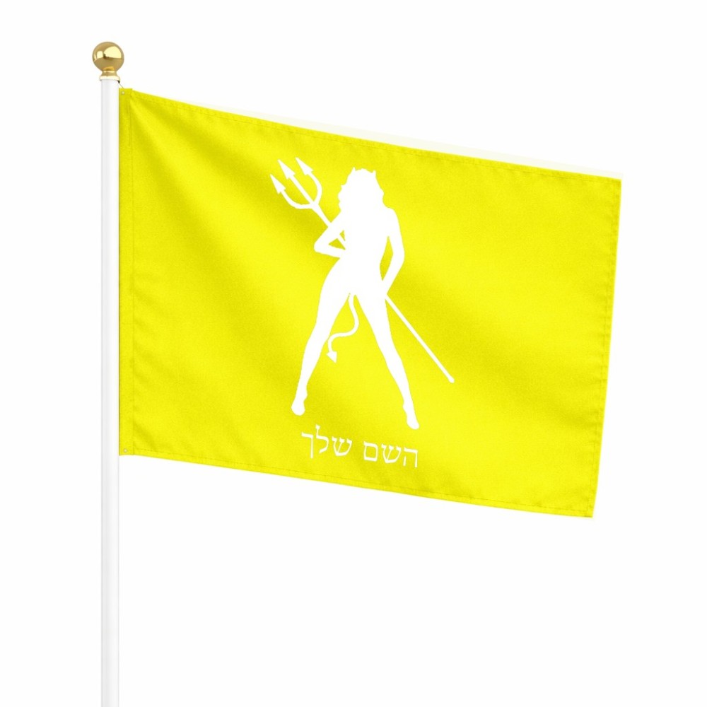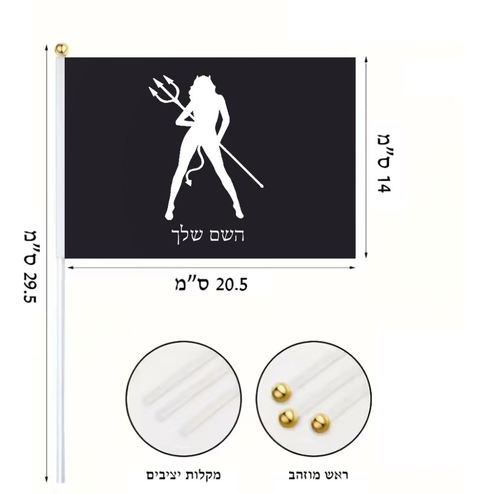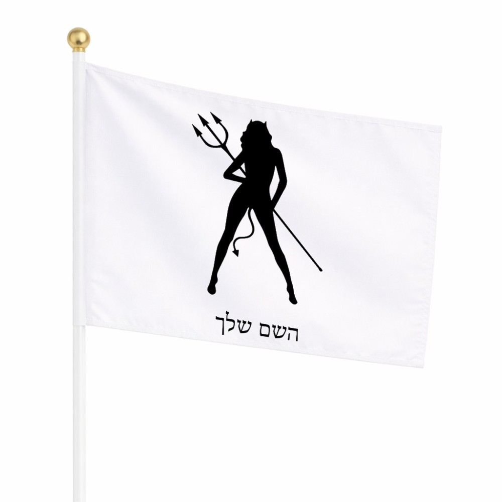 דיגלון בעיצוב אישי עם השם שלך בעיצוב אישה שטן גודל הדיגלון 20.5 × 14 ס"מ, ההדפסה מתבצעת בשני צידי הדגל, את השם המבוקש ניתן לציין בהזמנה, אם לא צויין אנחנו ניצור קשר לבירור.