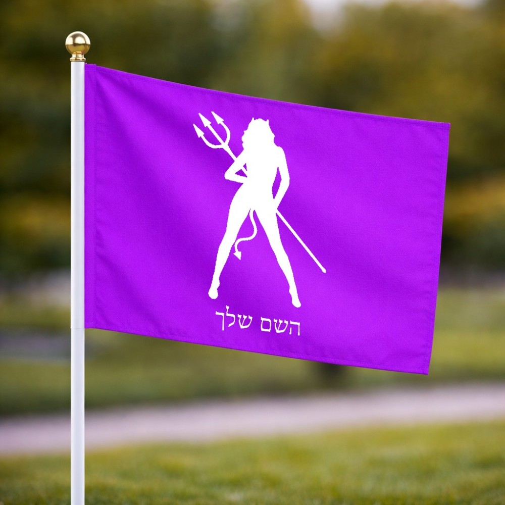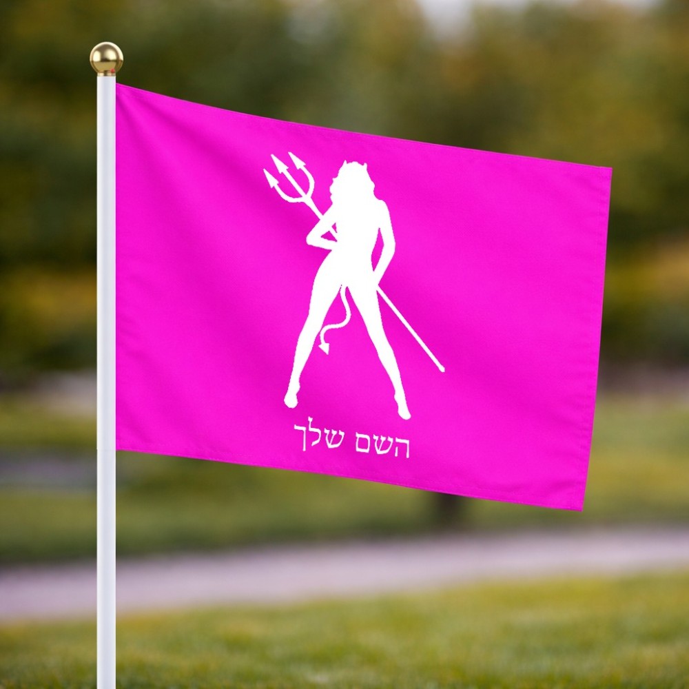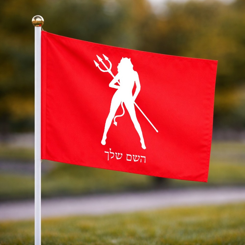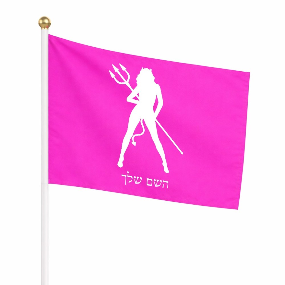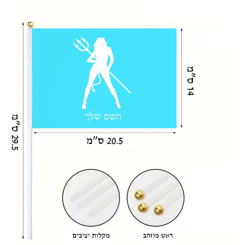 דיגלון בעיצוב אישי עם השם שלך בעיצוב אישה שטן גודל הדיגלון 20.5 × 14 ס"מ, ההדפסה מתבצעת בשני צידי הדגל, את השם המבוקש ניתן לציין בהזמנה, אם לא צויין אנחנו ניצור קשר לבירור.