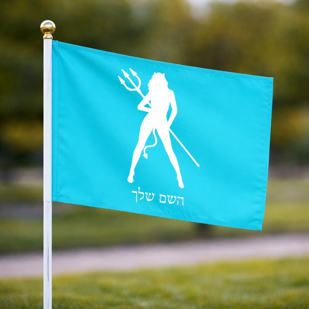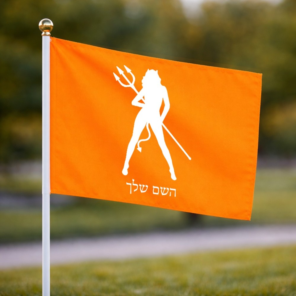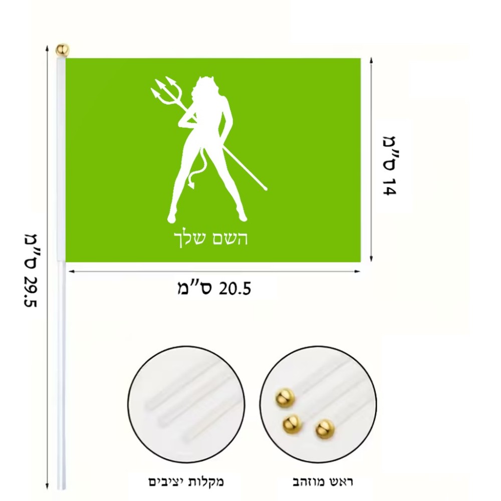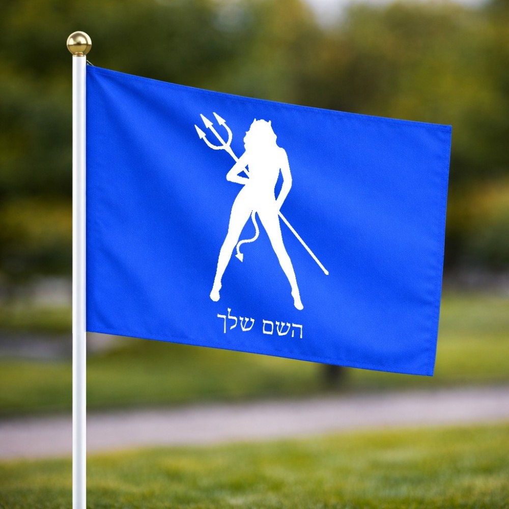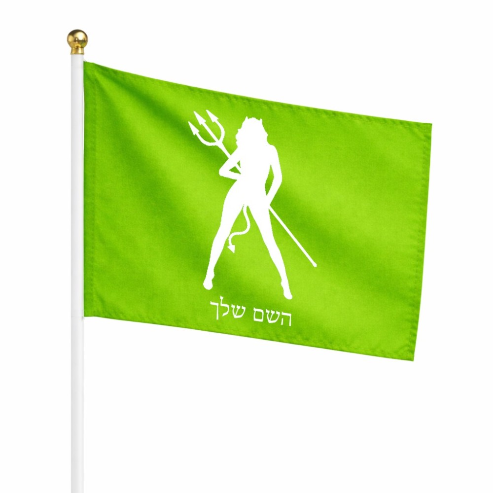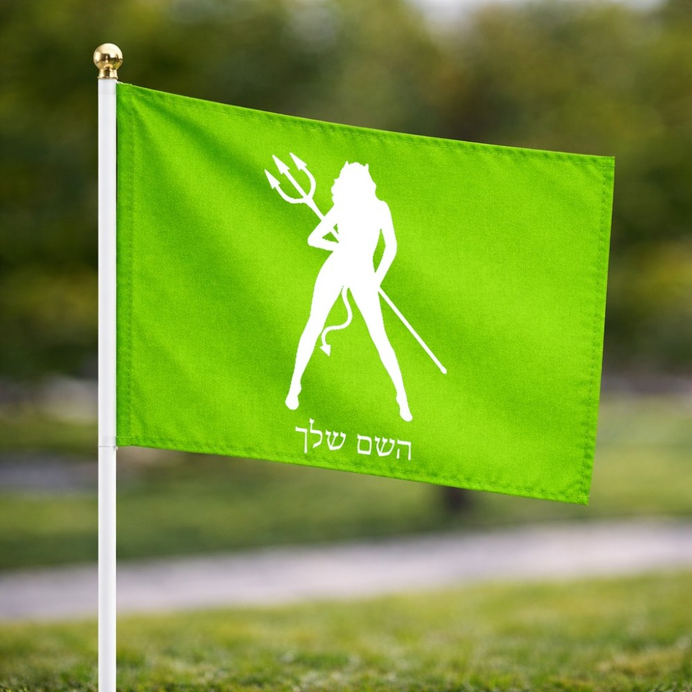 דיגלון בעיצוב אישי עם השם שלך בעיצוב אישה שטן גודל הדיגלון 20.5 × 14 ס"מ, ההדפסה מתבצעת בשני צידי הדגל, את השם המבוקש ניתן לציין בהזמנה, אם לא צויין אנחנו ניצור קשר לבירור.