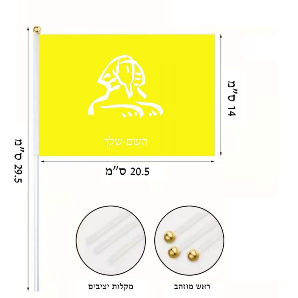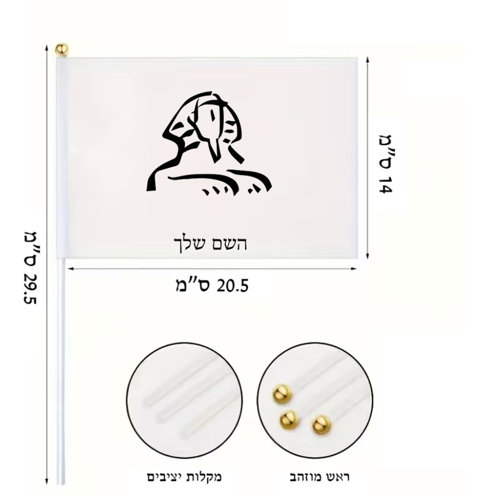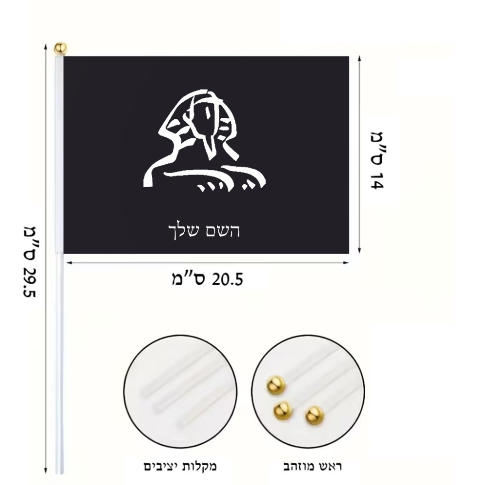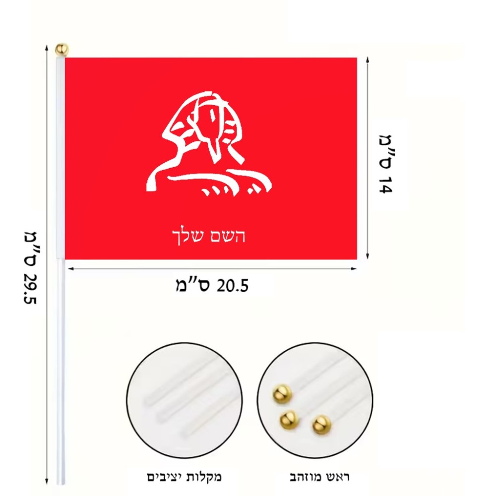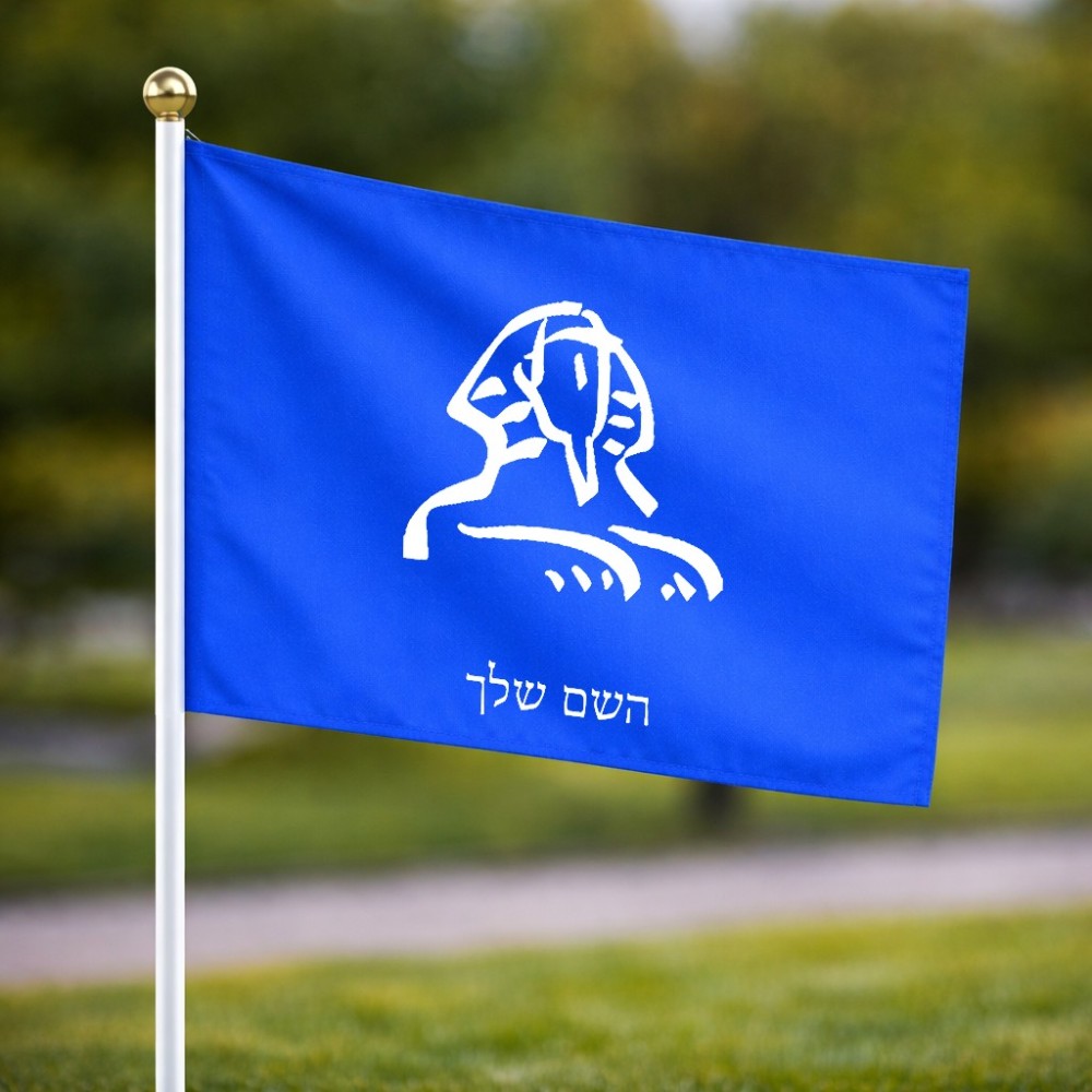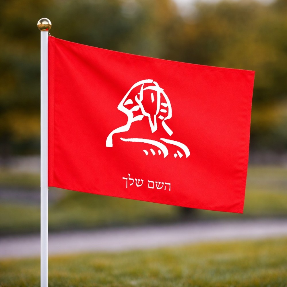 דיגלון בעיצוב אישי עם השם שלך בעיצוב ספינקס מצרים גודל הדיגלון 20.5 × 14 ס"מ, ההדפסה מתבצעת בשני צידי הדגל, את השם המבוקש ניתן לציין בהזמנה, אם לא צויין אנחנו ניצור קשר לבירור.