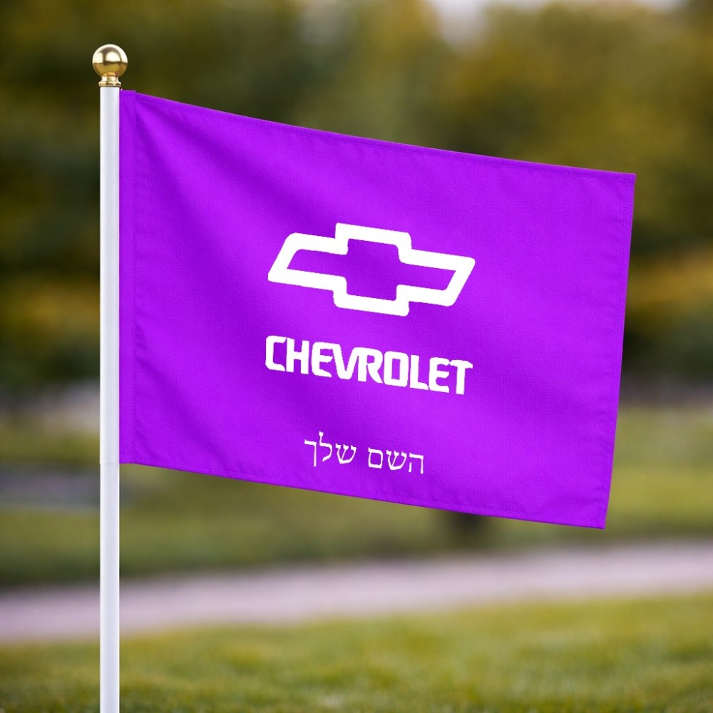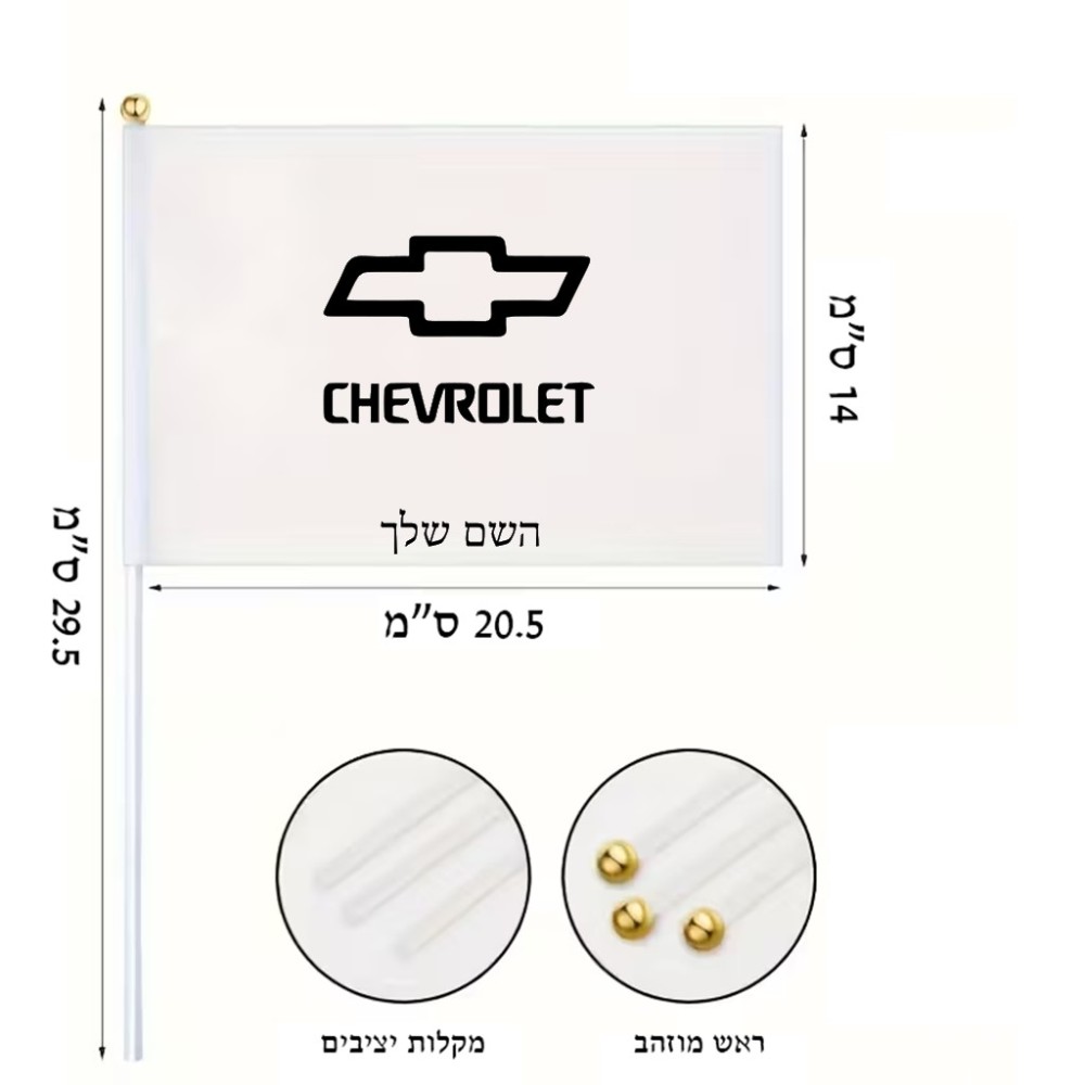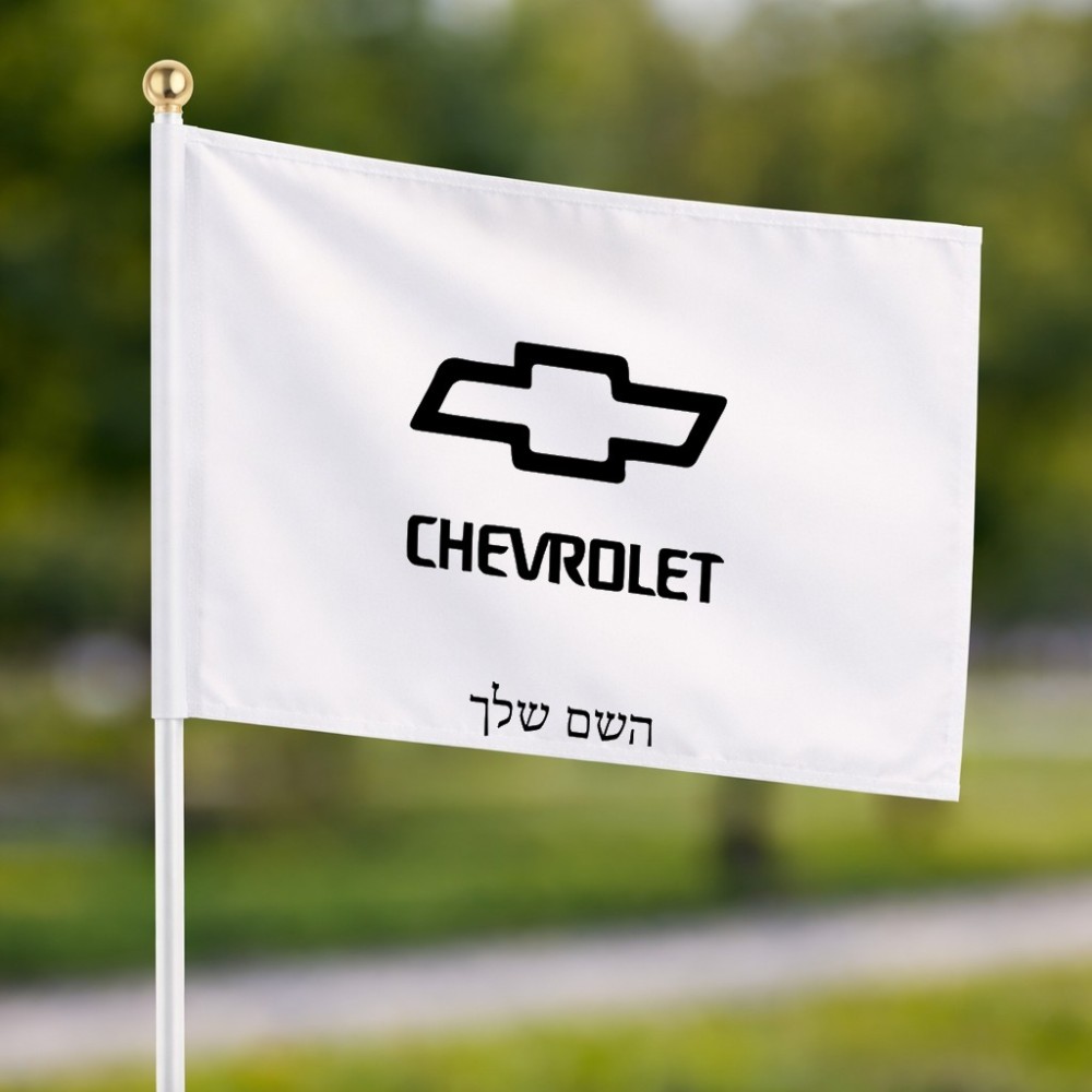 דיגלון בעיצוב אישי עם השם שלך בעיצוב שברולט גודל הדיגלון 20.5 × 14 ס"מ, ההדפסה מתבצעת בשני צידי הדגל, את השם המבוקש ניתן לציין בהזמנה, אם לא צויין אנחנו ניצור קשר לבירור.