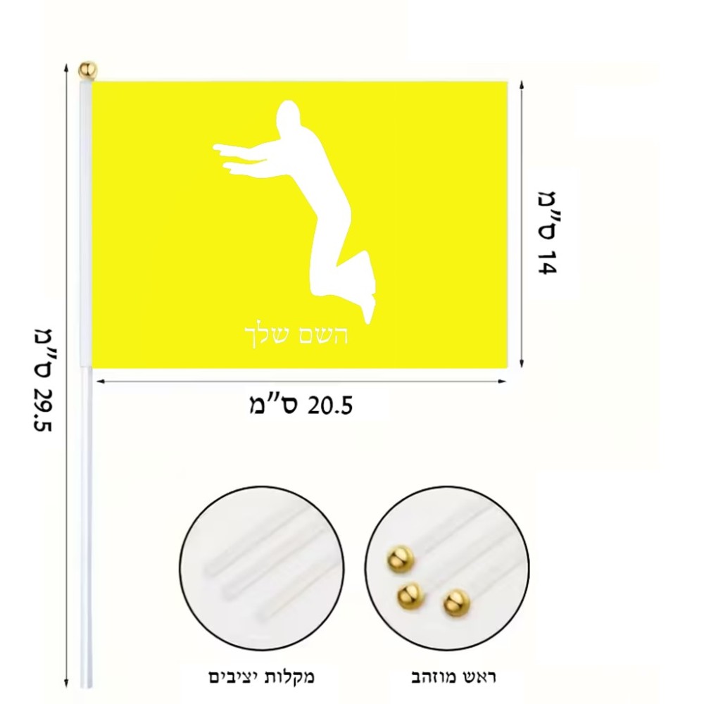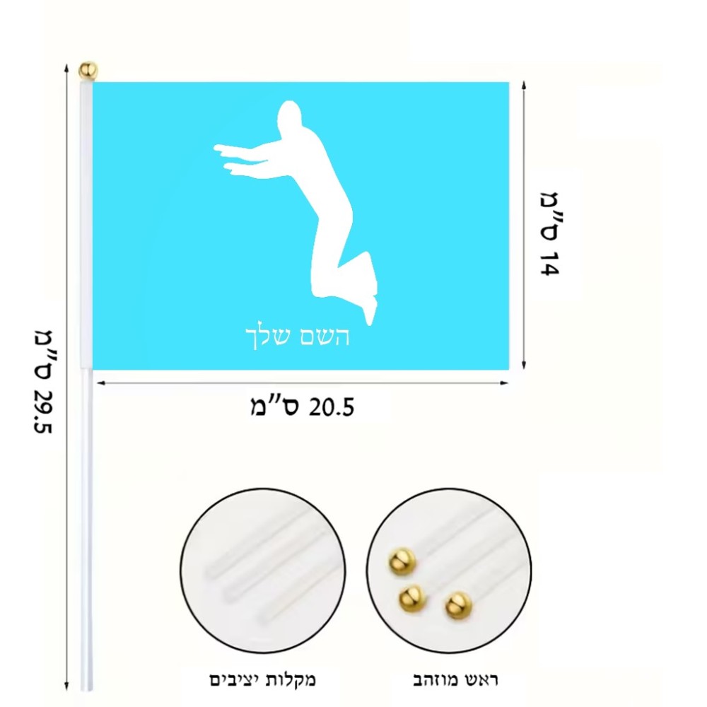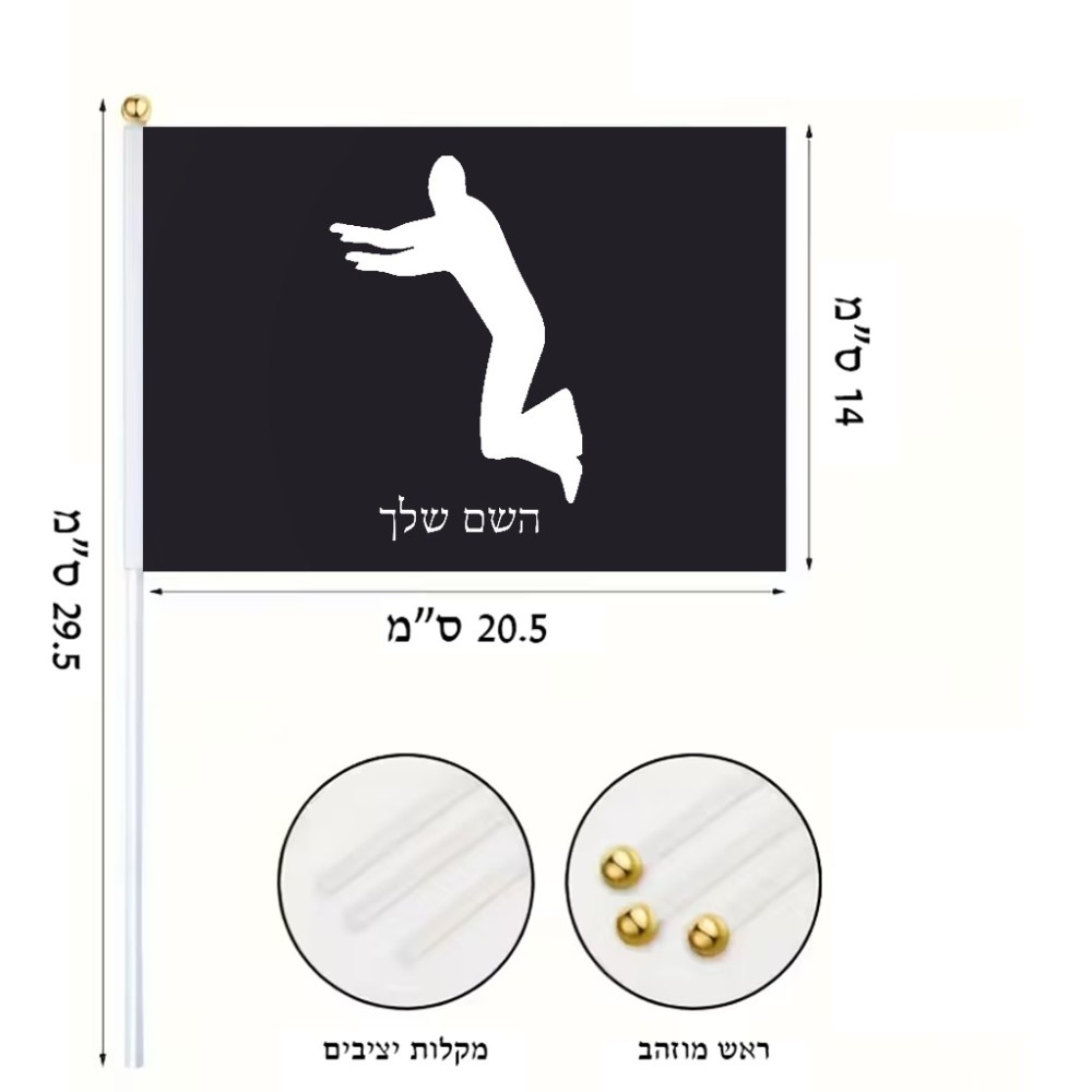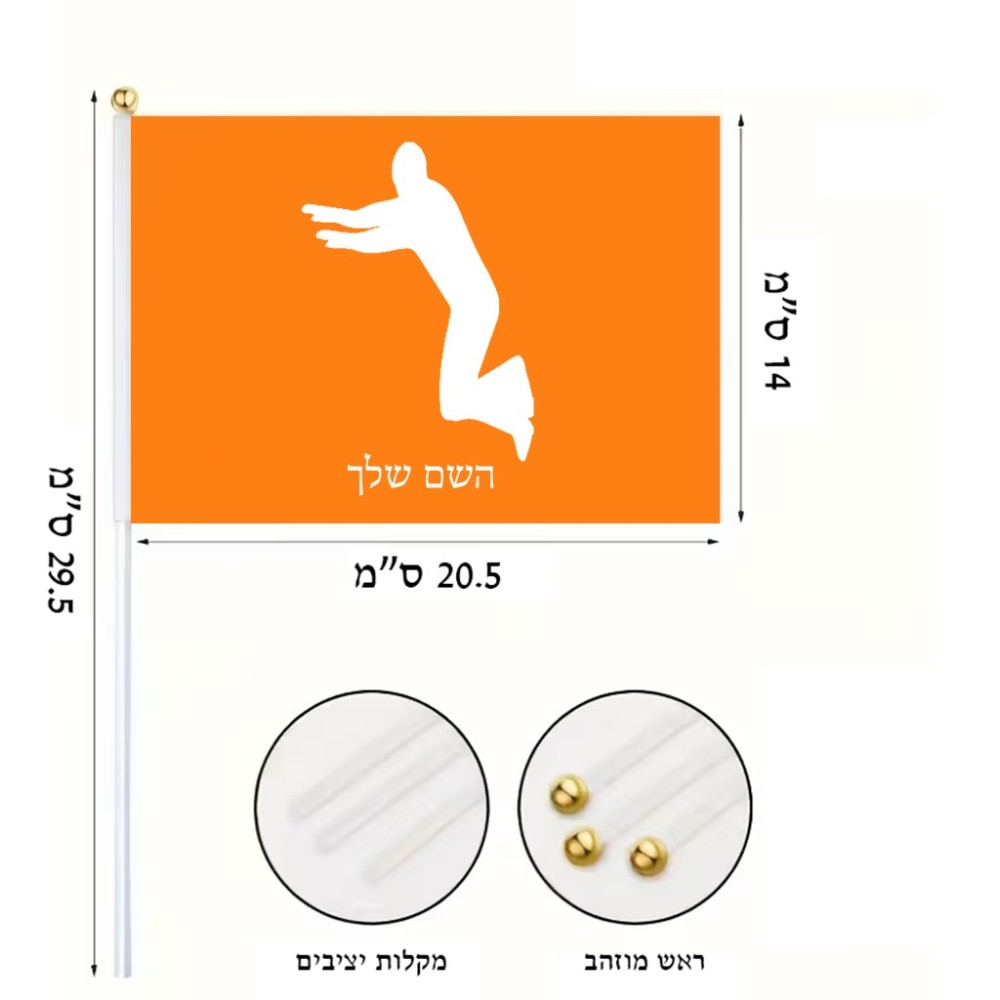 דיגלון בעיצוב אישי עם השם שלך בעיצוב פארקורינג גודל הדיגלון 20.5 × 14 ס"מ, ההדפסה מתבצעת בשני צידי הדגל, את השם המבוקש ניתן לציין בהזמנה, אם לא צויין אנחנו ניצור קשר לבירור.