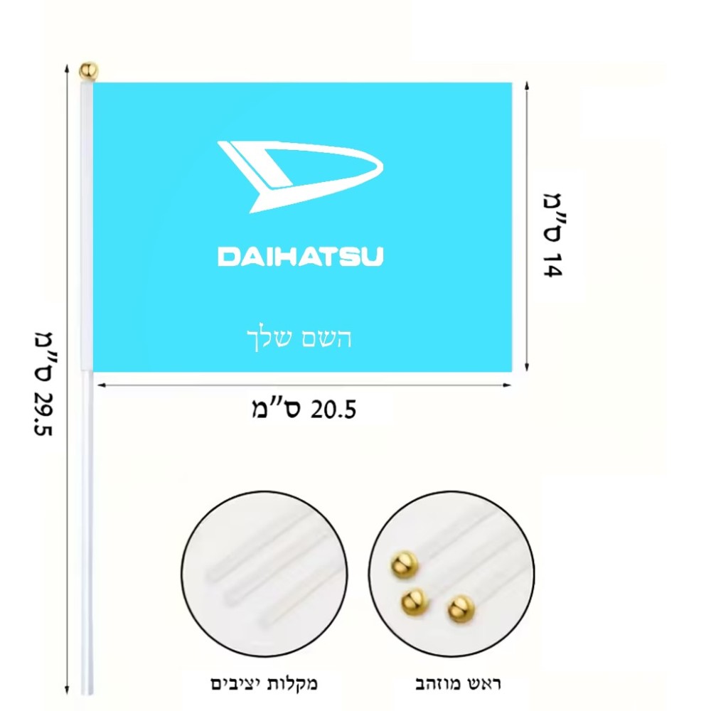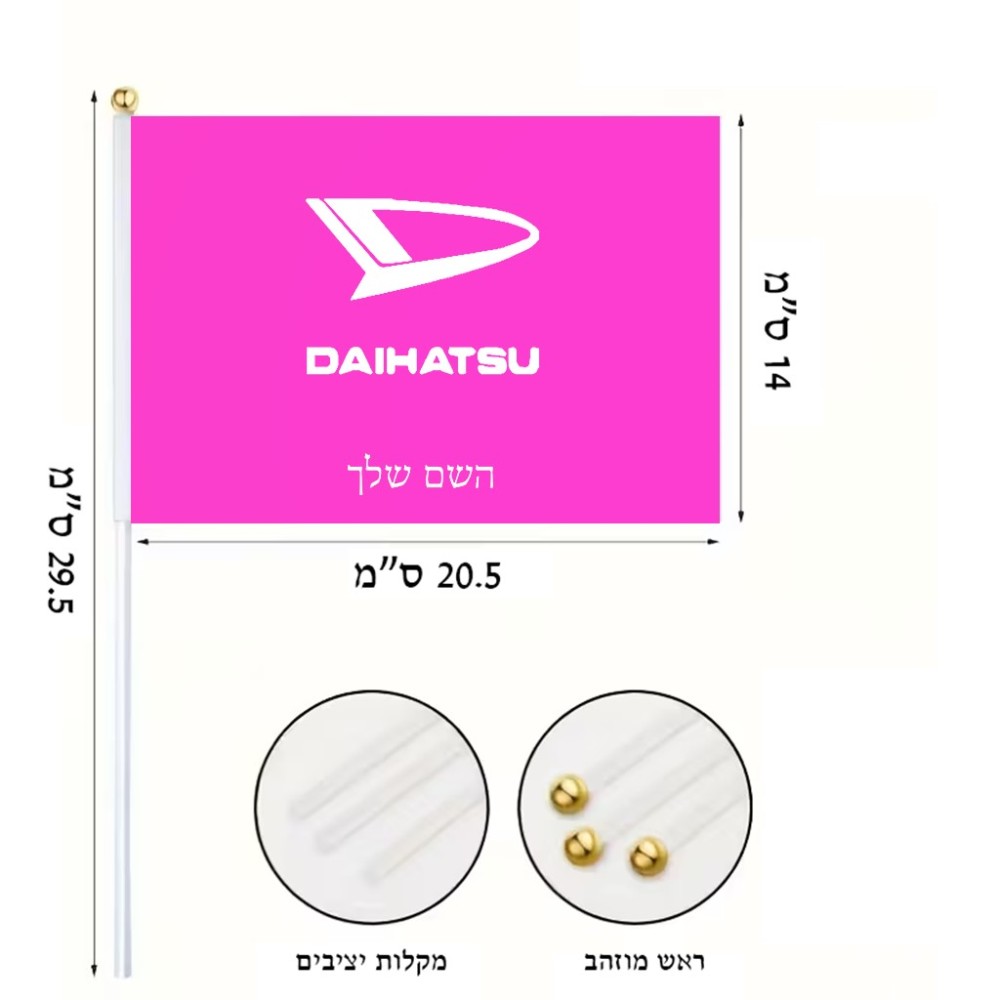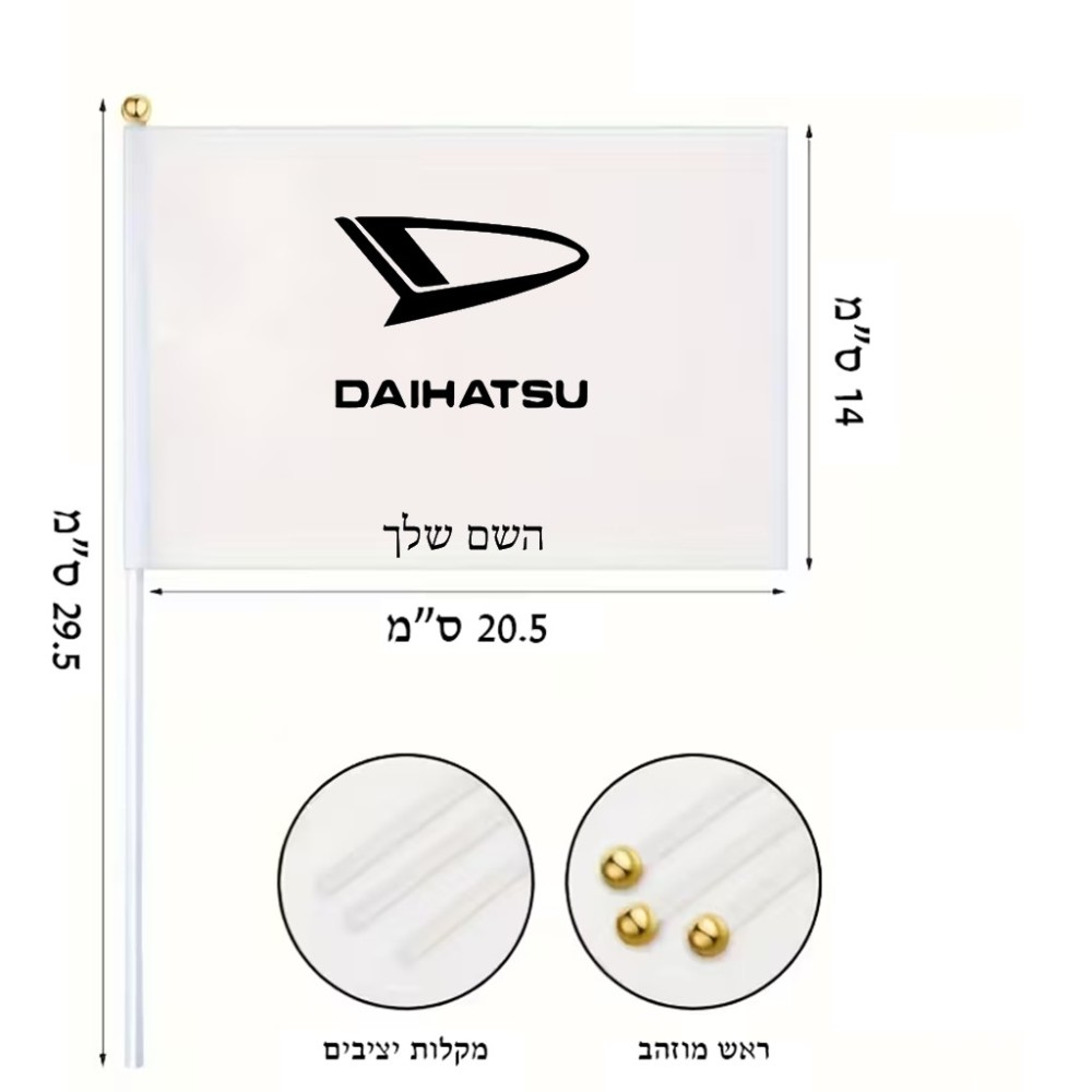 דיגלון בעיצוב אישי עם השם שלך בעיצוב דייהטסו גודל הדיגלון 20.5 × 14 ס"מ, ההדפסה מתבצעת בשני צידי הדגל, את השם המבוקש ניתן לציין בהזמנה, אם לא צויין אנחנו ניצור קשר לבירור.
