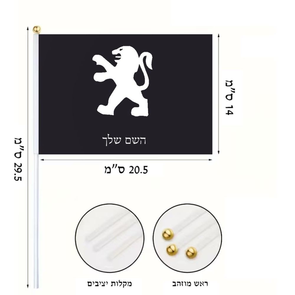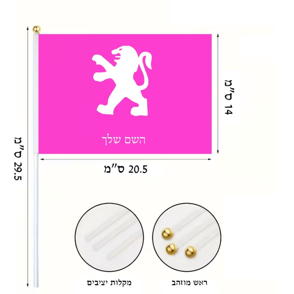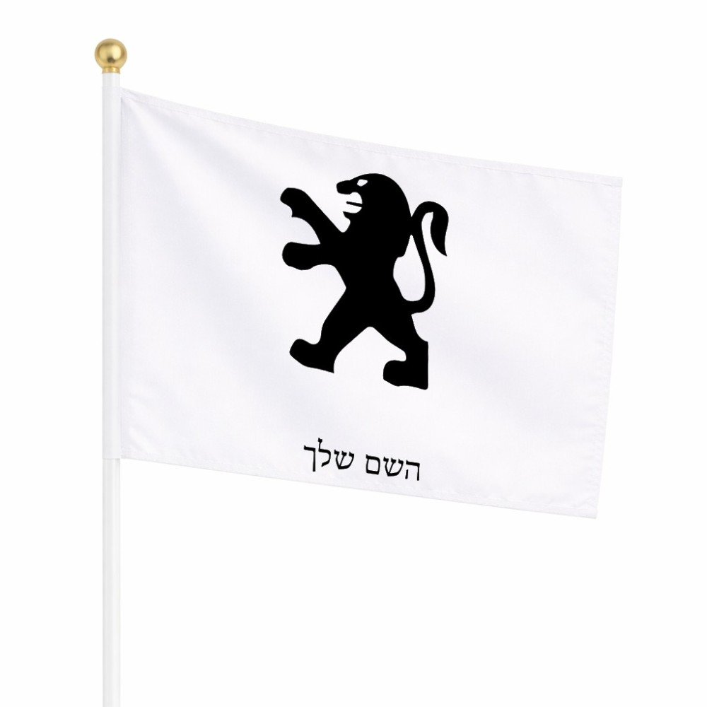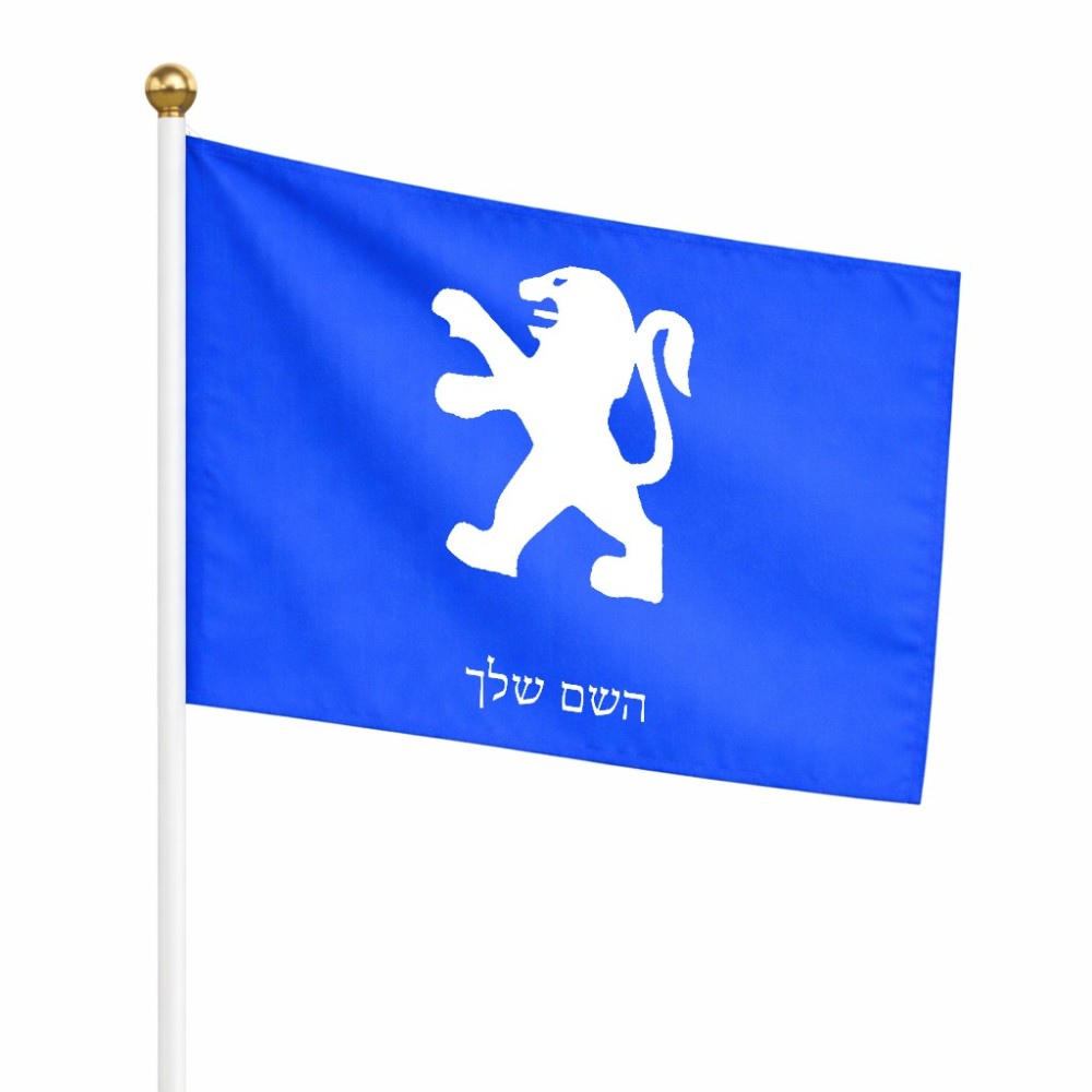 דיגלון בעיצוב אישי עם השם שלך בעיצוב פיג'ו גודל הדיגלון 20.5 × 14 ס"מ, ההדפסה מתבצעת בשני צידי הדגל, את השם המבוקש ניתן לציין בהזמנה, אם לא צויין אנחנו ניצור קשר לבירור.