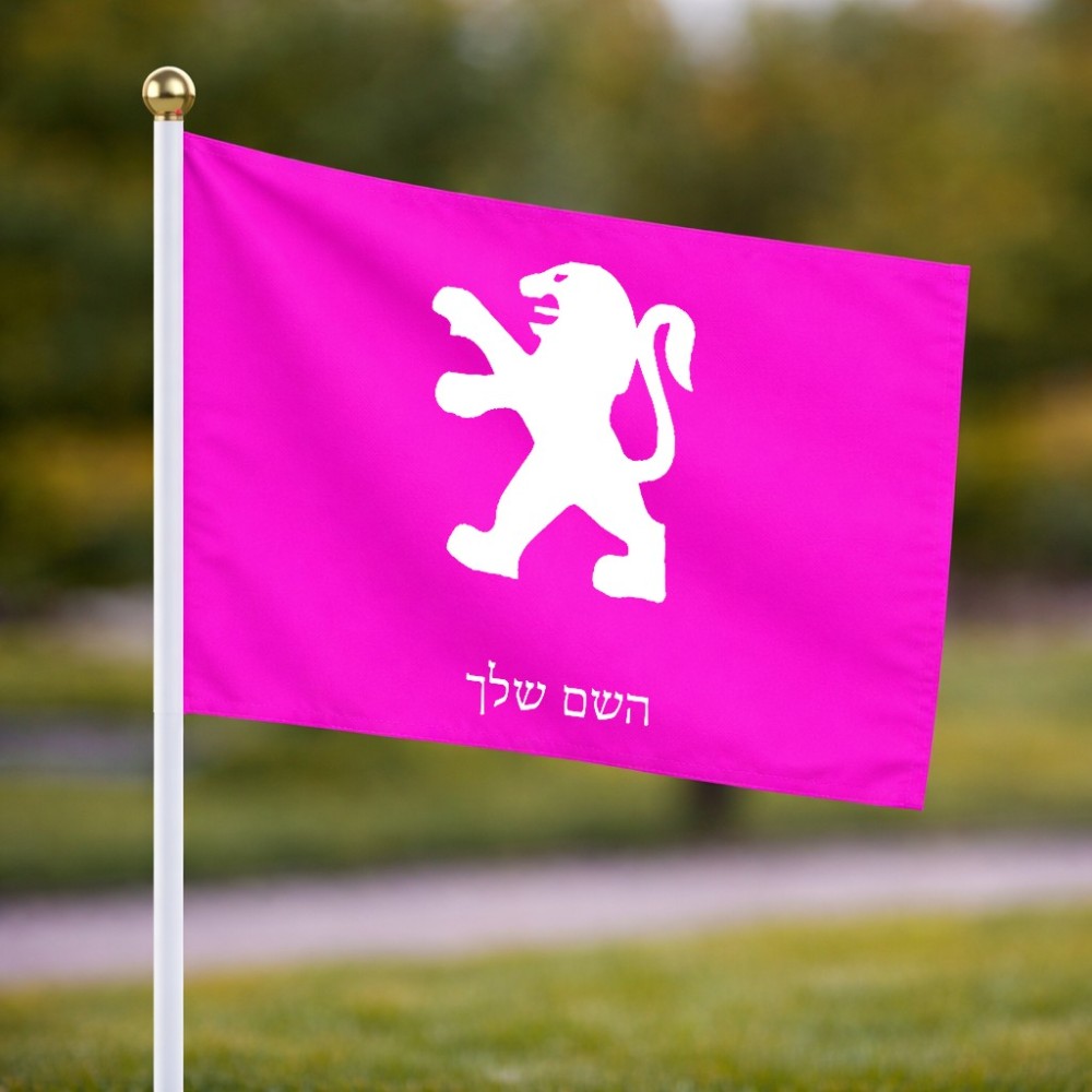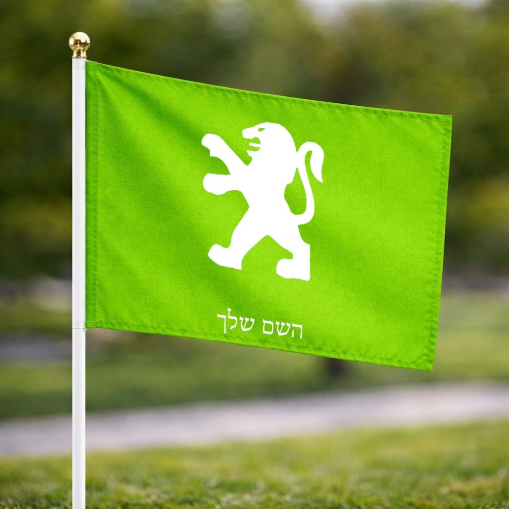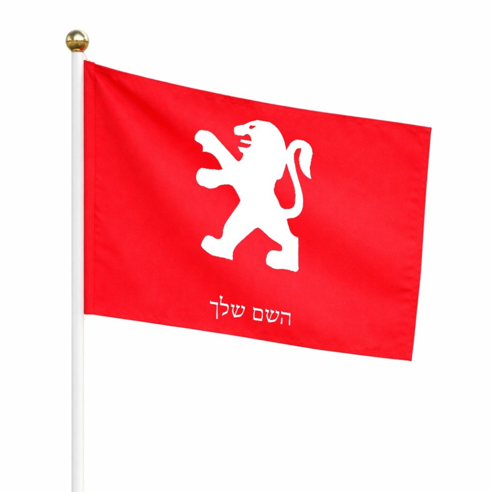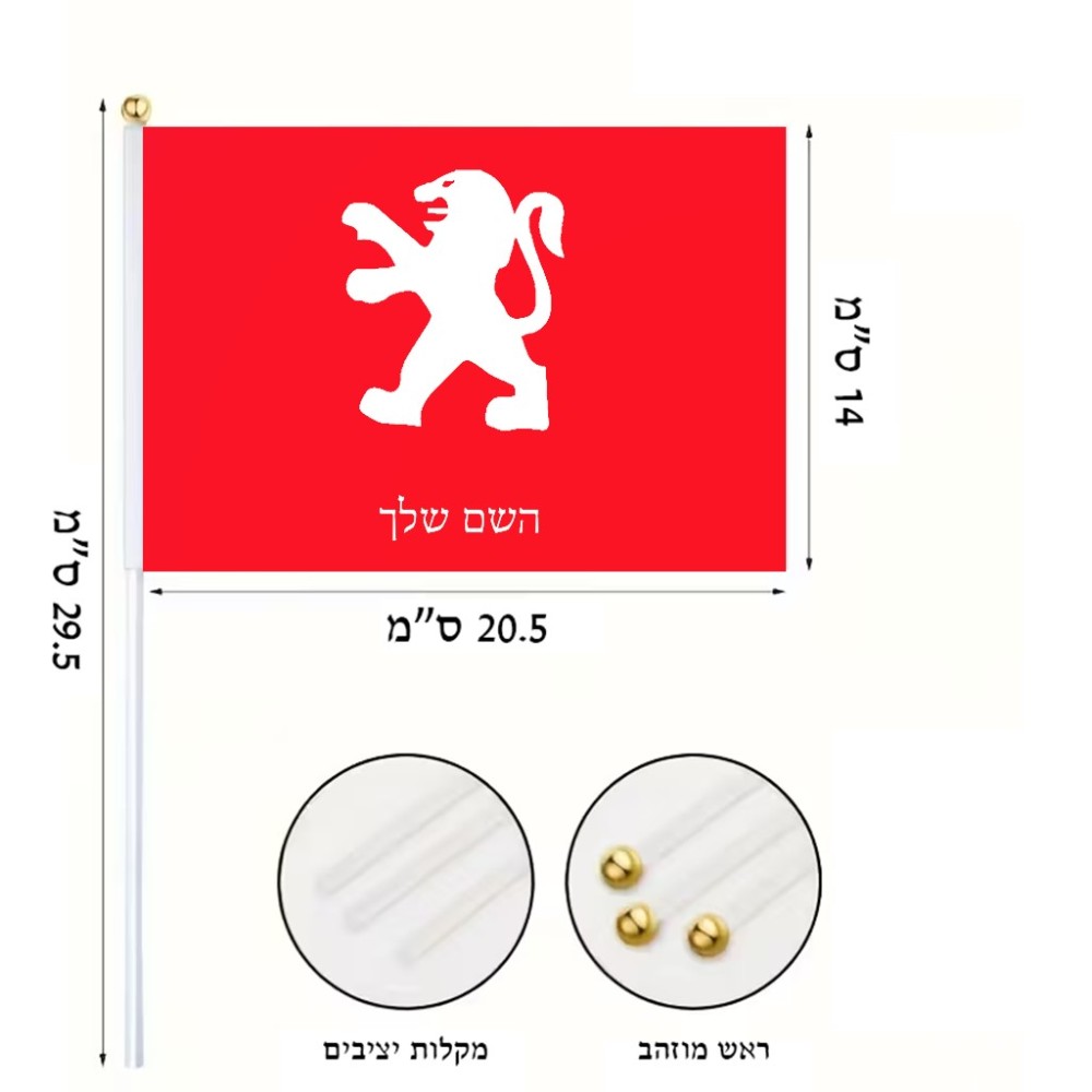 דיגלון בעיצוב אישי עם השם שלך בעיצוב פיג'ו גודל הדיגלון 20.5 × 14 ס"מ, ההדפסה מתבצעת בשני צידי הדגל, את השם המבוקש ניתן לציין בהזמנה, אם לא צויין אנחנו ניצור קשר לבירור.