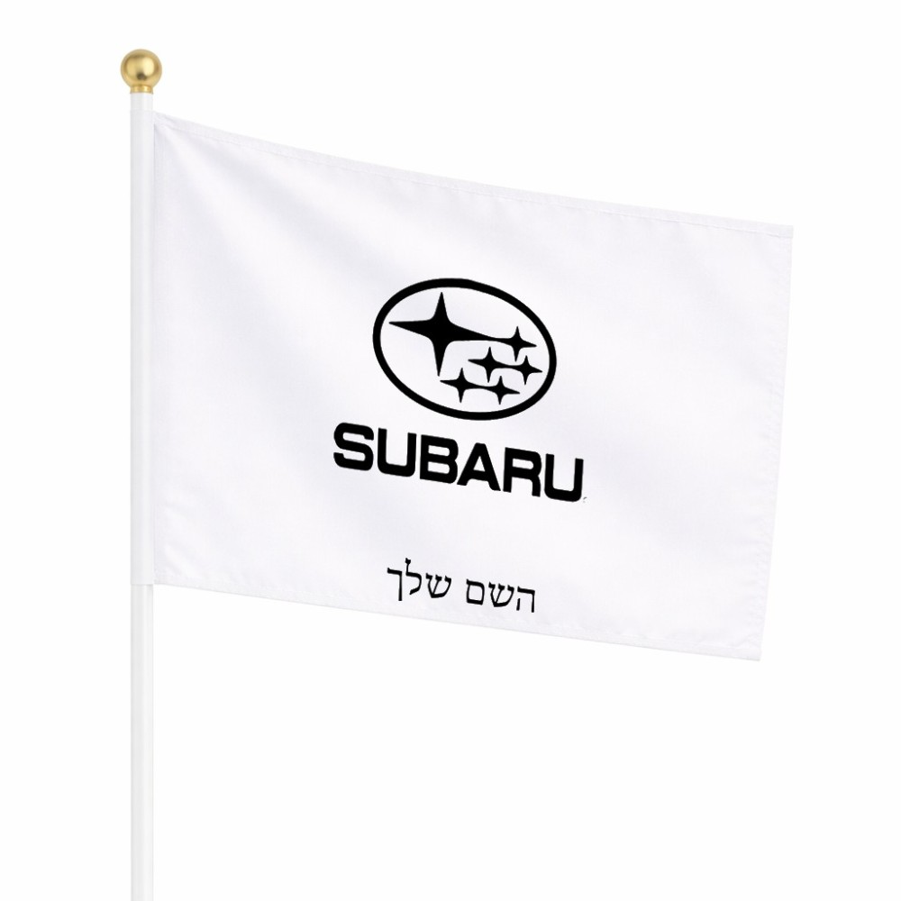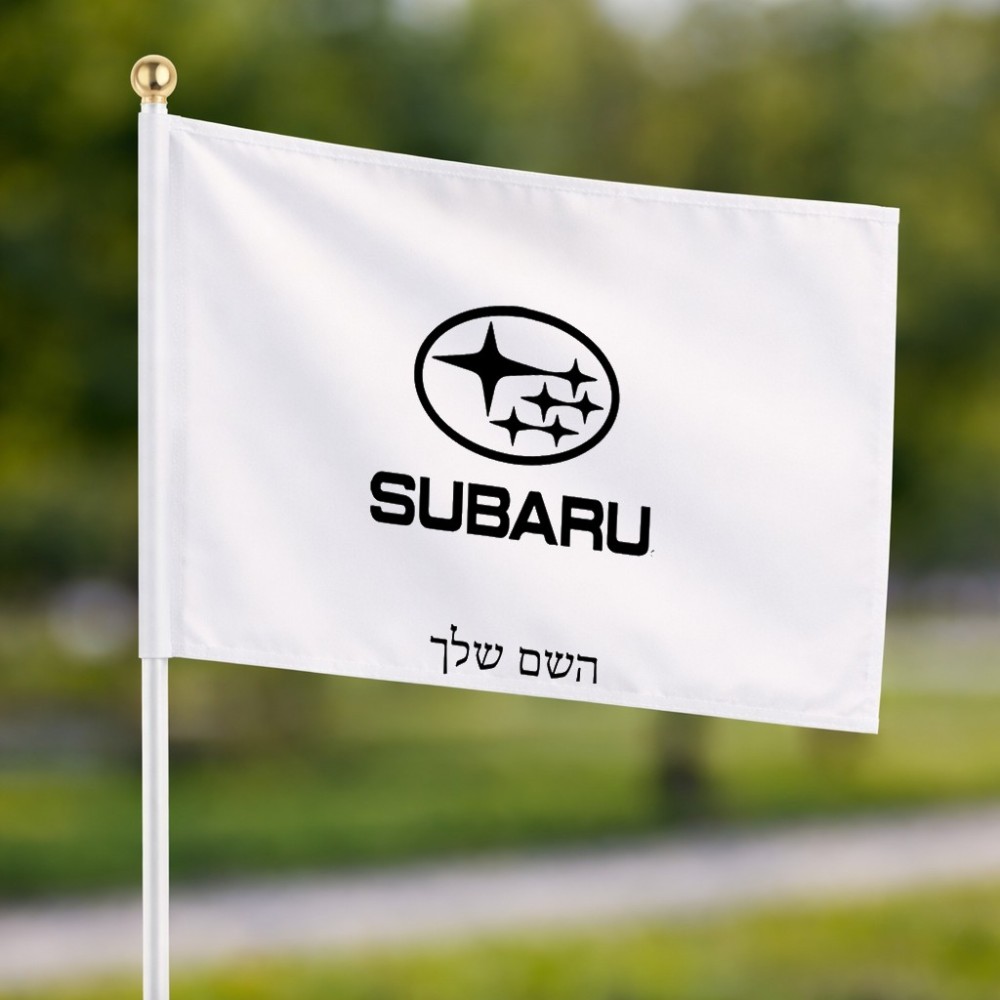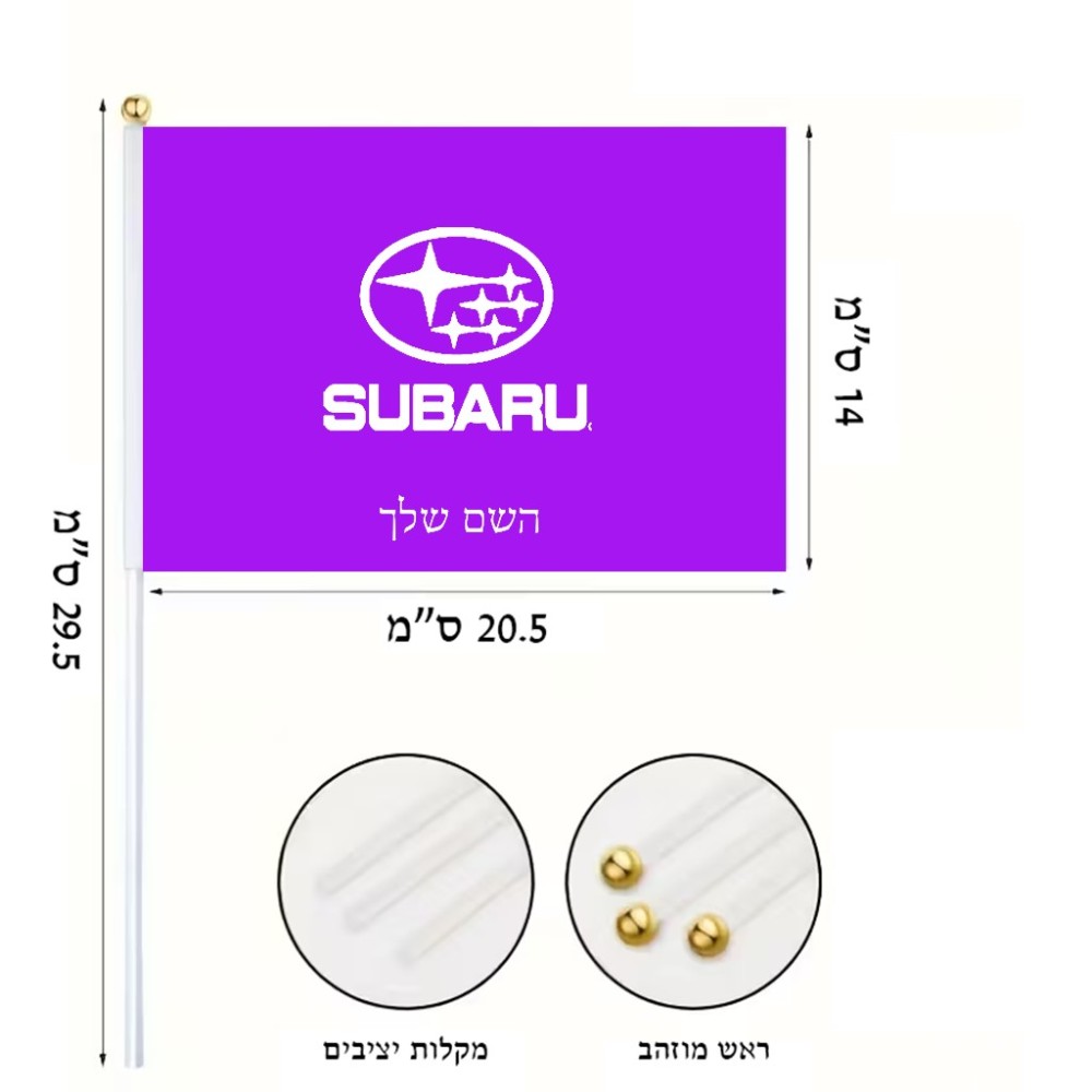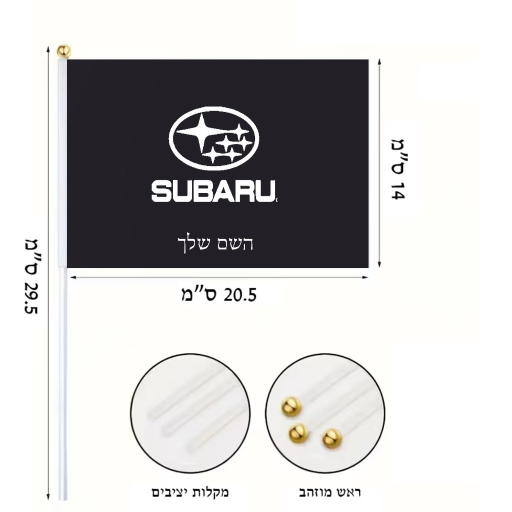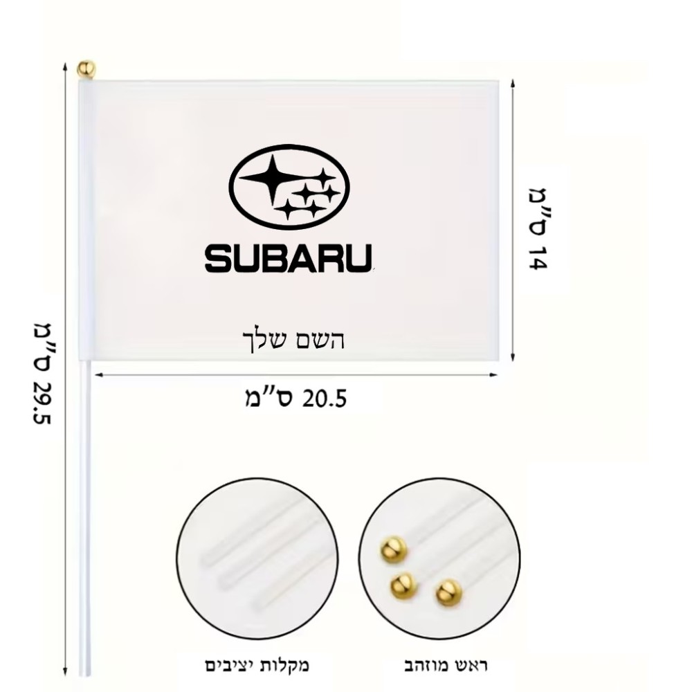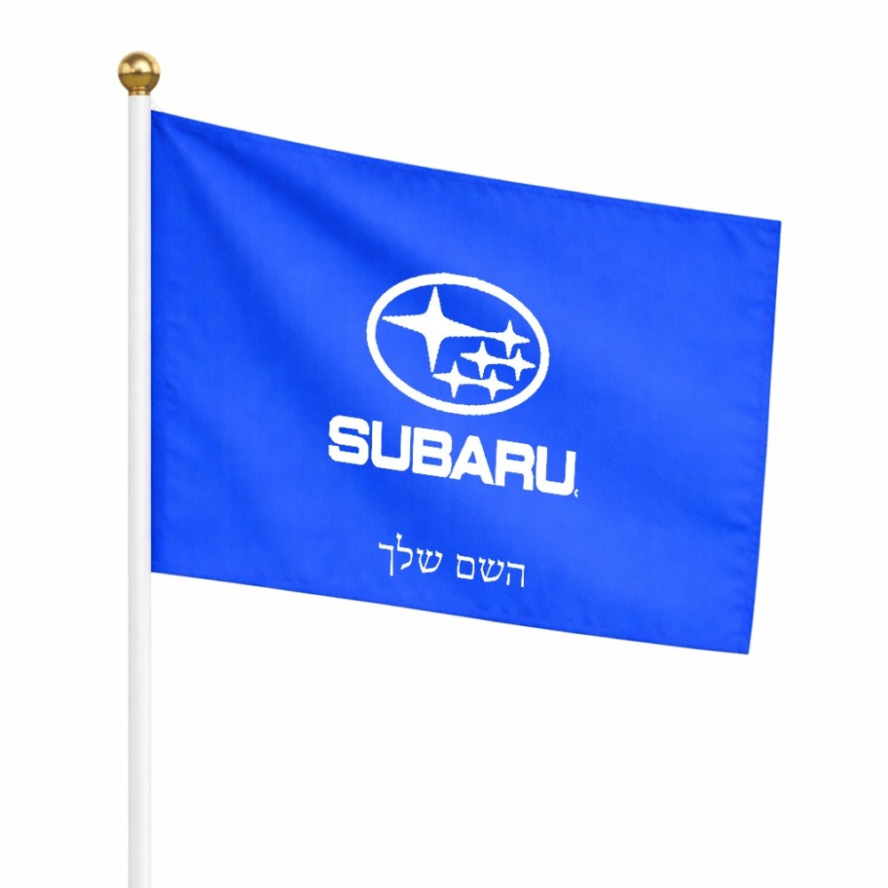 דיגלון בעיצוב אישי עם השם שלך בעיצוב סובארו גודל הדיגלון 20.5 × 14 ס"מ, ההדפסה מתבצעת בשני צידי הדגל, את השם המבוקש ניתן לציין בהזמנה, אם לא צויין אנחנו ניצור קשר לבירור.