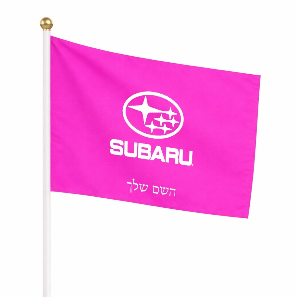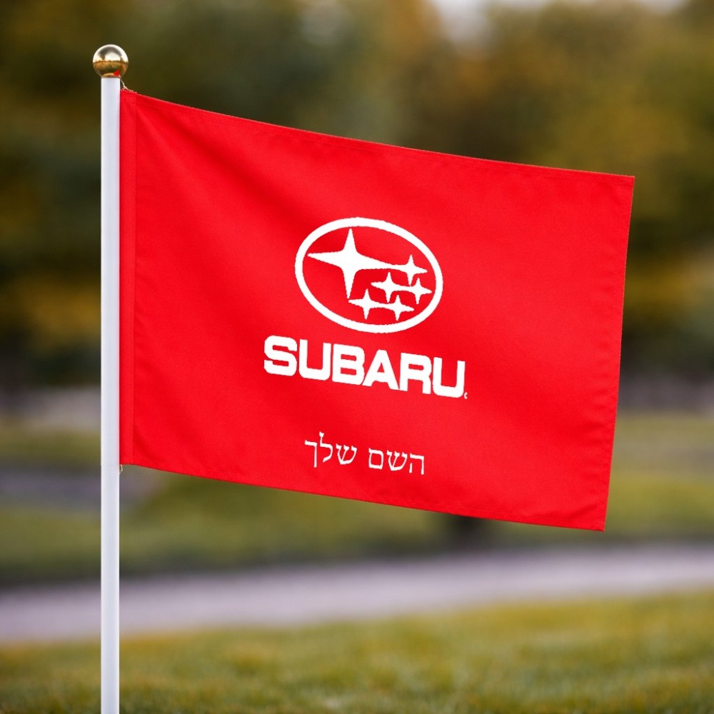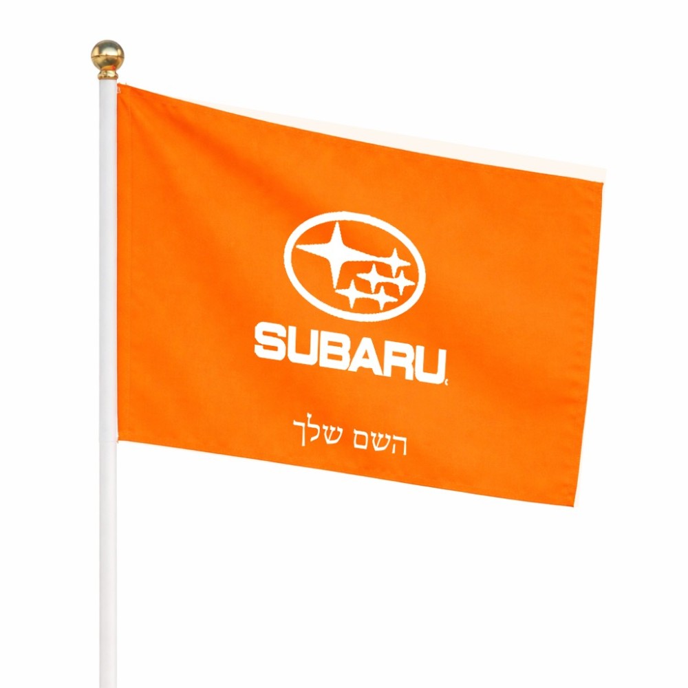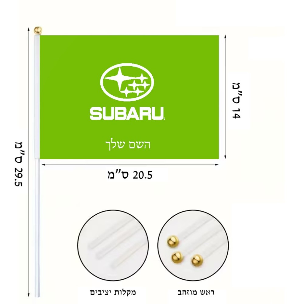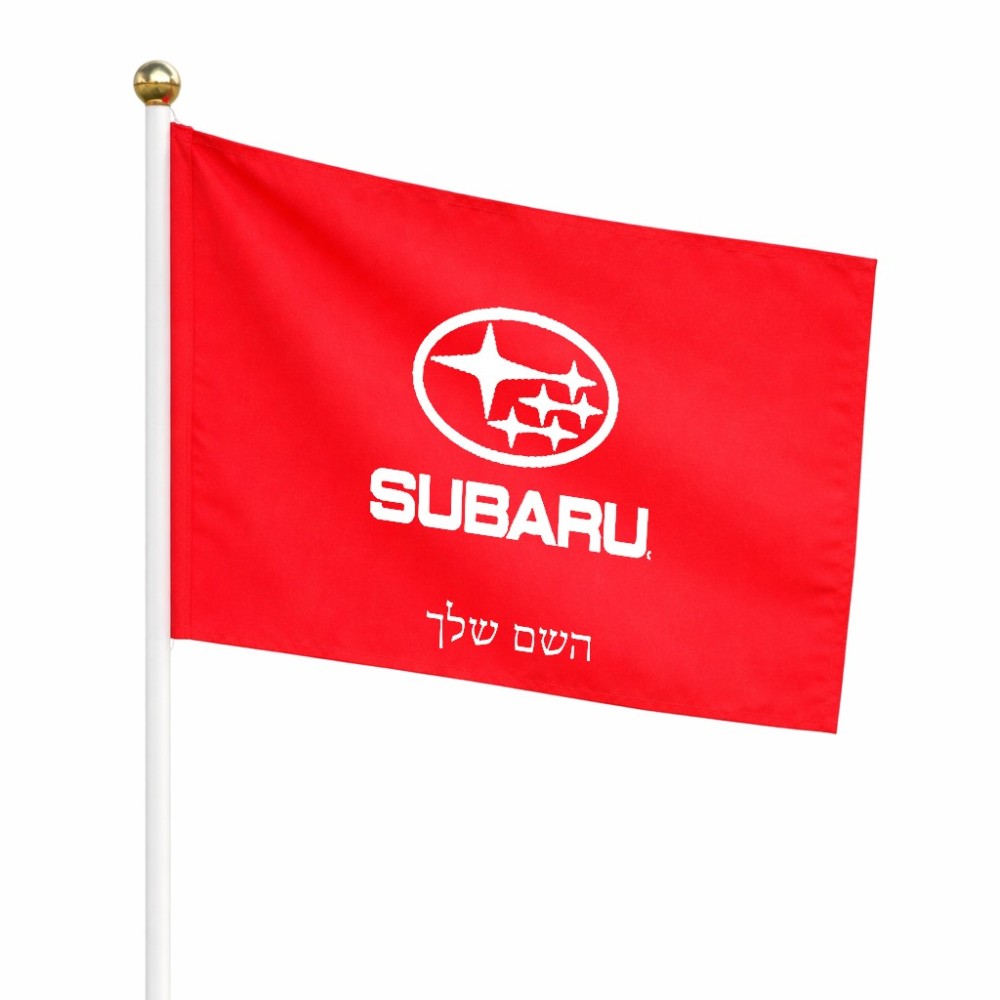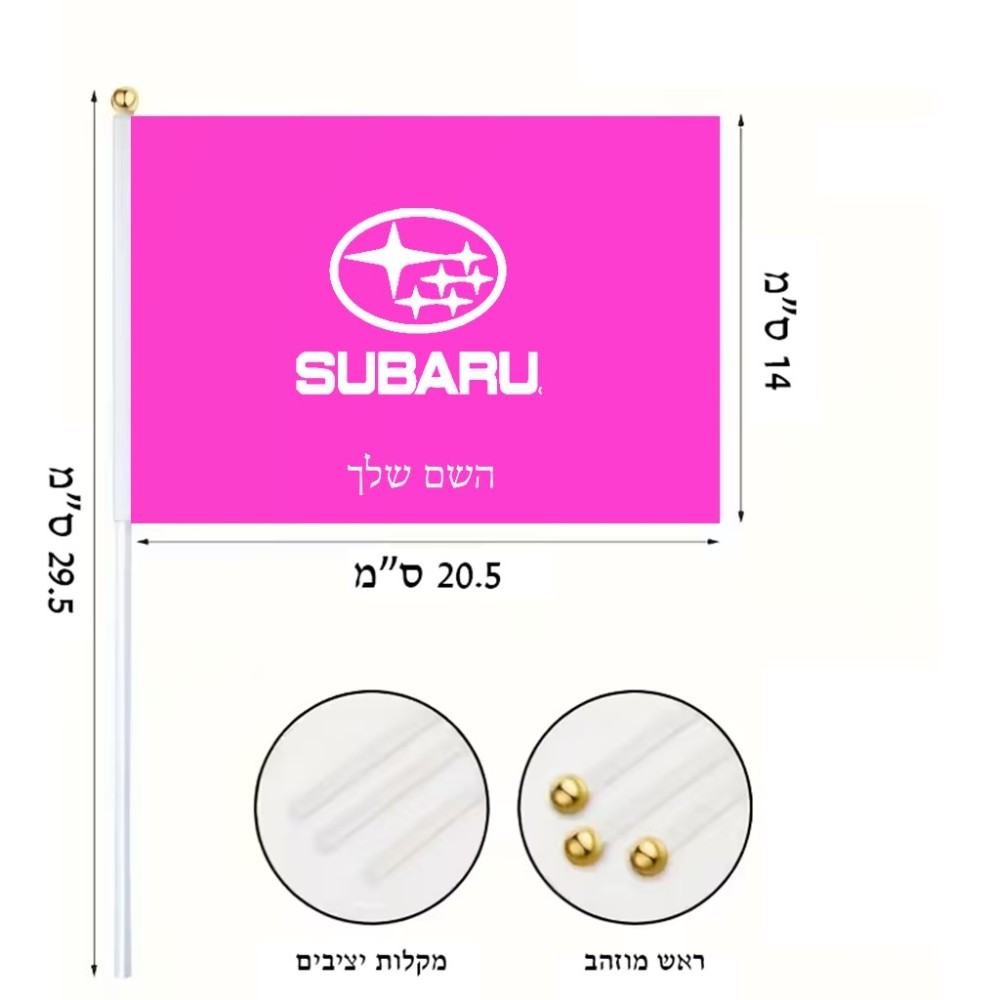 דיגלון בעיצוב אישי עם השם שלך בעיצוב סובארו גודל הדיגלון 20.5 × 14 ס"מ, ההדפסה מתבצעת בשני צידי הדגל, את השם המבוקש ניתן לציין בהזמנה, אם לא צויין אנחנו ניצור קשר לבירור.