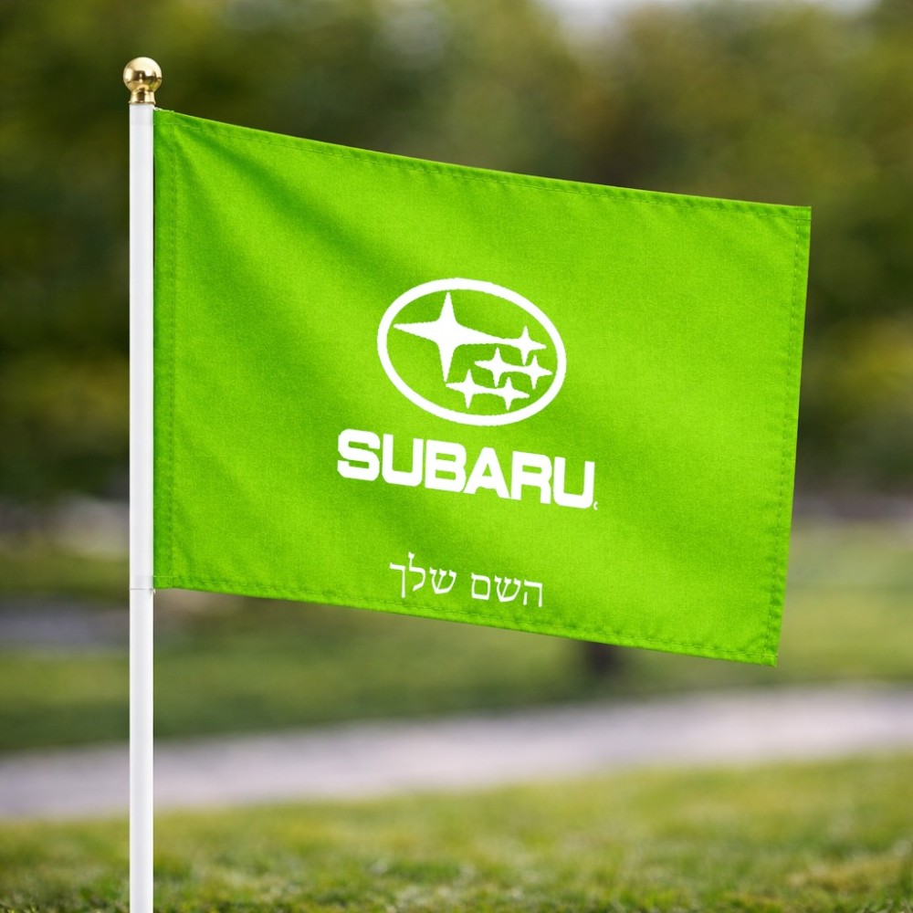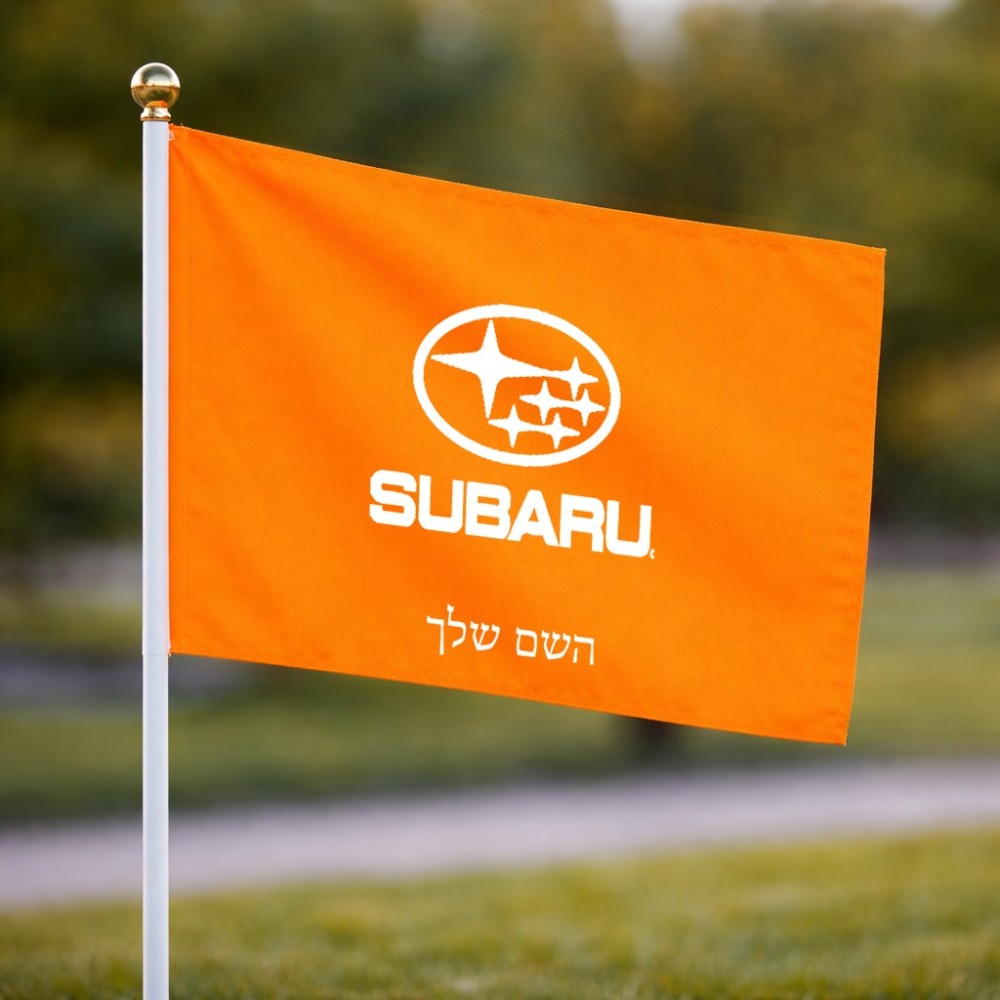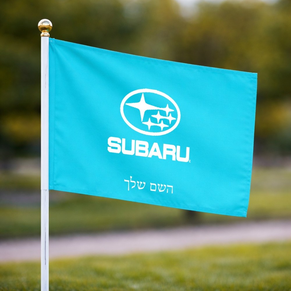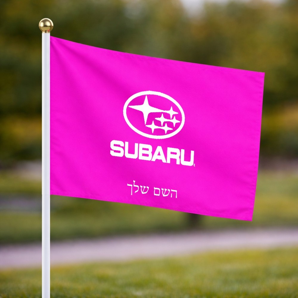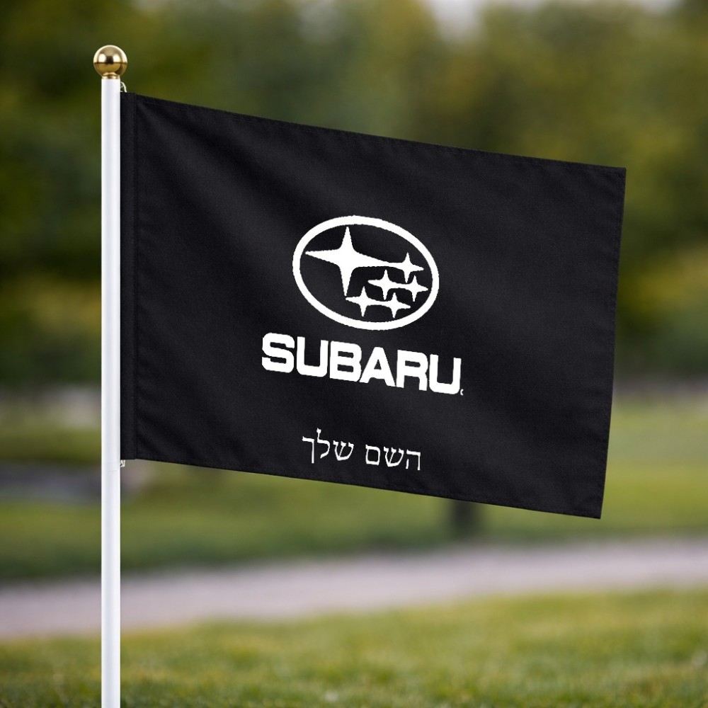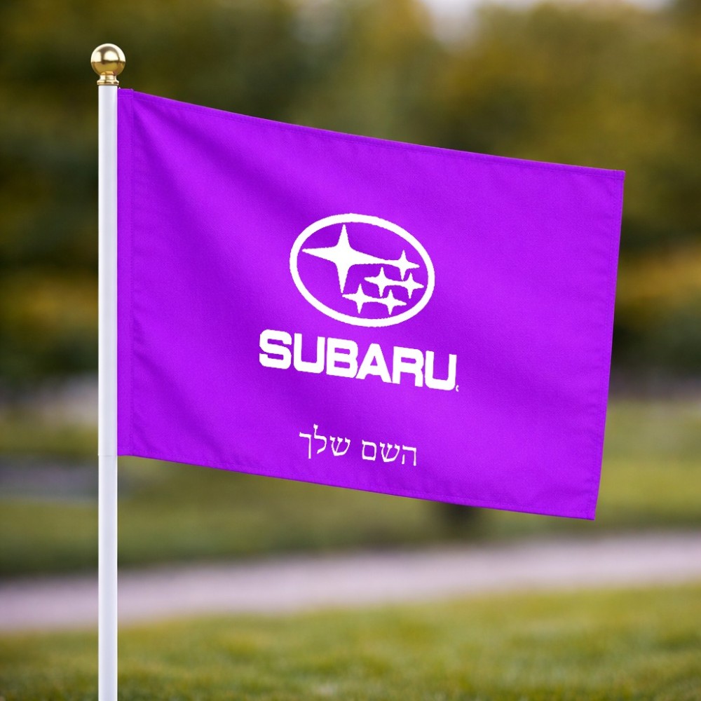 דיגלון בעיצוב אישי עם השם שלך בעיצוב סובארו גודל הדיגלון 20.5 × 14 ס"מ, ההדפסה מתבצעת בשני צידי הדגל, את השם המבוקש ניתן לציין בהזמנה, אם לא צויין אנחנו ניצור קשר לבירור.