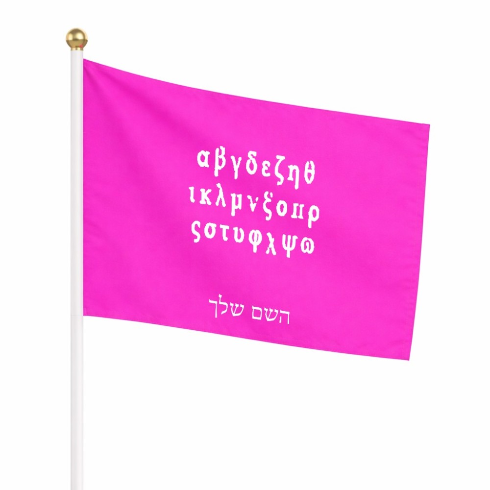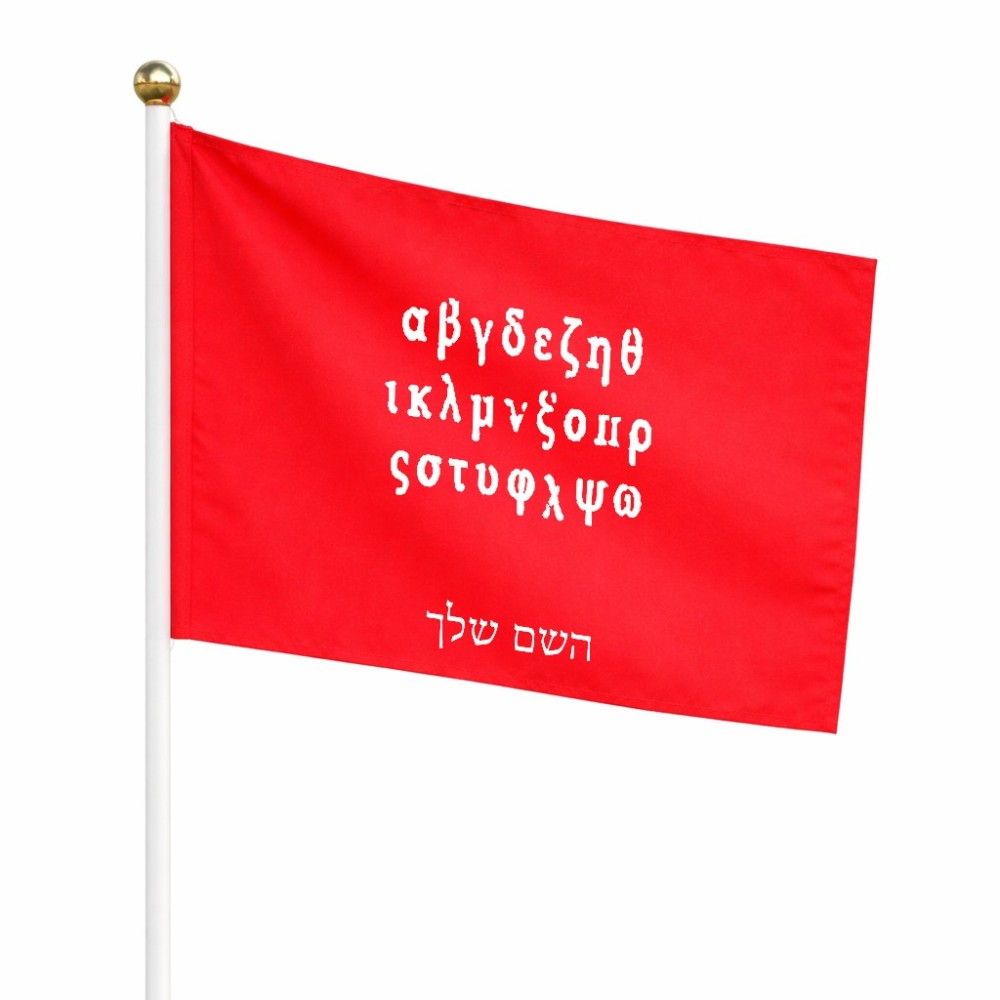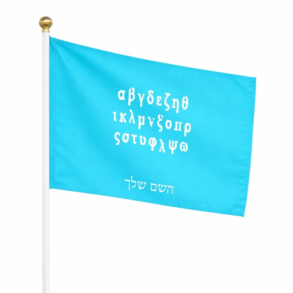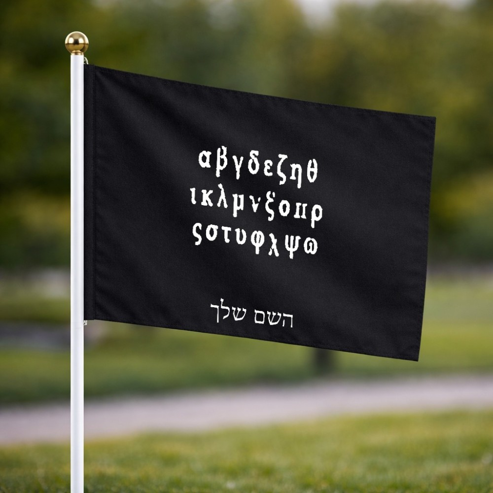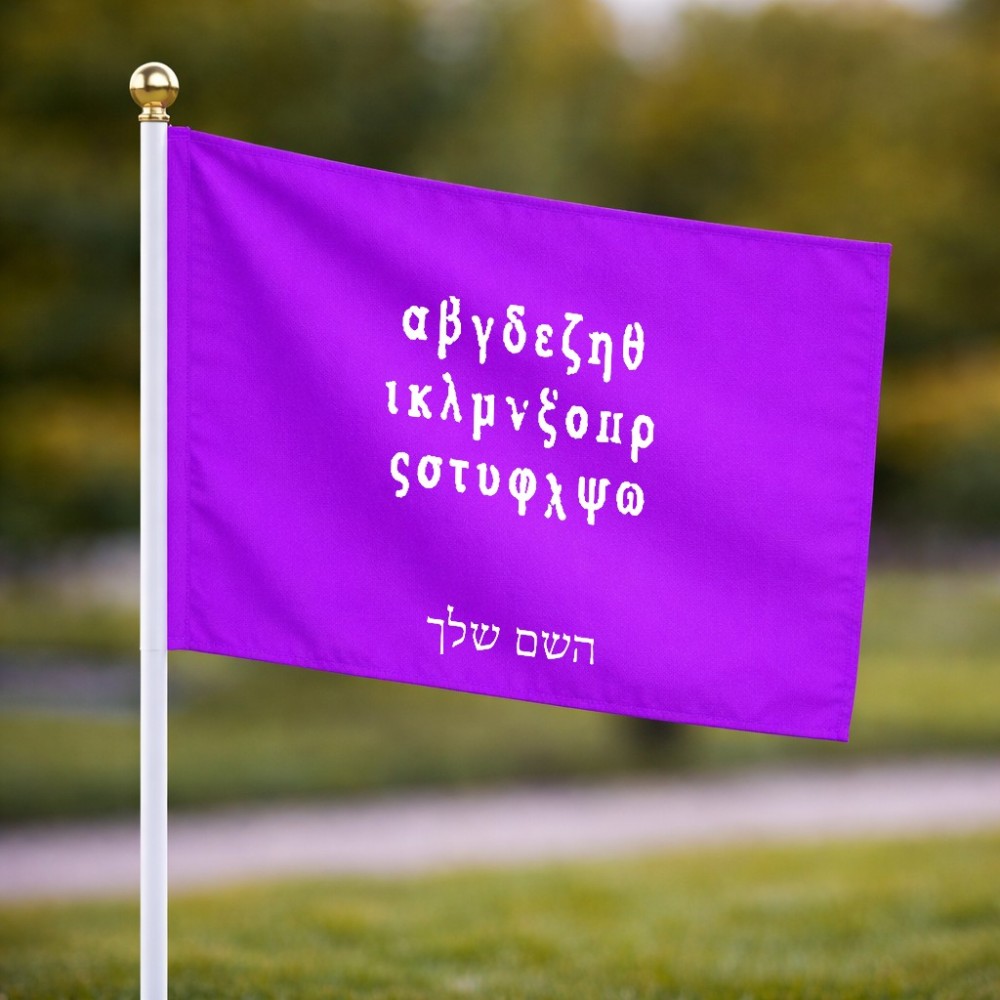 דיגלון בעיצוב אישי עם השם שלך בעיצוב האלפבית היווני גודל הדיגלון 20.5 × 14 ס"מ, ההדפסה מתבצעת בשני צידי הדגל, את השם המבוקש ניתן לציין בהזמנה, אם לא צויין אנחנו ניצור קשר לבירור.