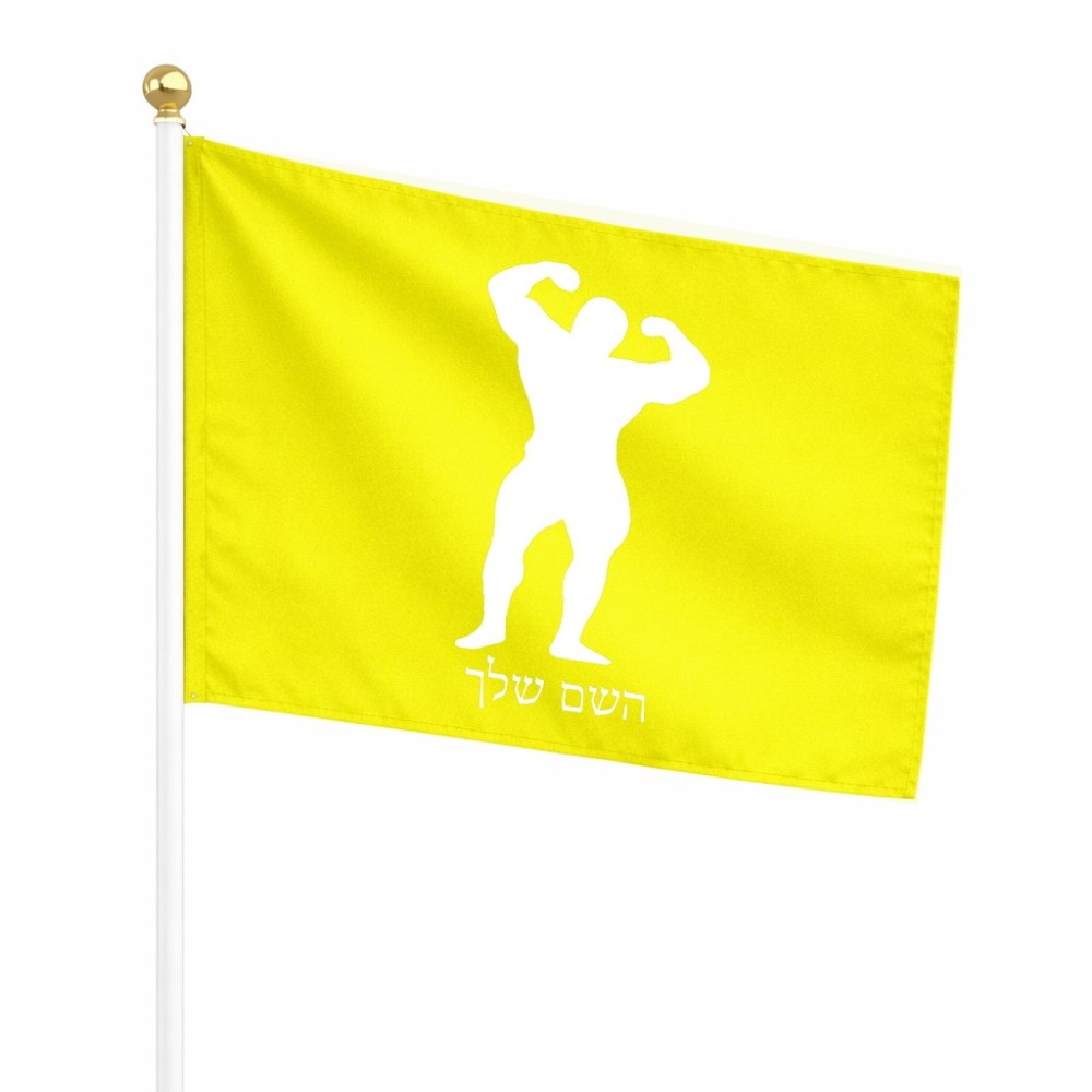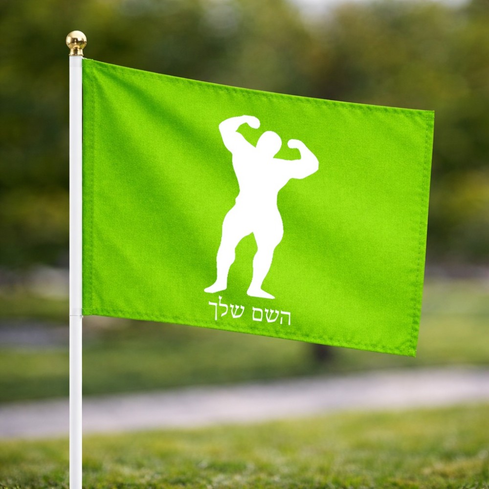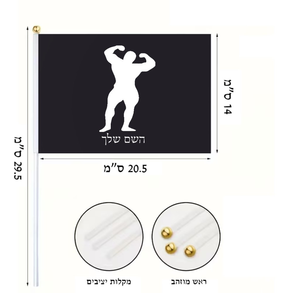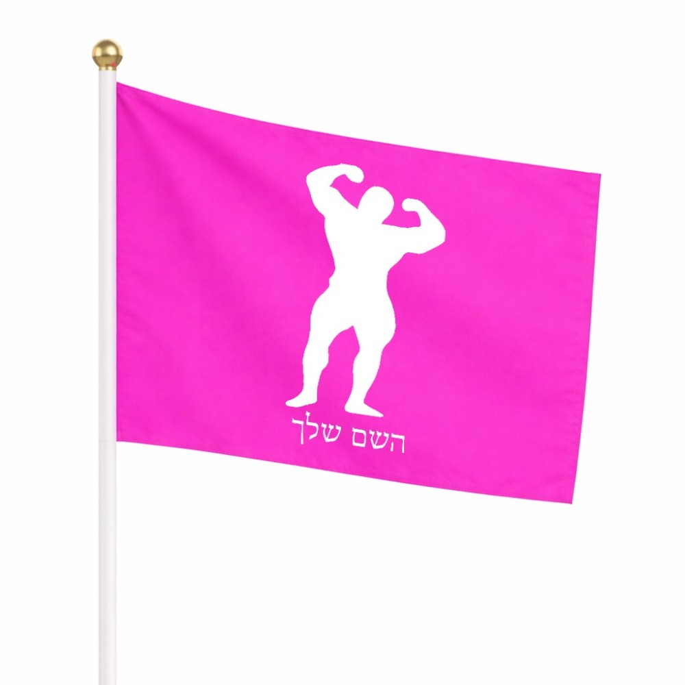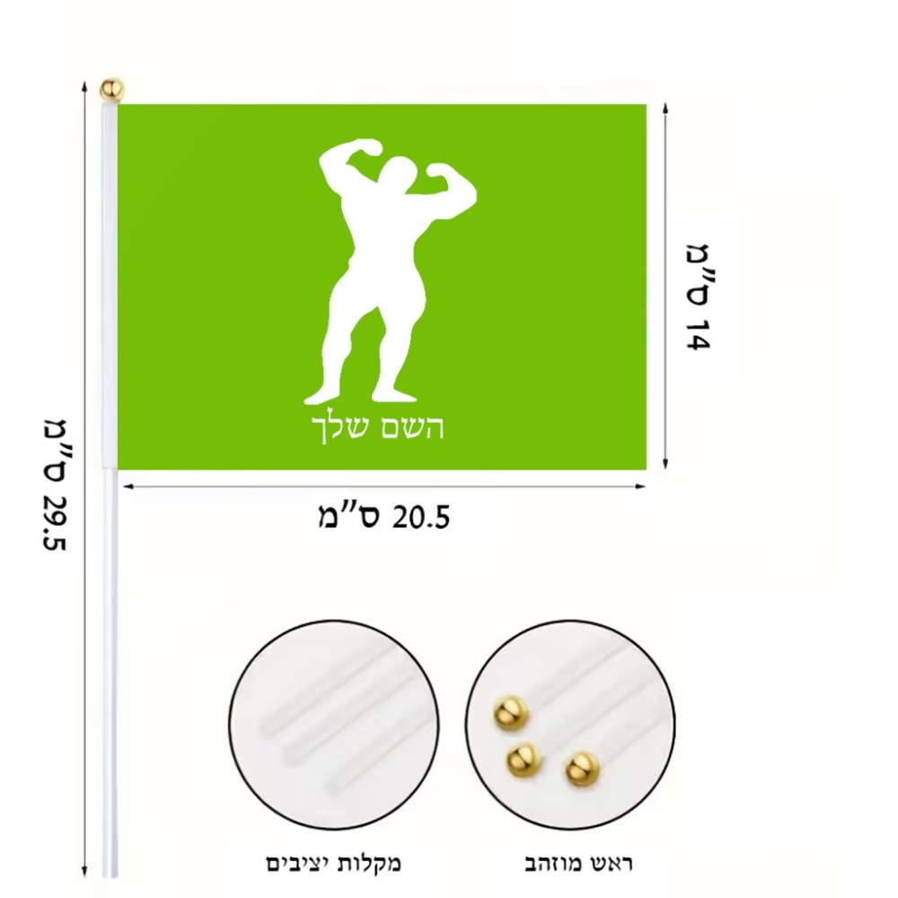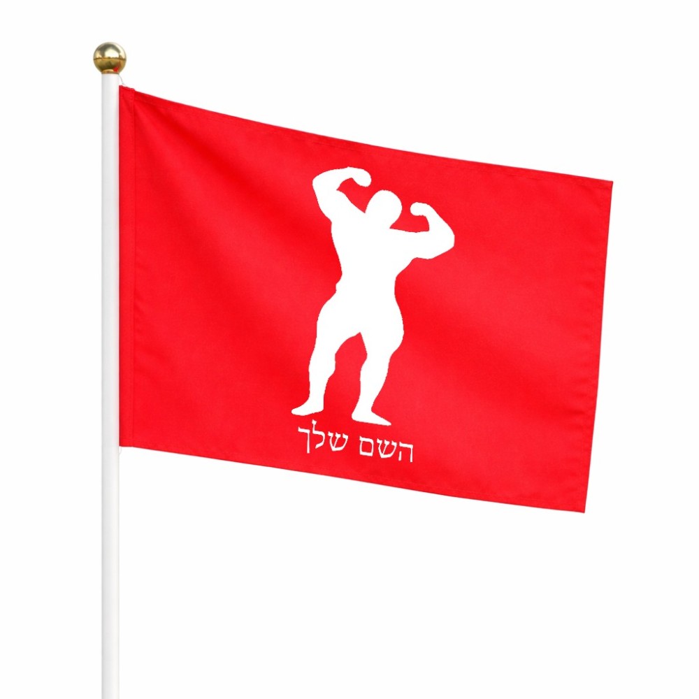 דיגלון בעיצוב אישי עם השם שלך בעיצוב פיתוח גוף גודל הדיגלון 20.5 × 14 ס"מ, ההדפסה מתבצעת בשני צידי הדגל, את השם המבוקש ניתן לציין בהזמנה, אם לא צויין אנחנו ניצור קשר לבירור.