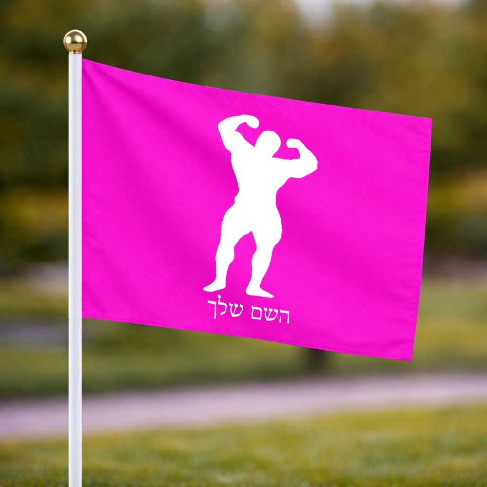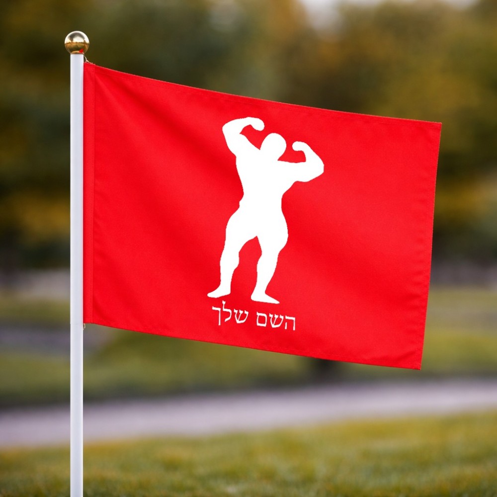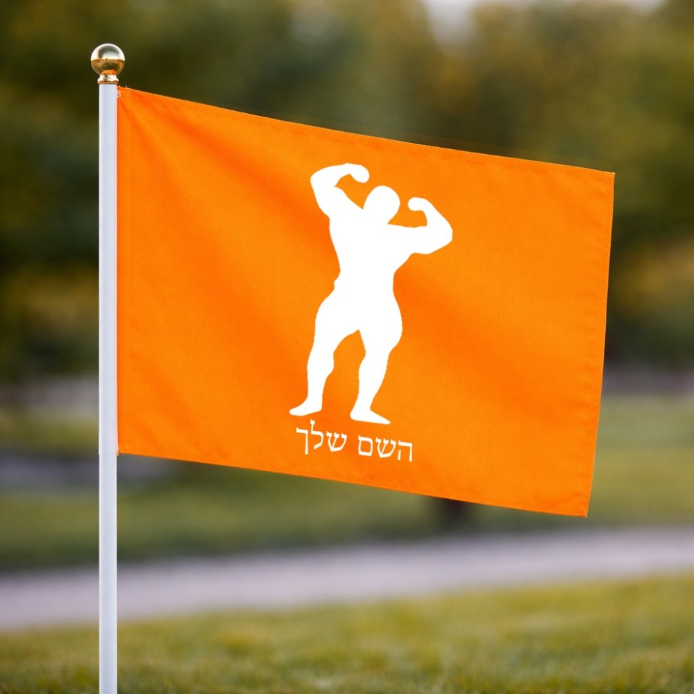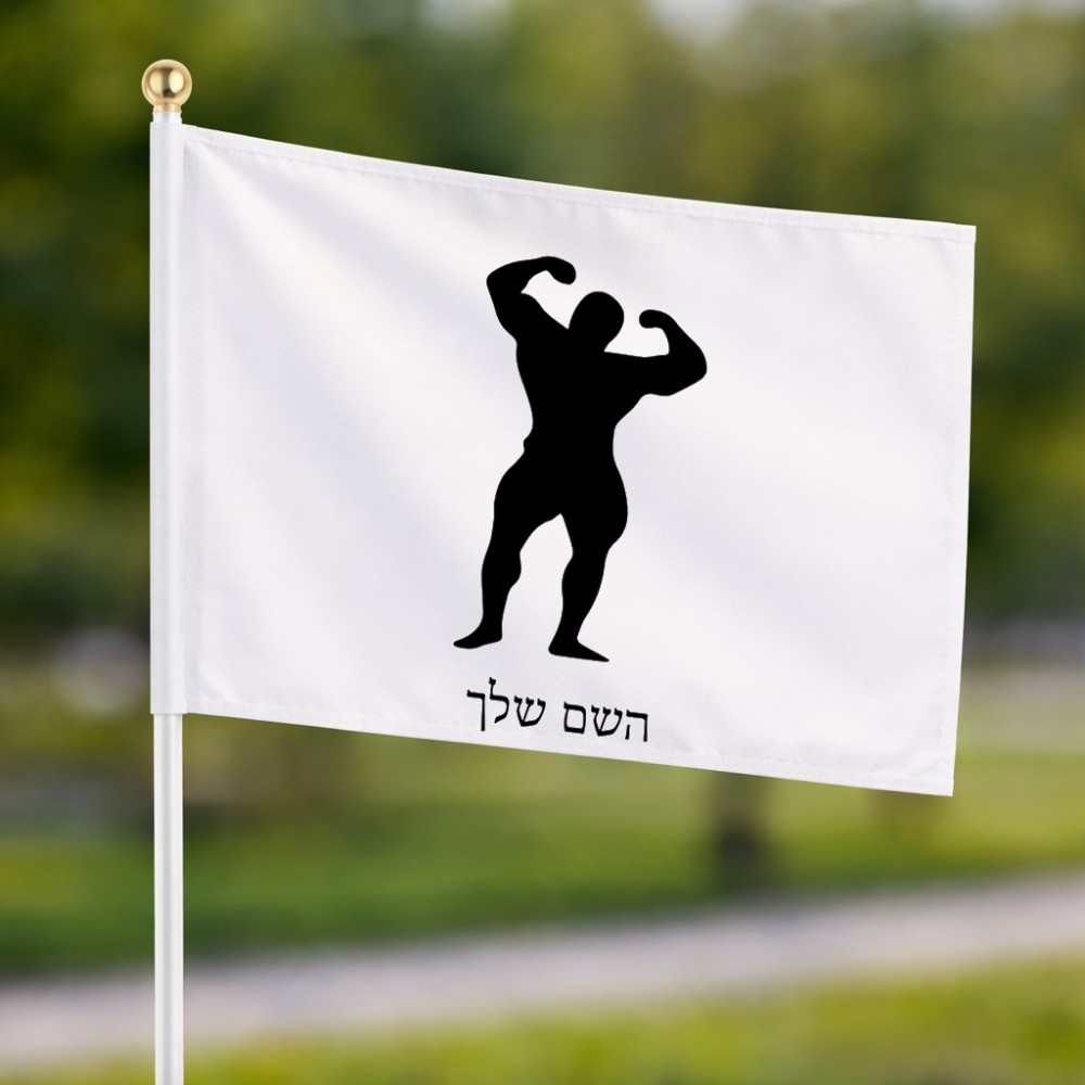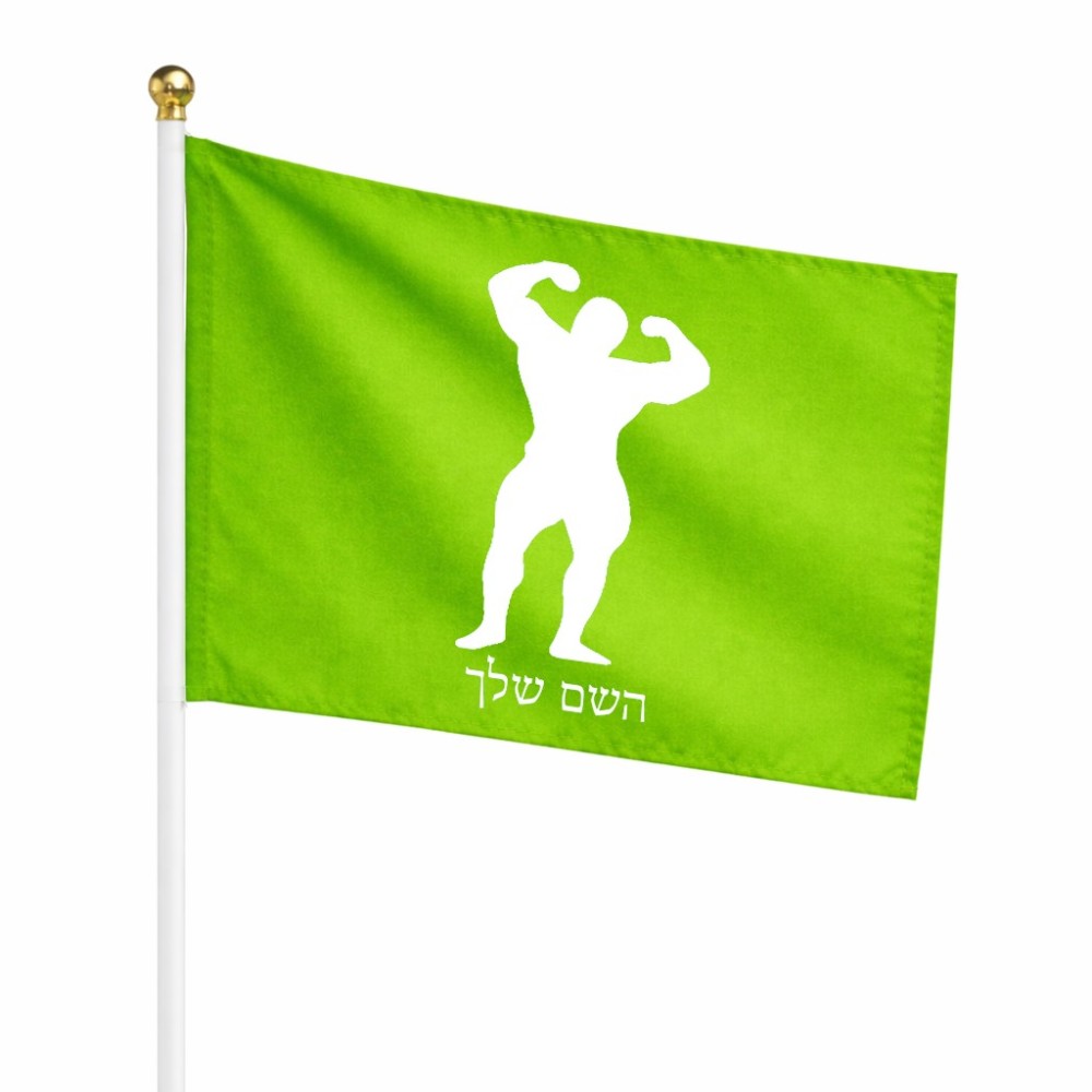 דיגלון בעיצוב אישי עם השם שלך בעיצוב פיתוח גוף גודל הדיגלון 20.5 × 14 ס"מ, ההדפסה מתבצעת בשני צידי הדגל, את השם המבוקש ניתן לציין בהזמנה, אם לא צויין אנחנו ניצור קשר לבירור.