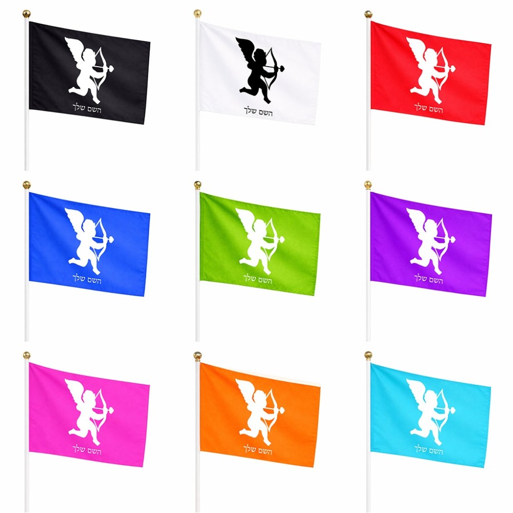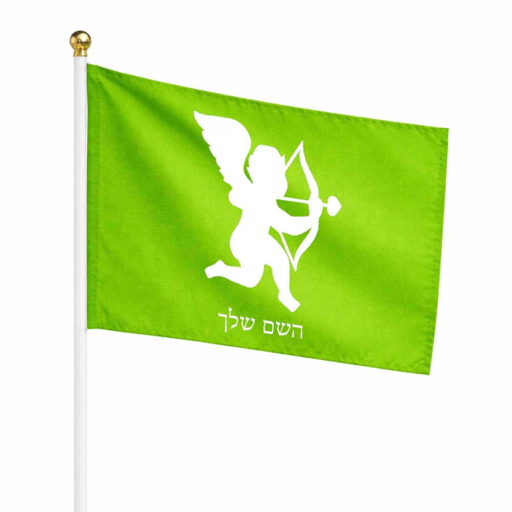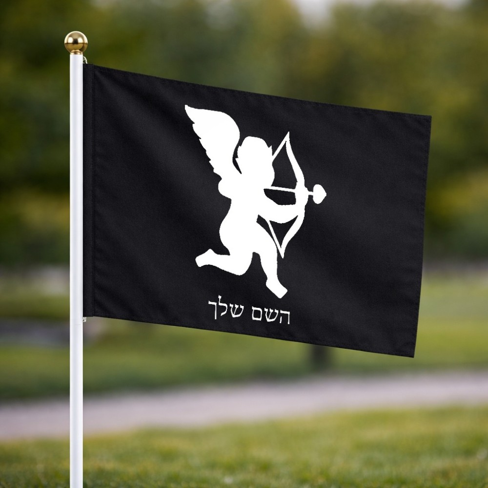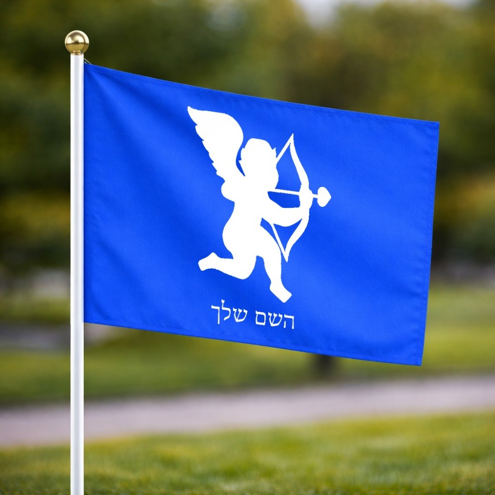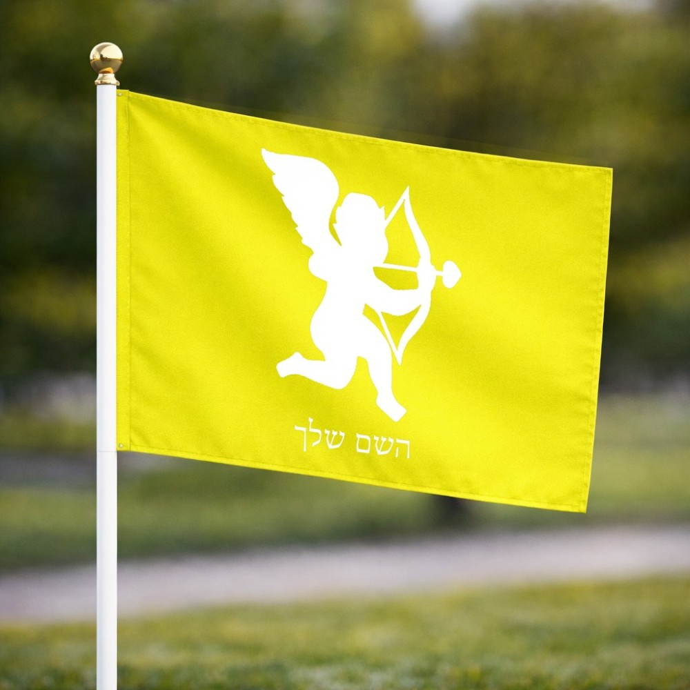 דיגלון בעיצוב אישי עם השם שלך בעיצוב קופידון גודל הדיגלון 20.5 × 14 ס"מ, ההדפסה מתבצעת בשני צידי הדגל, את השם המבוקש ניתן לציין בהזמנה, אם לא צויין אנחנו ניצור קשר לבירור.