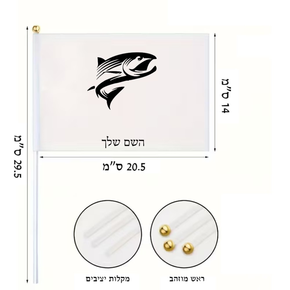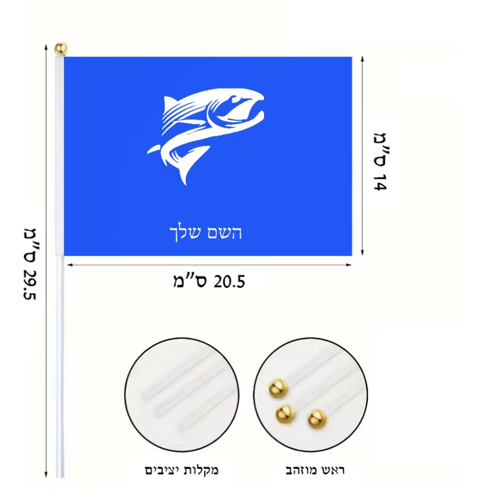 דיגלון בעיצוב אישי עם השם שלך בעיצוב לדוג גודל הדיגלון 20.5 × 14 ס"מ, ההדפסה מתבצעת בשני צידי הדגל, את השם המבוקש ניתן לציין בהזמנה, אם לא צויין אנחנו ניצור קשר לבירור.