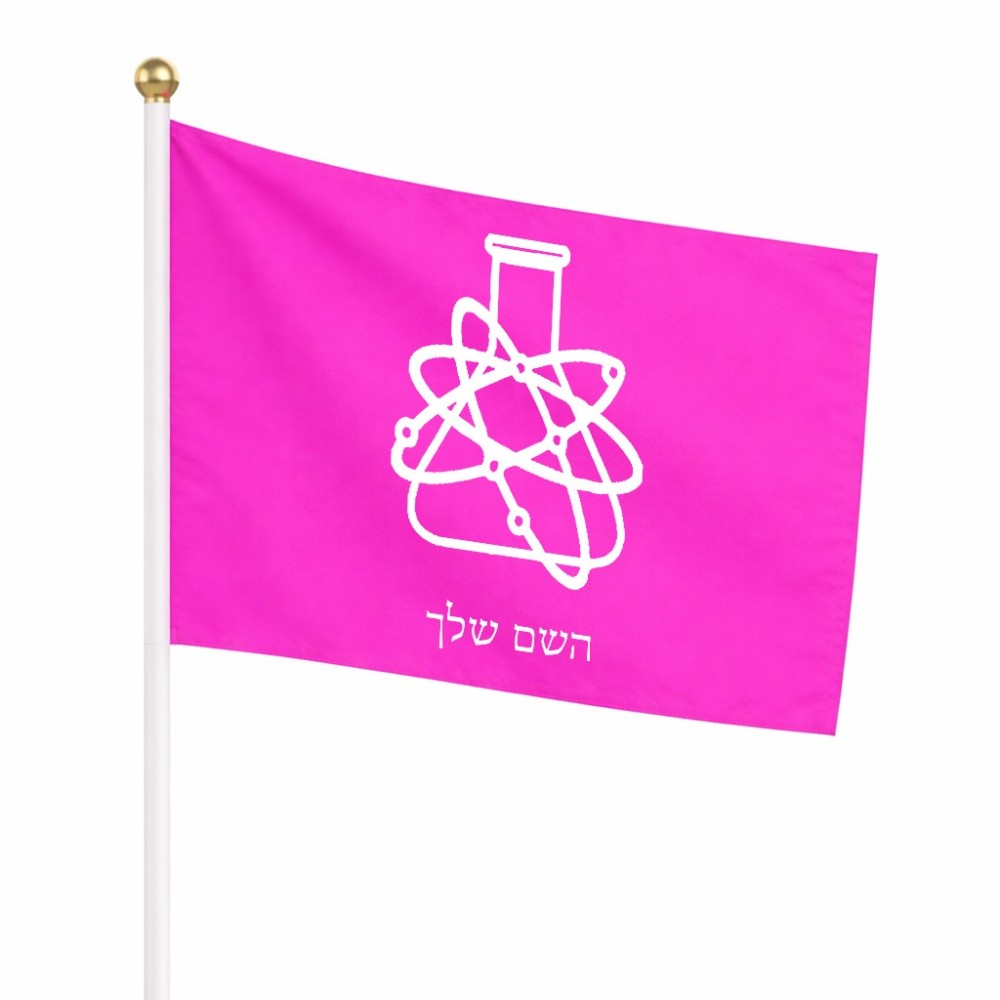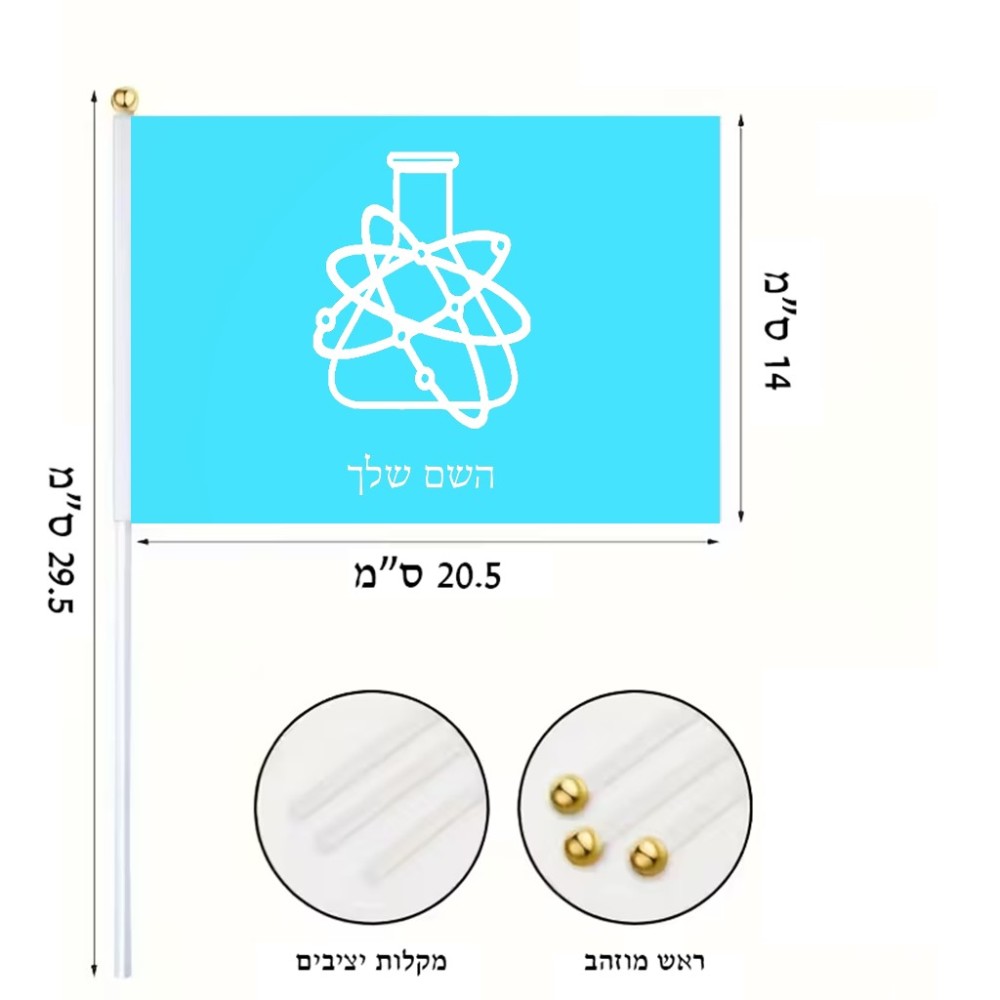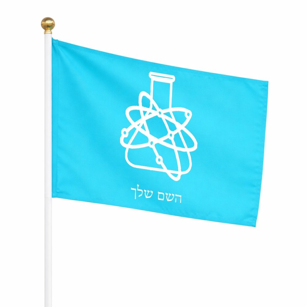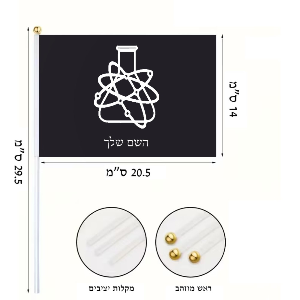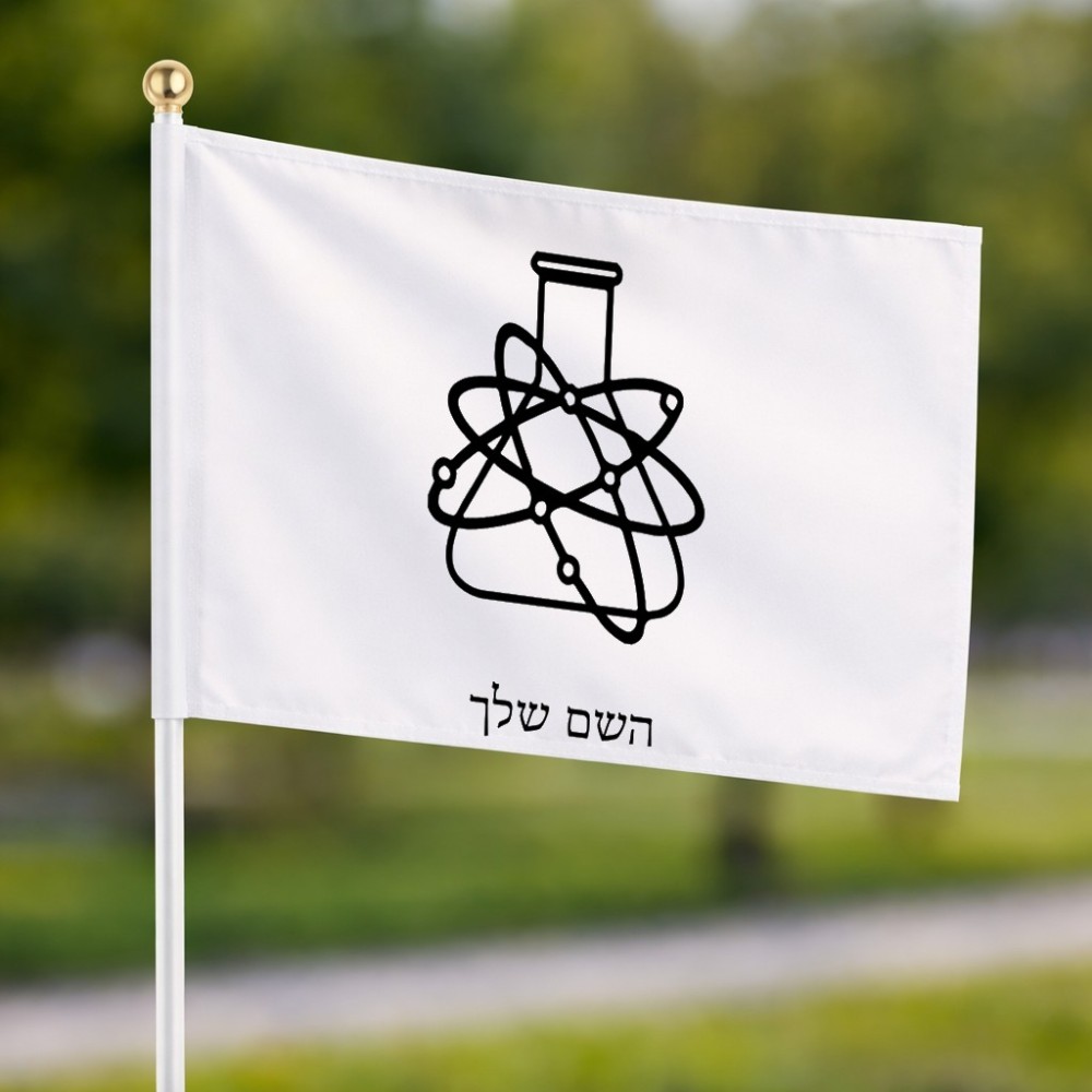 דיגלון בעיצוב אישי עם השם שלך בעיצוב מעבדה גודל הדיגלון 20.5 × 14 ס"מ, ההדפסה מתבצעת בשני צידי הדגל, את השם המבוקש ניתן לציין בהזמנה, אם לא צויין אנחנו ניצור קשר לבירור.
