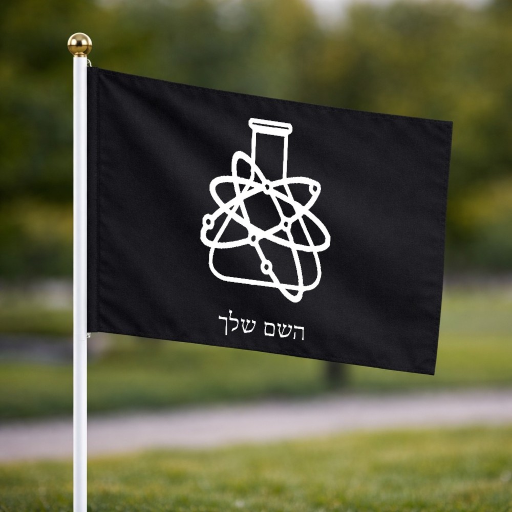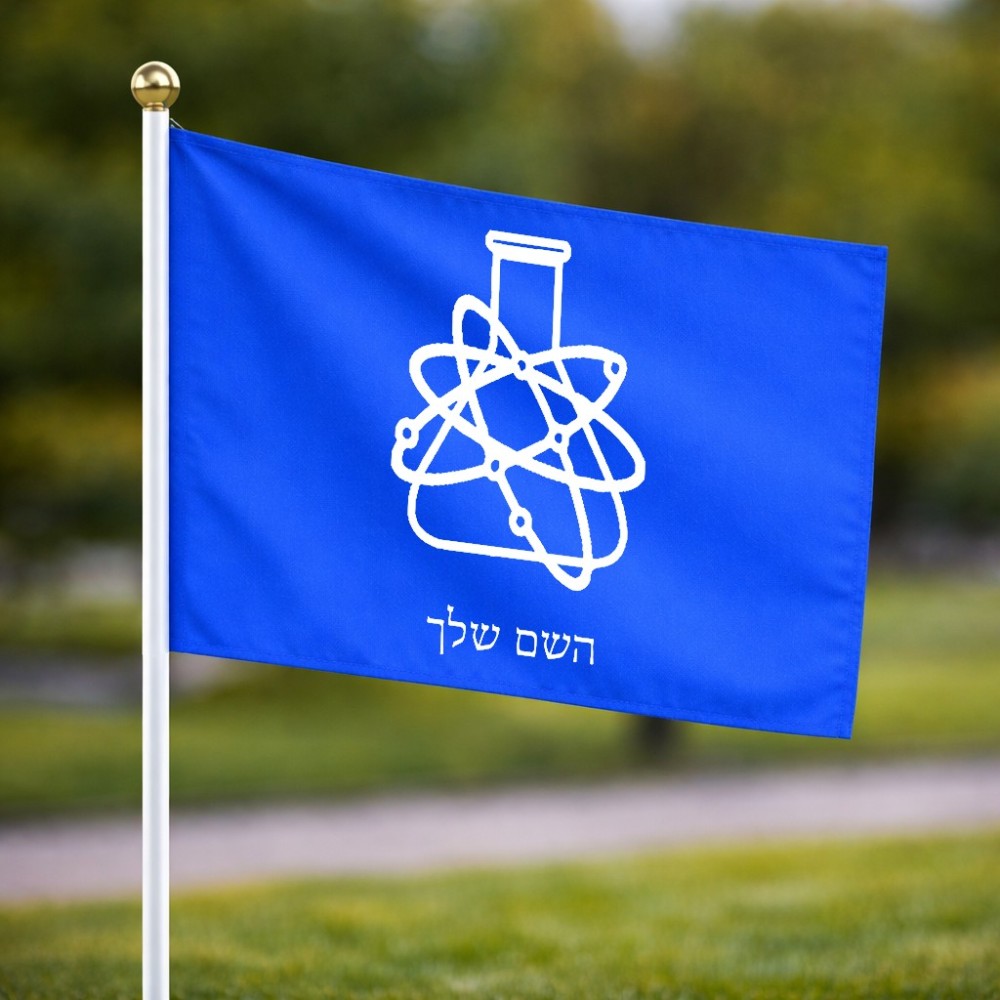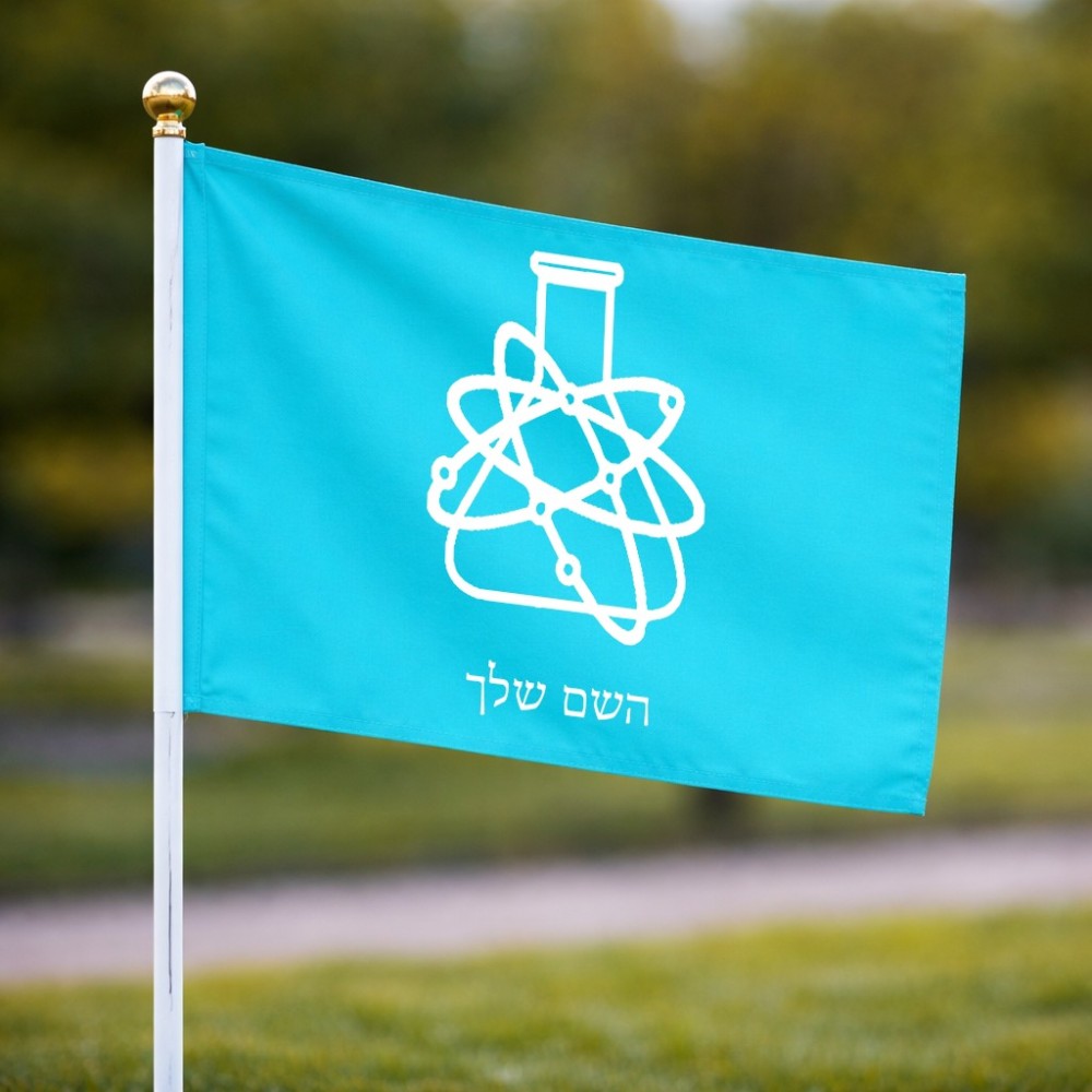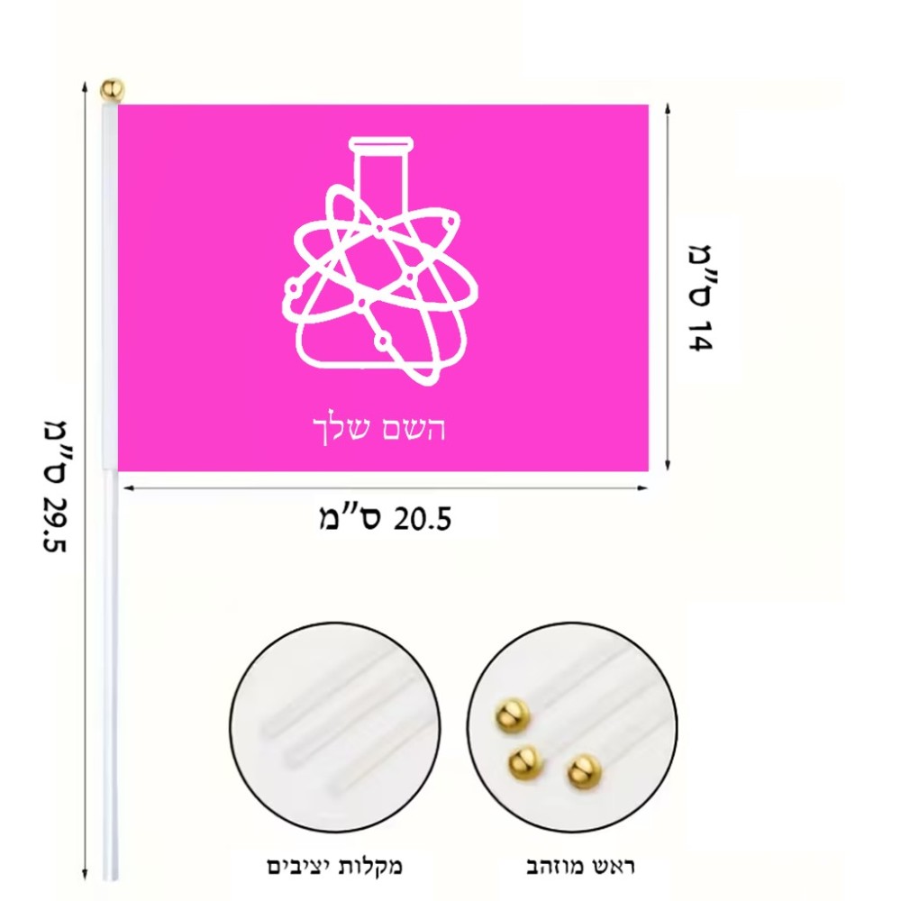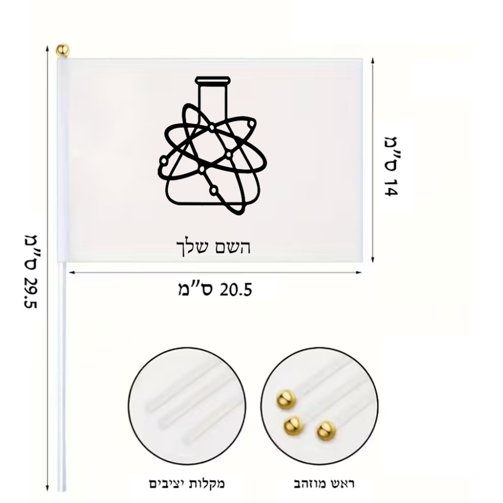 דיגלון בעיצוב אישי עם השם שלך בעיצוב מעבדה גודל הדיגלון 20.5 × 14 ס"מ, ההדפסה מתבצעת בשני צידי הדגל, את השם המבוקש ניתן לציין בהזמנה, אם לא צויין אנחנו ניצור קשר לבירור.