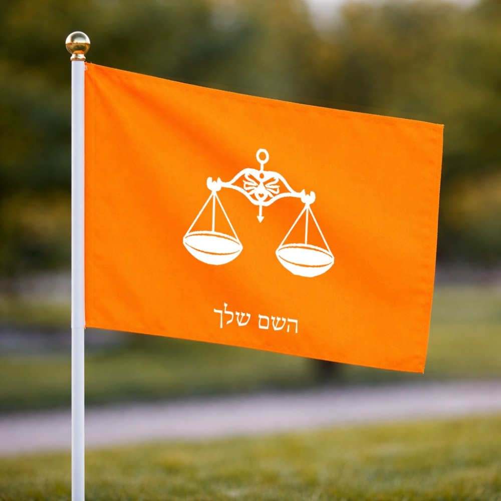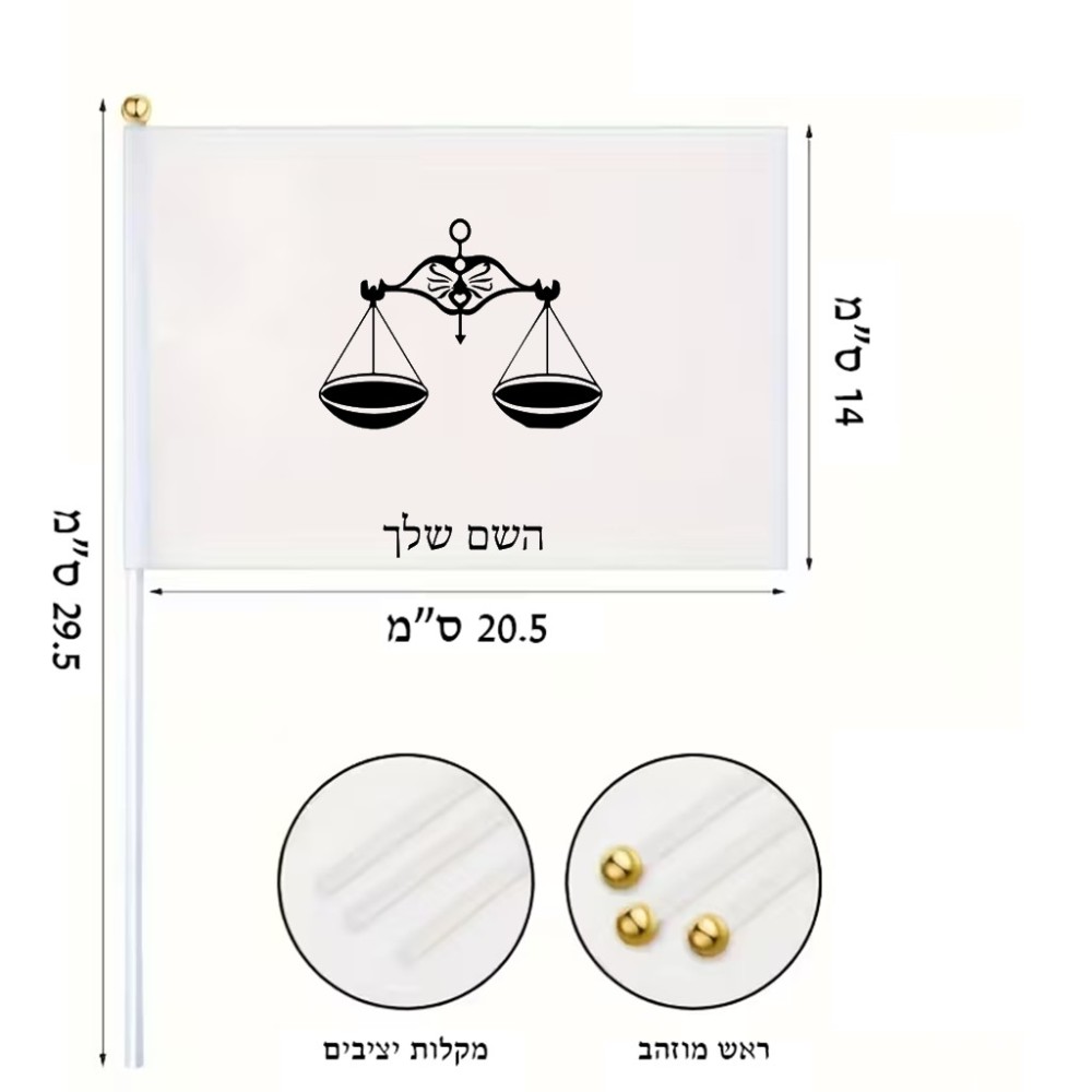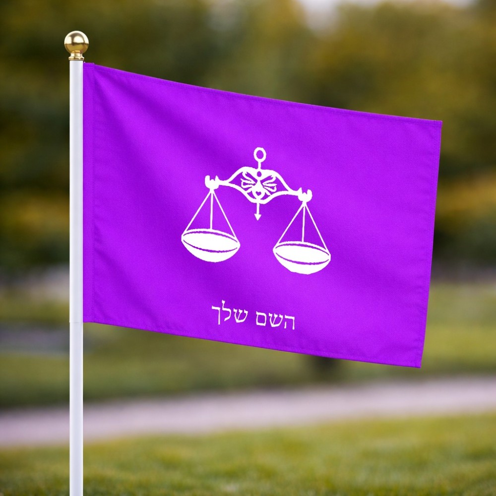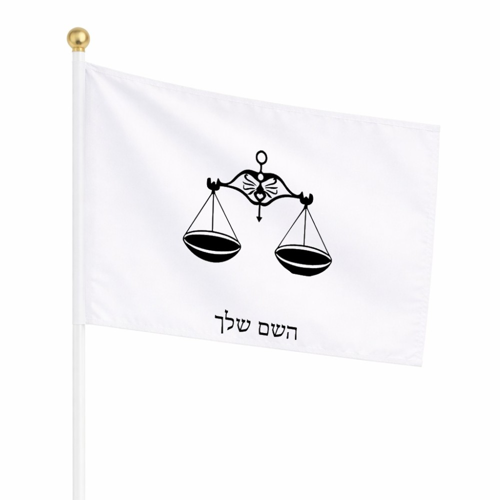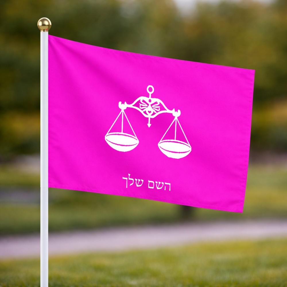 דיגלון בעיצוב אישי עם השם שלך בעיצוב מזלות - מאזניים גודל הדיגלון 20.5 × 14 ס"מ, ההדפסה מתבצעת בשני צידי הדגל, את השם המבוקש ניתן לציין בהזמנה, אם לא צויין אנחנו ניצור קשר לבירור.
