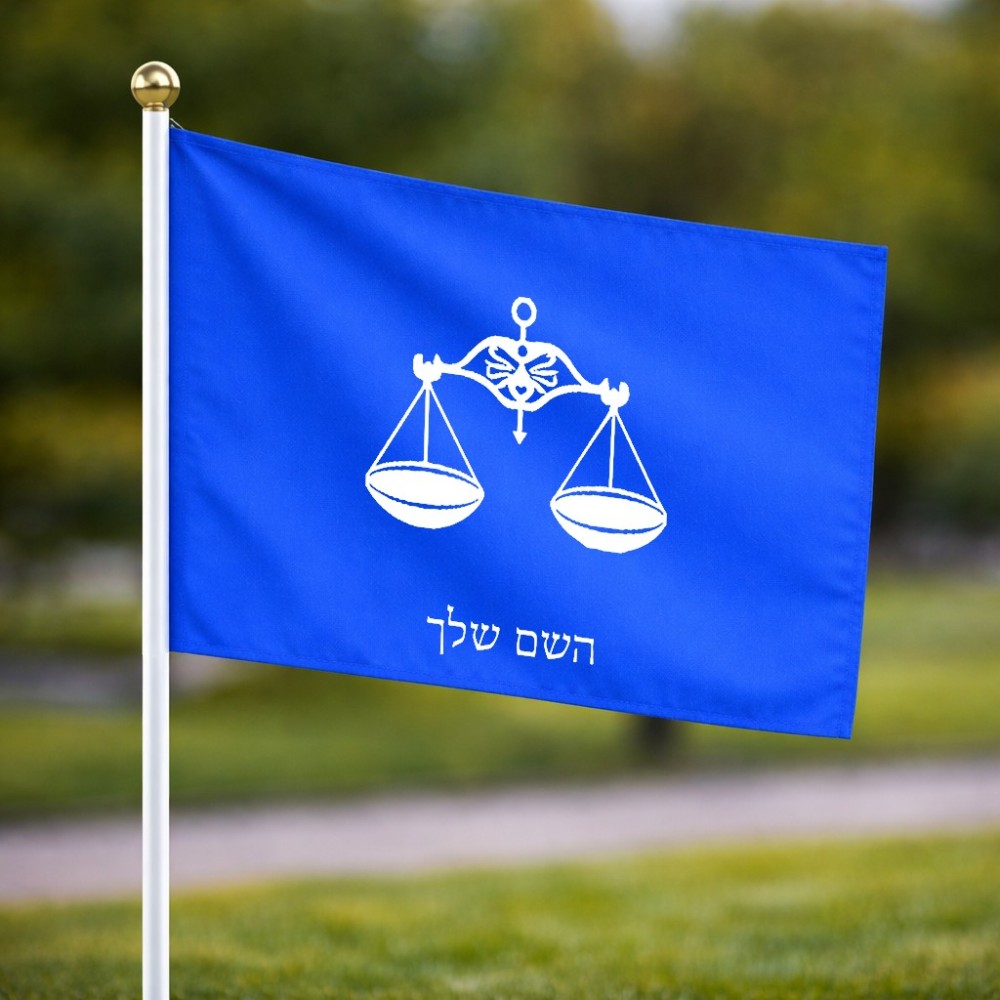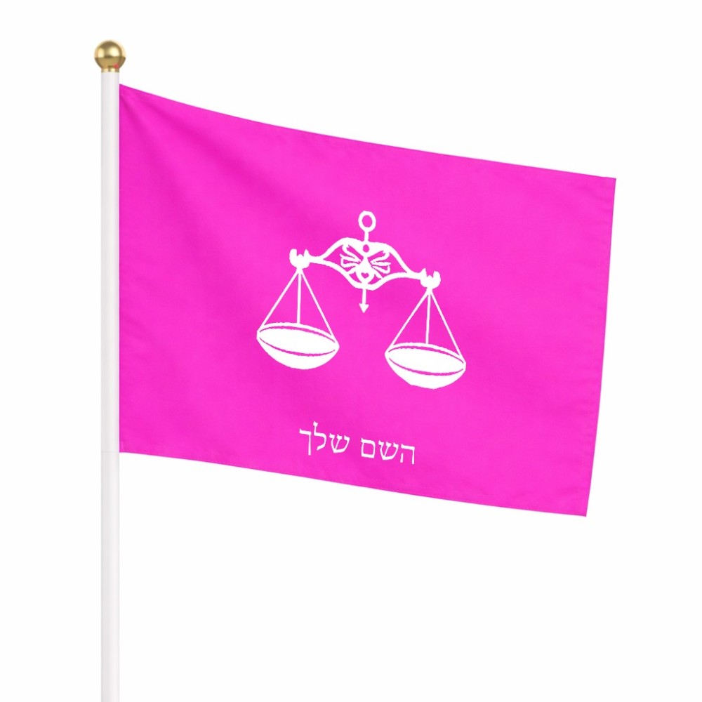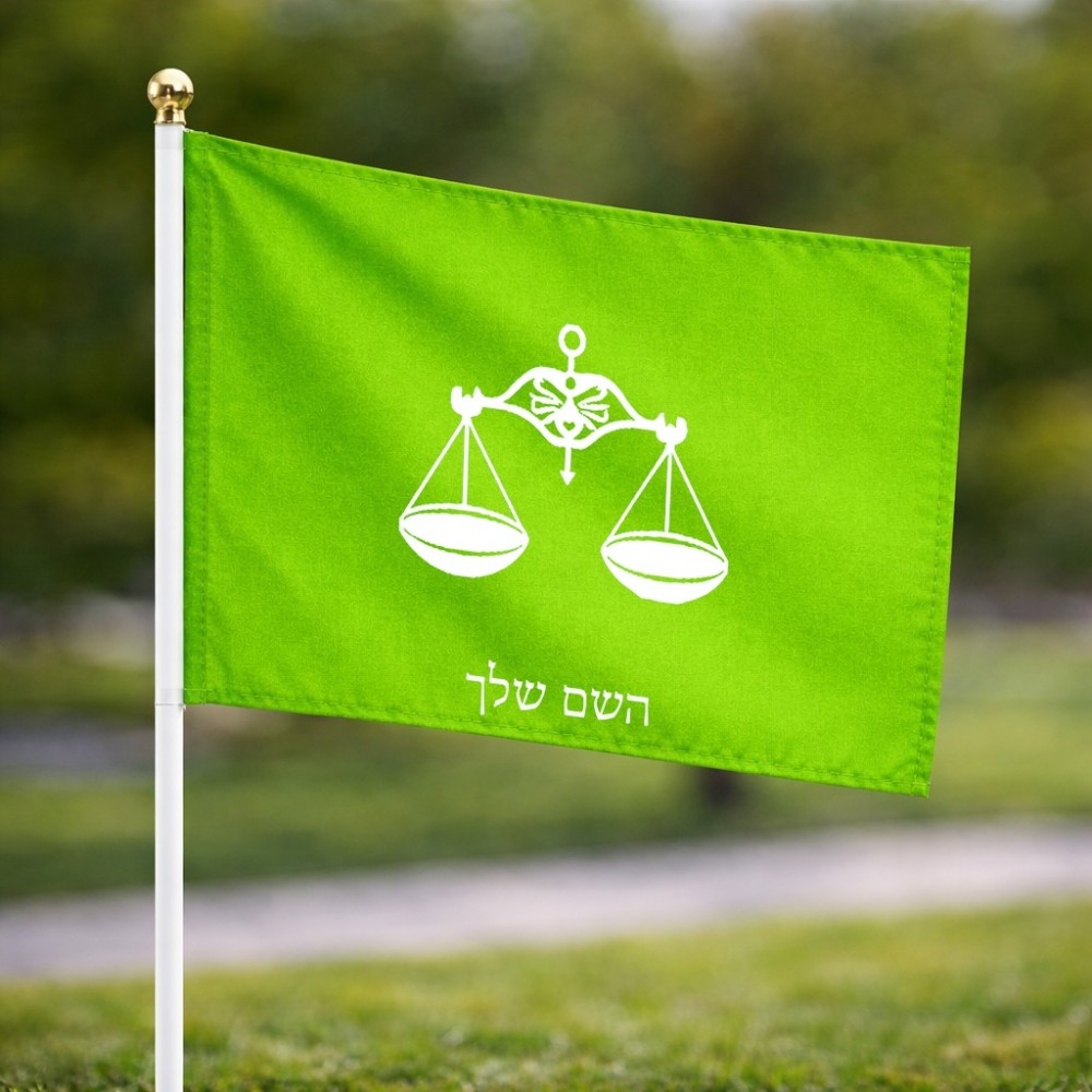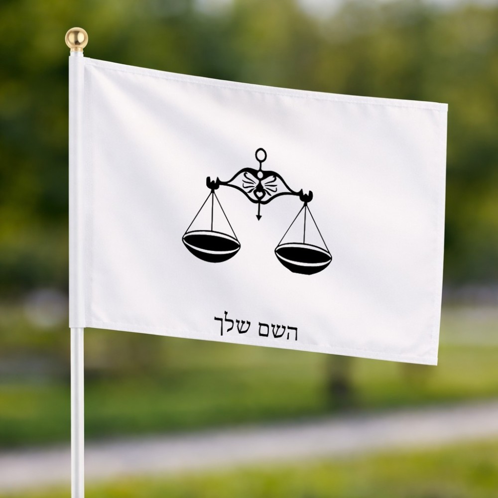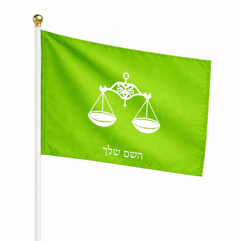 דיגלון בעיצוב אישי עם השם שלך בעיצוב מזלות - מאזניים גודל הדיגלון 20.5 × 14 ס"מ, ההדפסה מתבצעת בשני צידי הדגל, את השם המבוקש ניתן לציין בהזמנה, אם לא צויין אנחנו ניצור קשר לבירור.