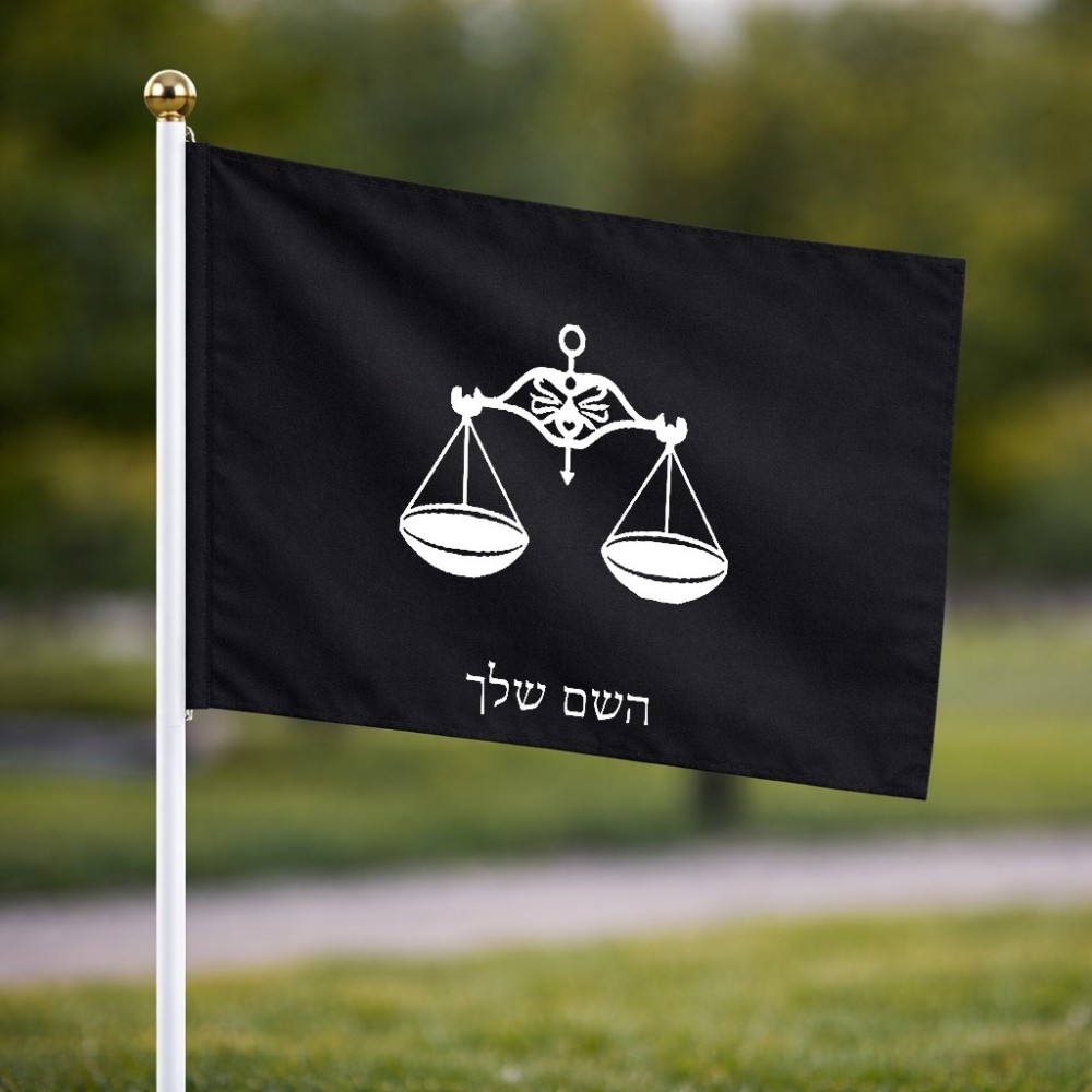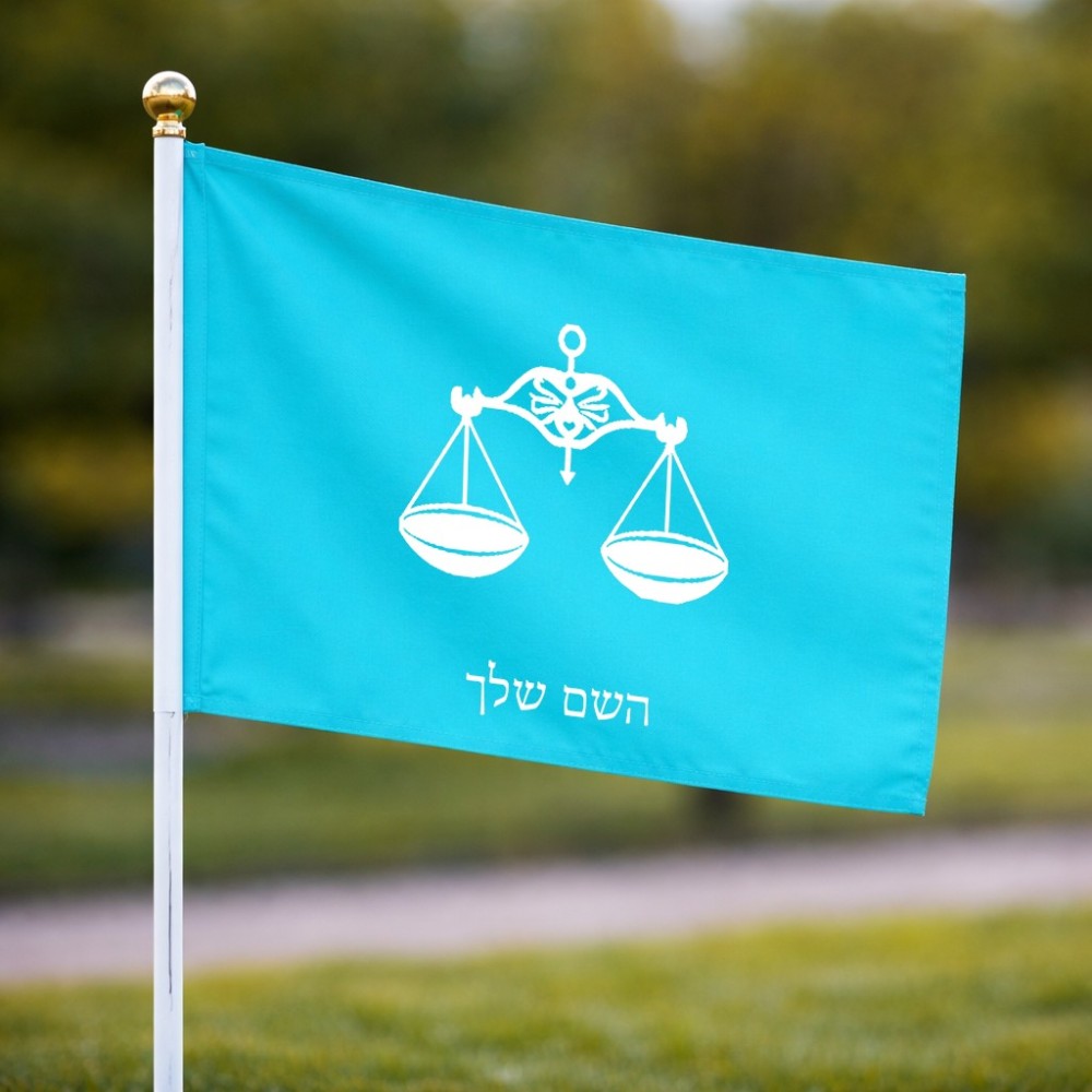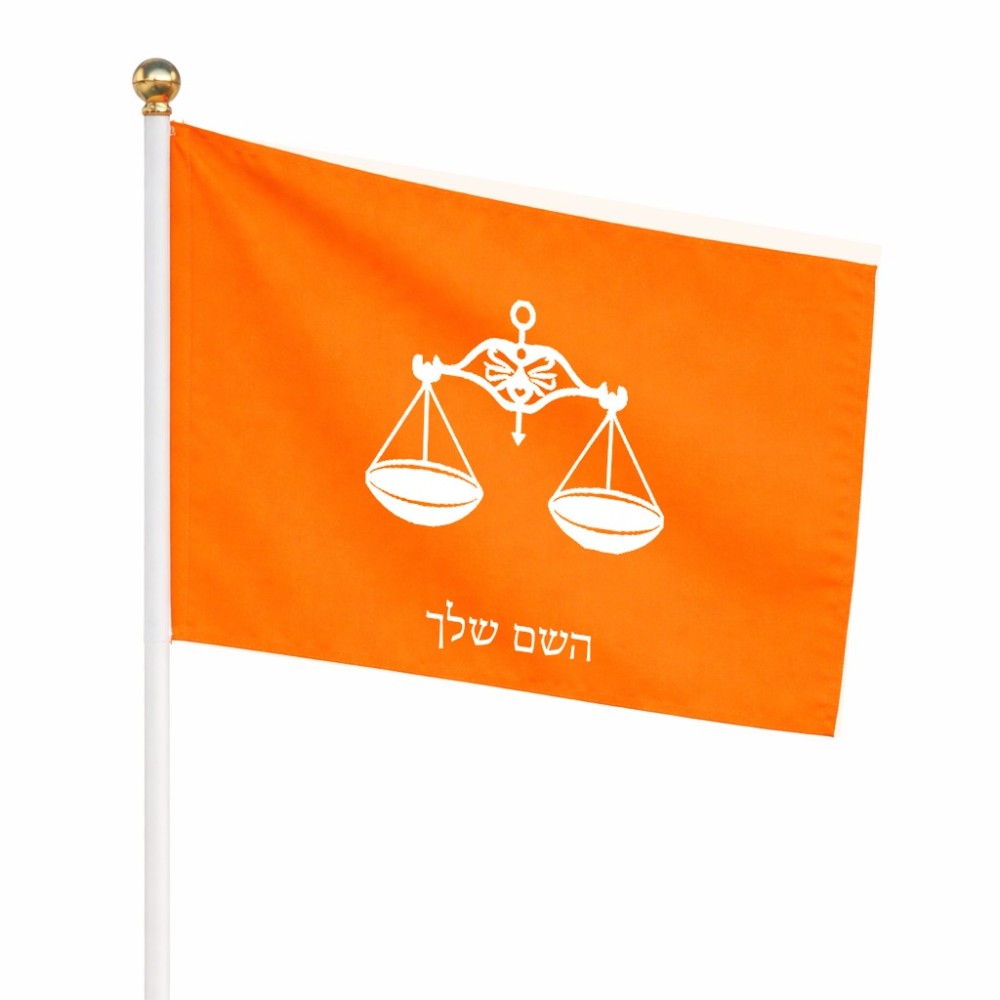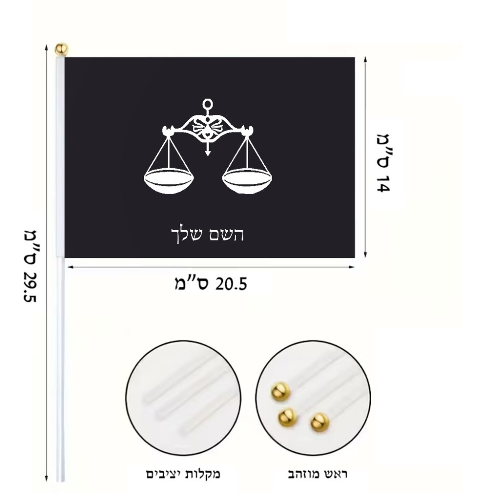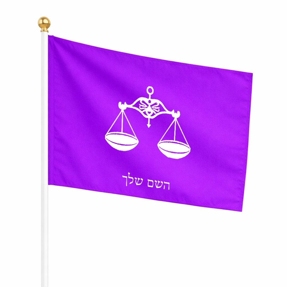 דיגלון בעיצוב אישי עם השם שלך בעיצוב מזלות - מאזניים גודל הדיגלון 20.5 × 14 ס"מ, ההדפסה מתבצעת בשני צידי הדגל, את השם המבוקש ניתן לציין בהזמנה, אם לא צויין אנחנו ניצור קשר לבירור.