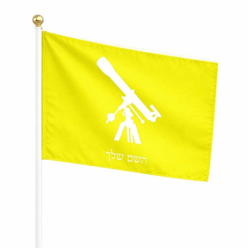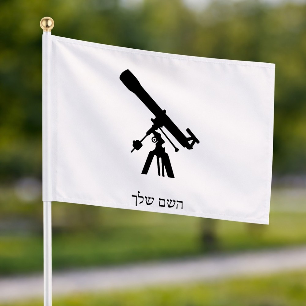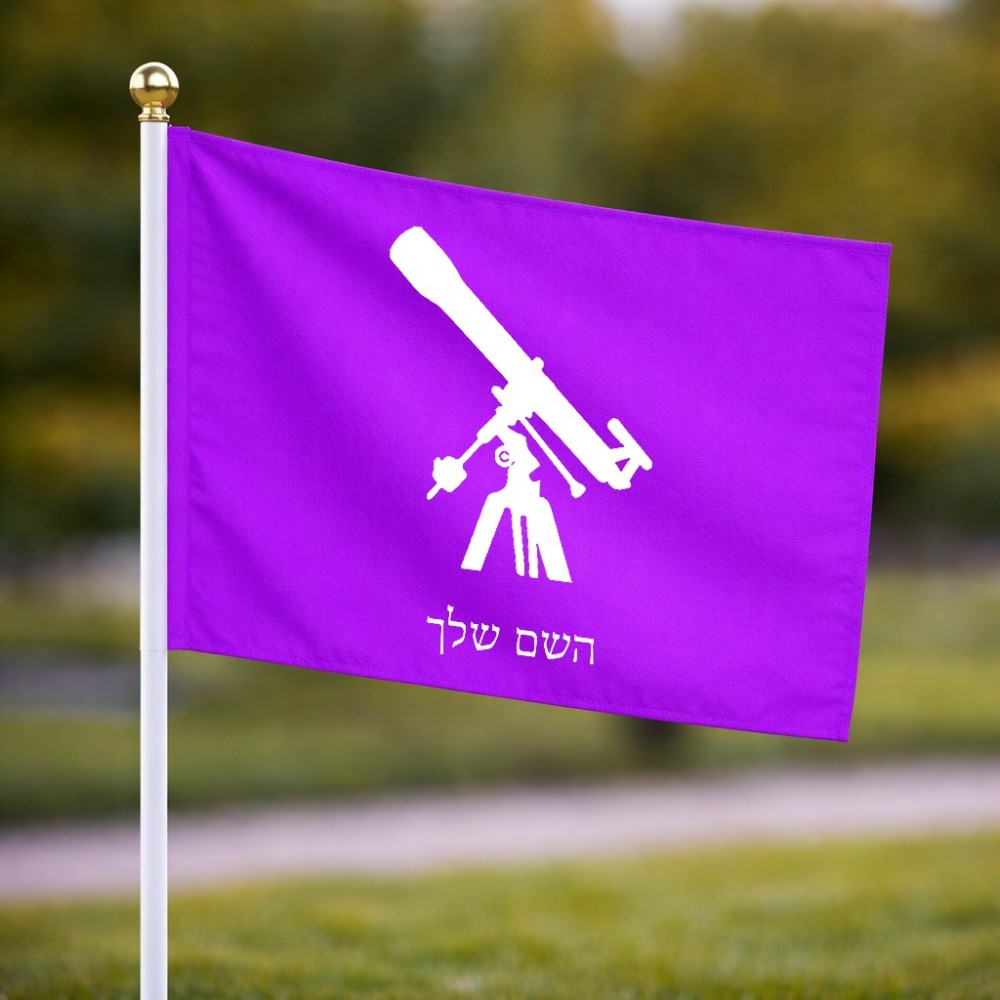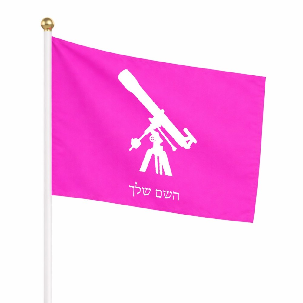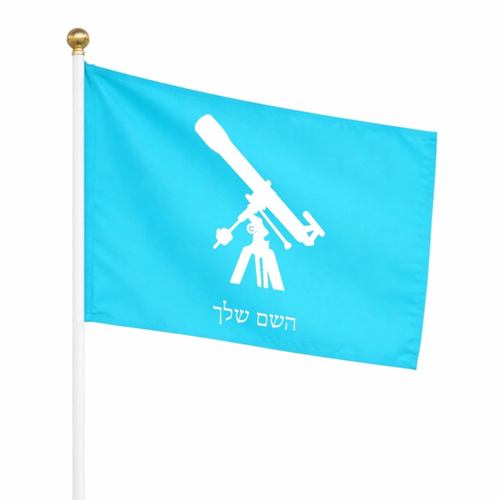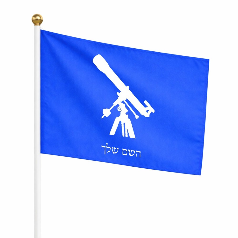 דיגלון בעיצוב אישי עם השם שלך בעיצוב טלסקופ גודל הדיגלון 20.5 × 14 ס"מ, ההדפסה מתבצעת בשני צידי הדגל, את השם המבוקש ניתן לציין בהזמנה, אם לא צויין אנחנו ניצור קשר לבירור.