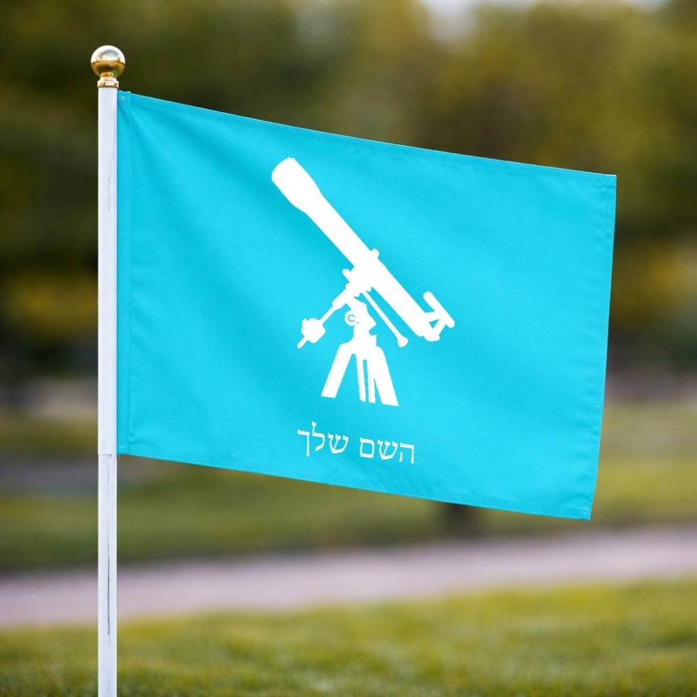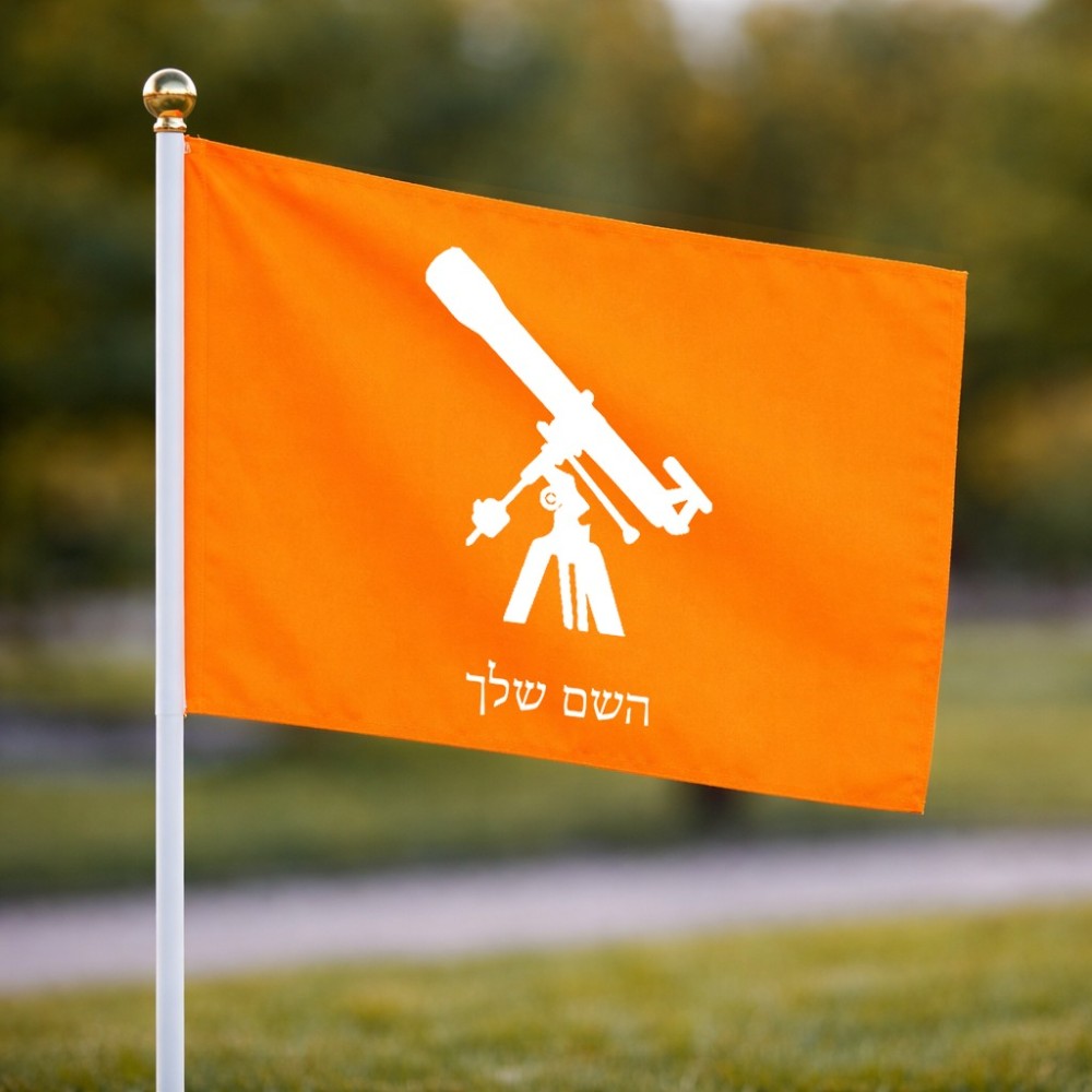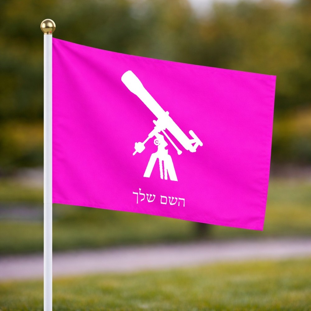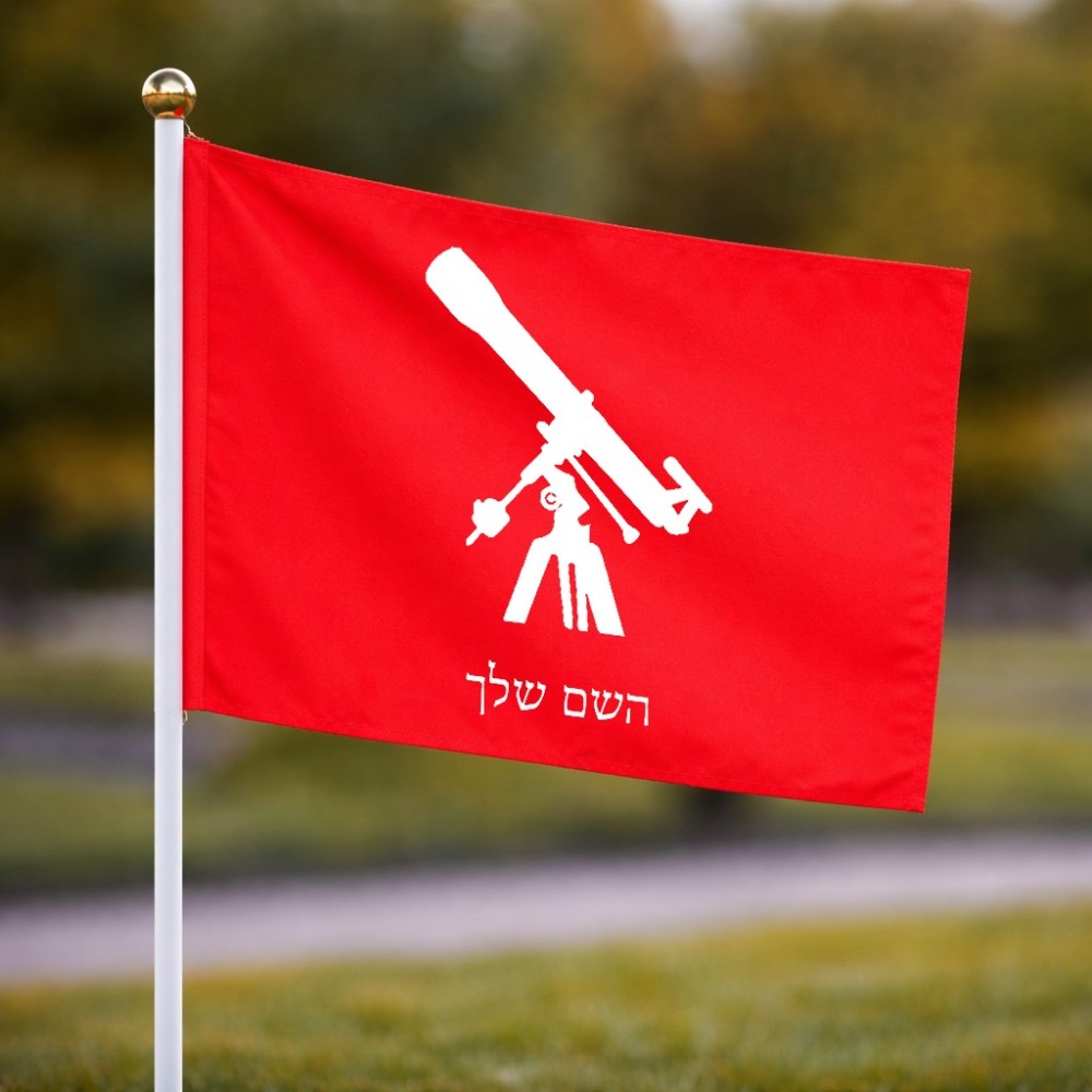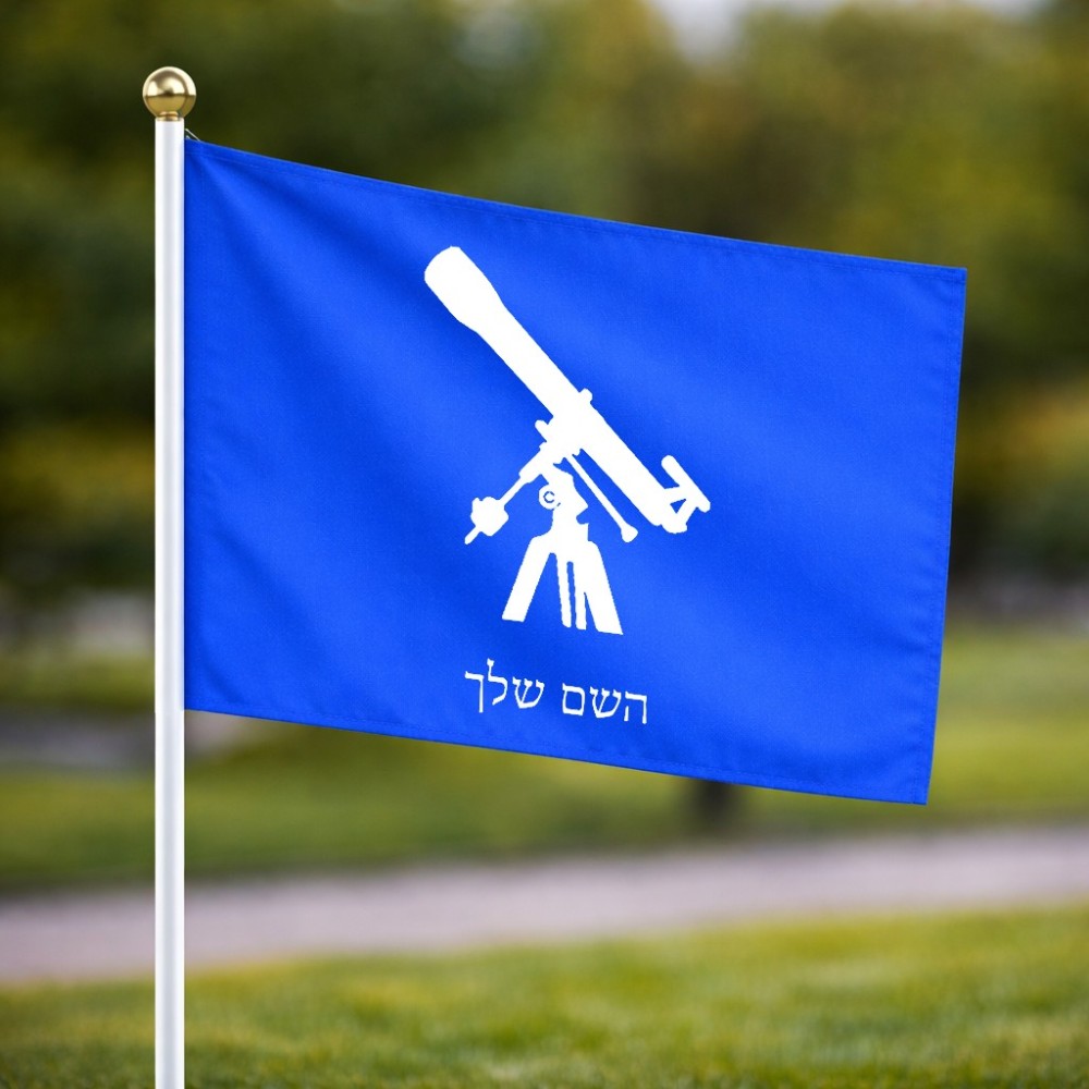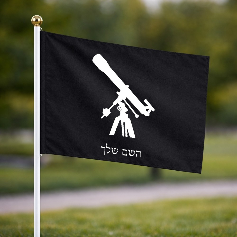 דיגלון בעיצוב אישי עם השם שלך בעיצוב טלסקופ גודל הדיגלון 20.5 × 14 ס"מ, ההדפסה מתבצעת בשני צידי הדגל, את השם המבוקש ניתן לציין בהזמנה, אם לא צויין אנחנו ניצור קשר לבירור.