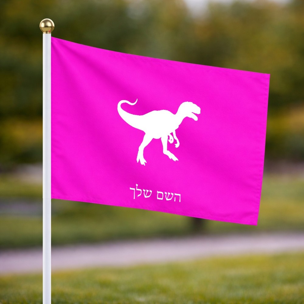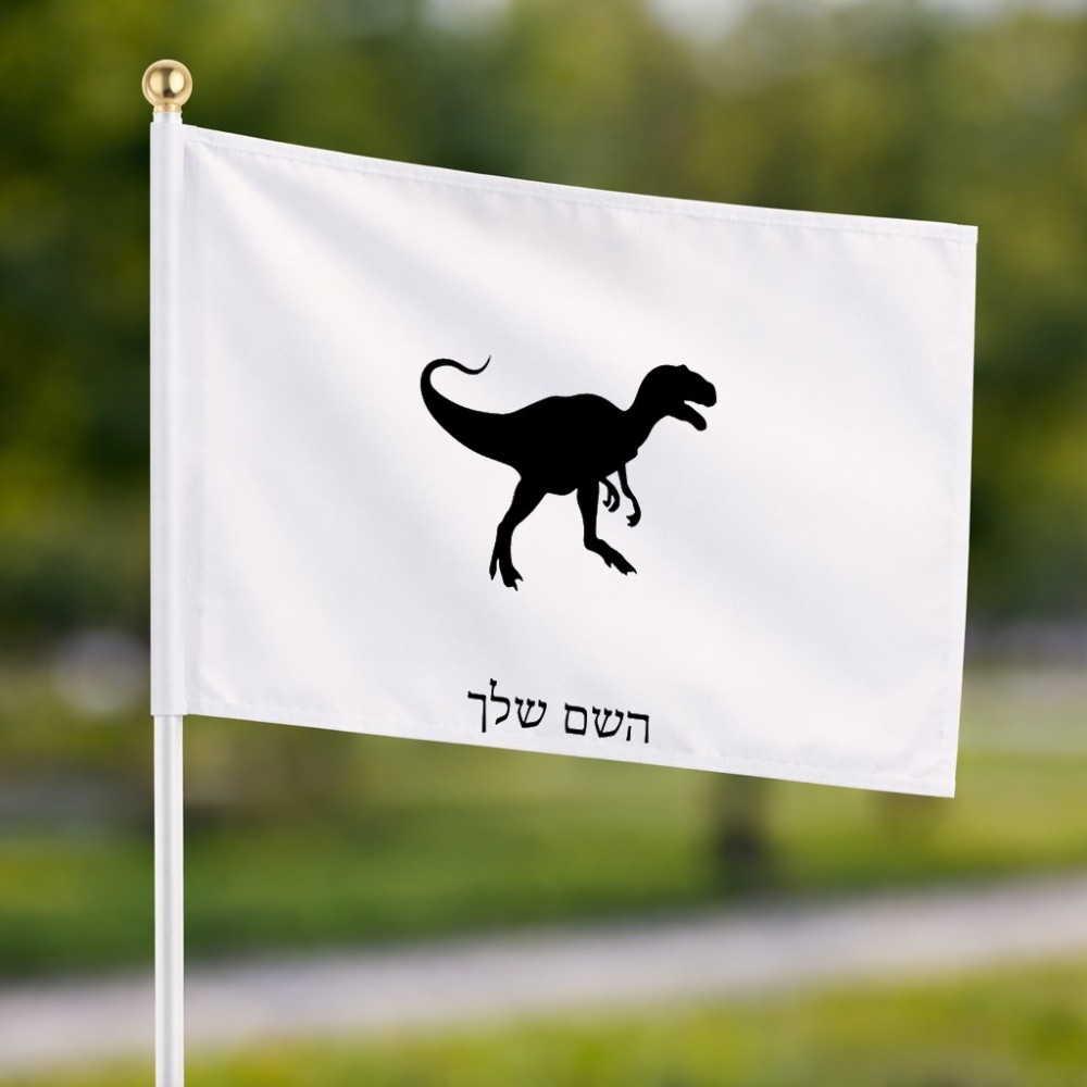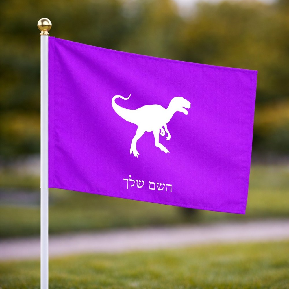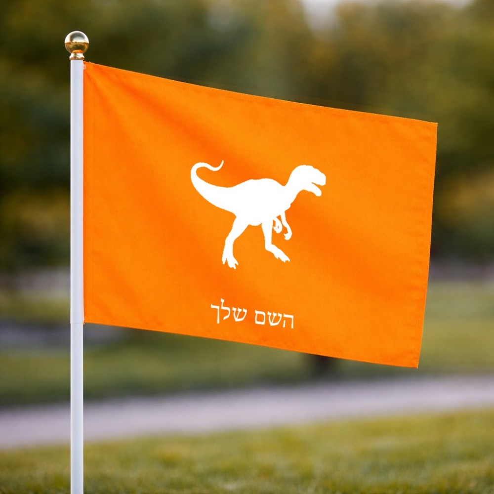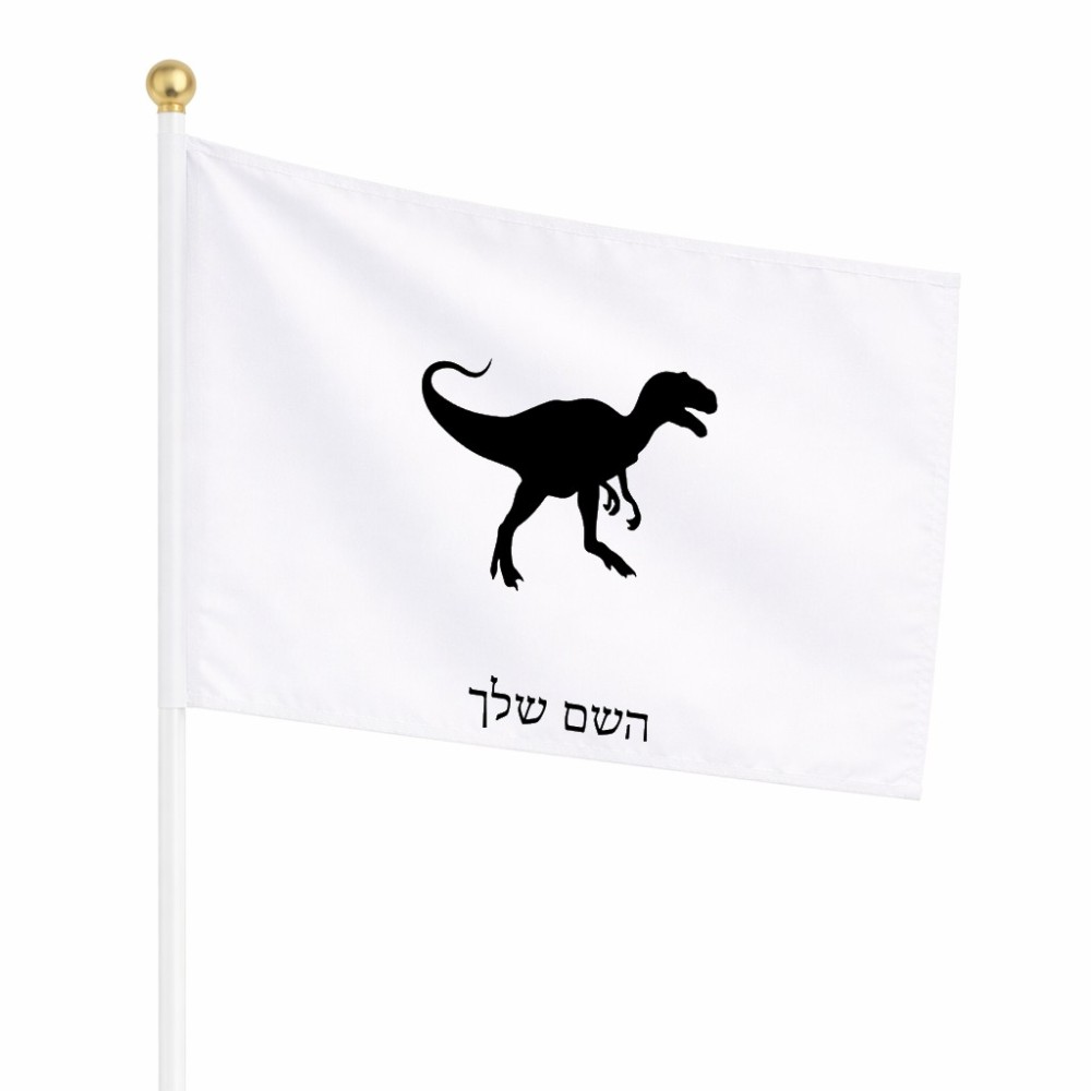 דיגלון בעיצוב אישי עם השם שלך בעיצוב דינוזאור גודל הדיגלון 20.5 × 14 ס"מ, ההדפסה מתבצעת בשני צידי הדגל, את השם המבוקש ניתן לציין בהזמנה, אם לא צויין אנחנו ניצור קשר לבירור.