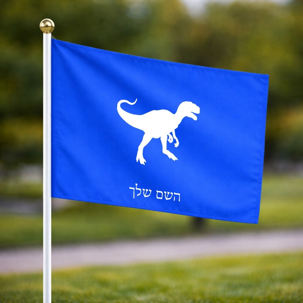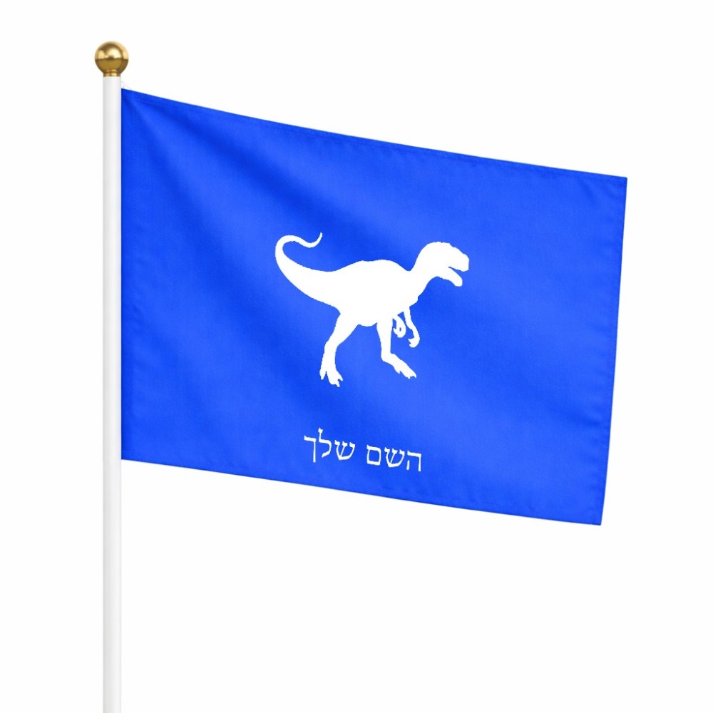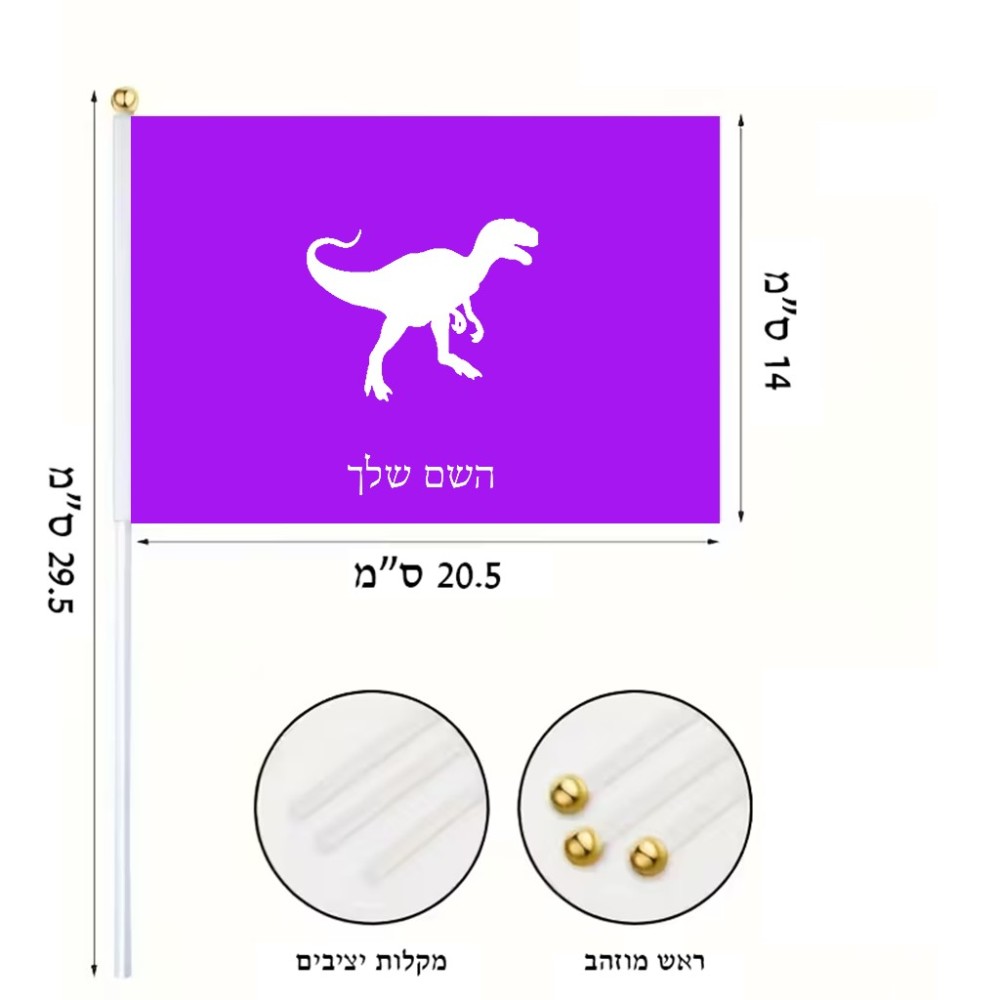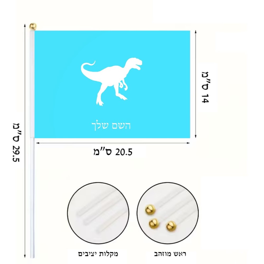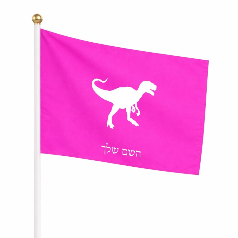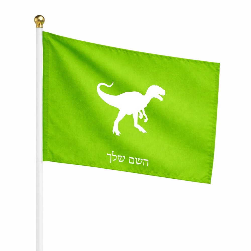 דיגלון בעיצוב אישי עם השם שלך בעיצוב דינוזאור גודל הדיגלון 20.5 × 14 ס"מ, ההדפסה מתבצעת בשני צידי הדגל, את השם המבוקש ניתן לציין בהזמנה, אם לא צויין אנחנו ניצור קשר לבירור.
