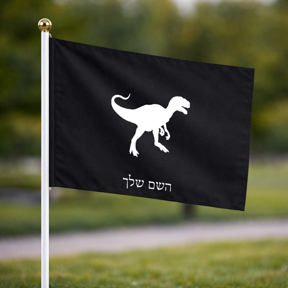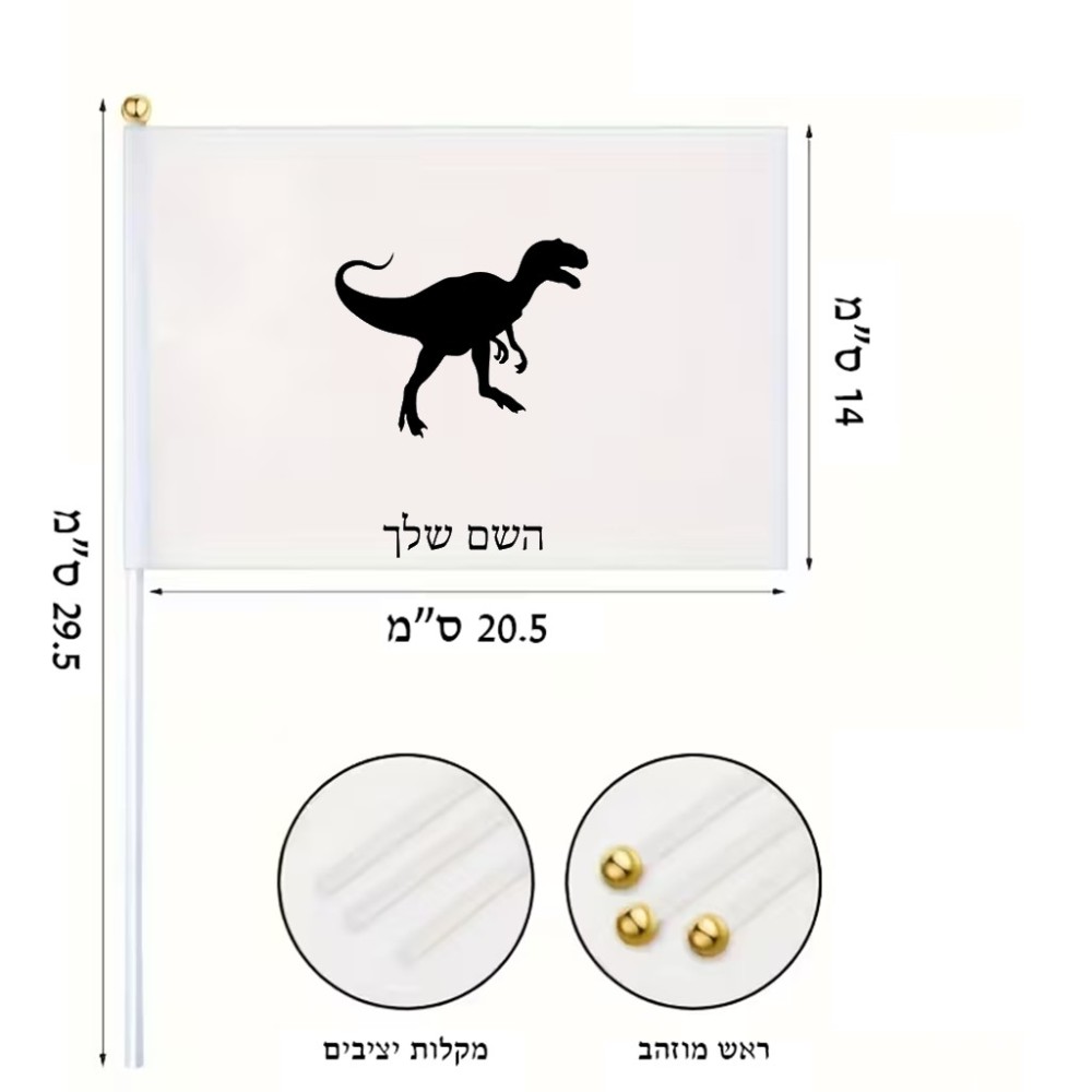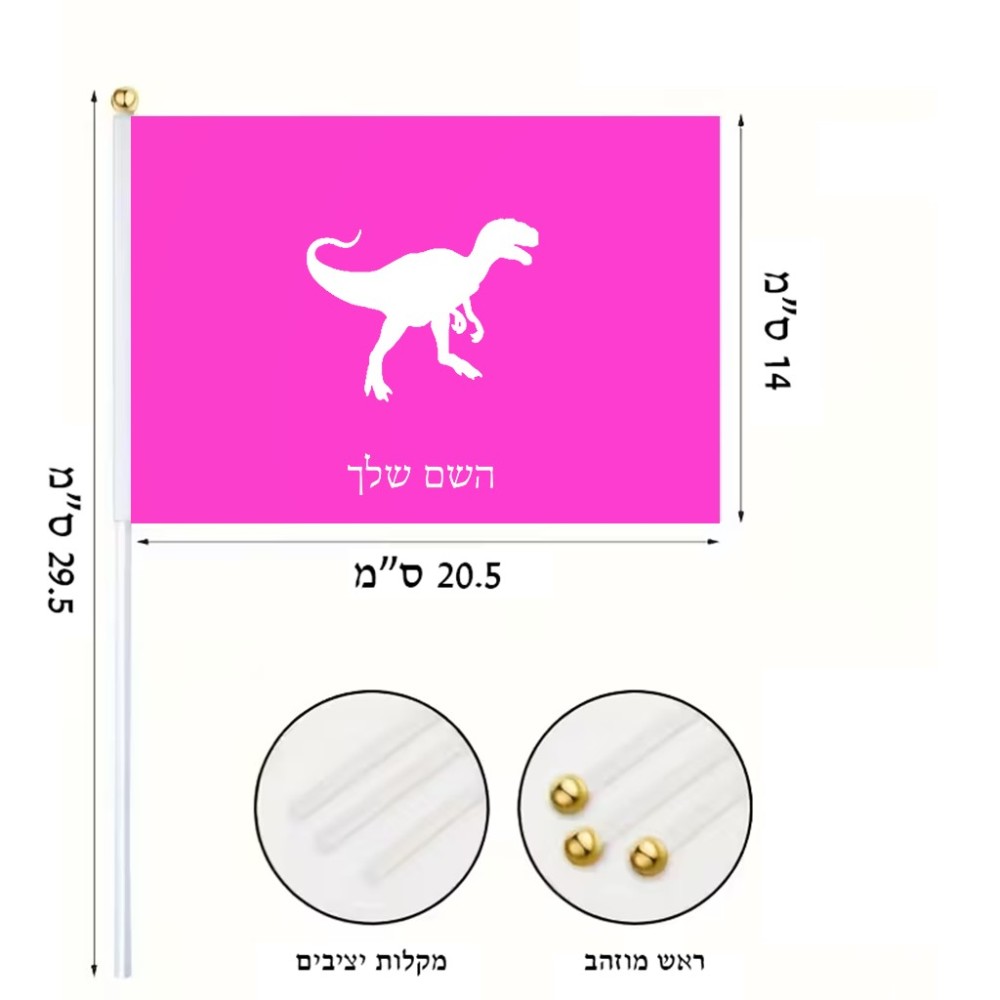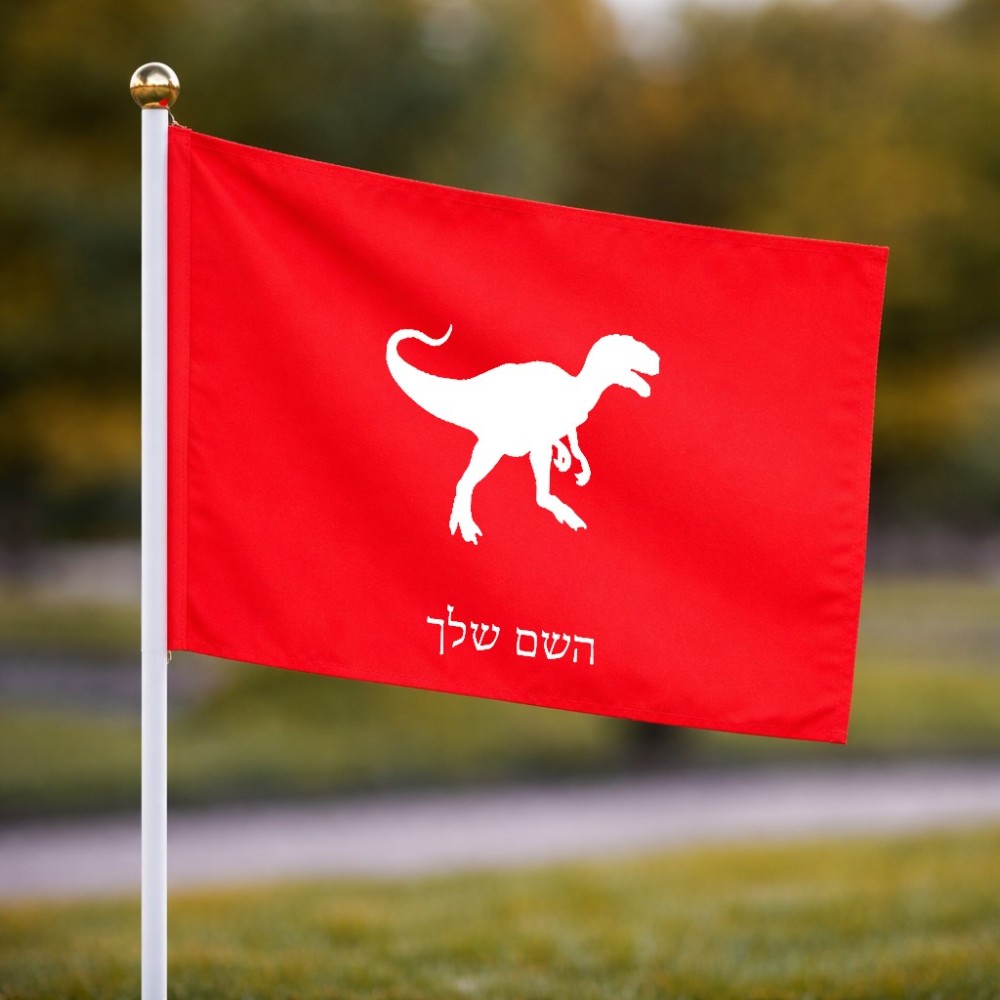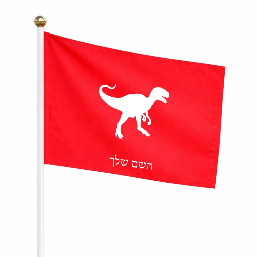 דיגלון בעיצוב אישי עם השם שלך בעיצוב דינוזאור גודל הדיגלון 20.5 × 14 ס"מ, ההדפסה מתבצעת בשני צידי הדגל, את השם המבוקש ניתן לציין בהזמנה, אם לא צויין אנחנו ניצור קשר לבירור.