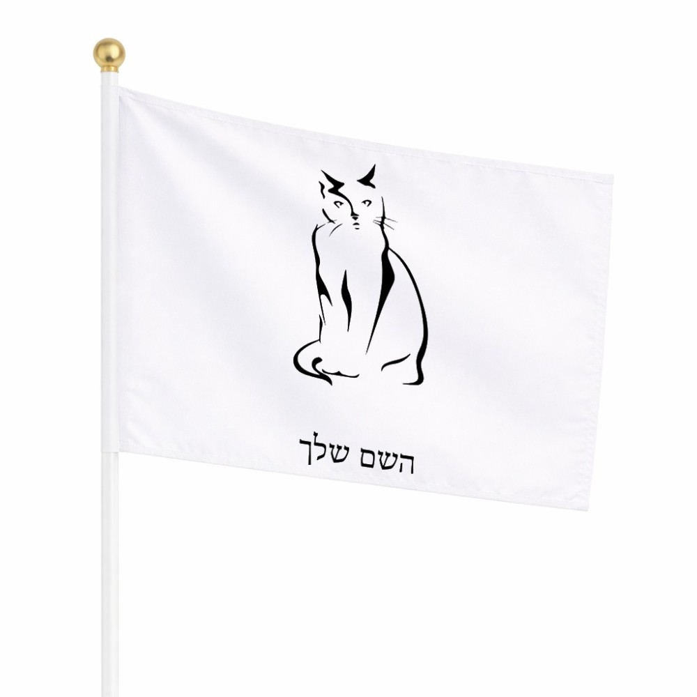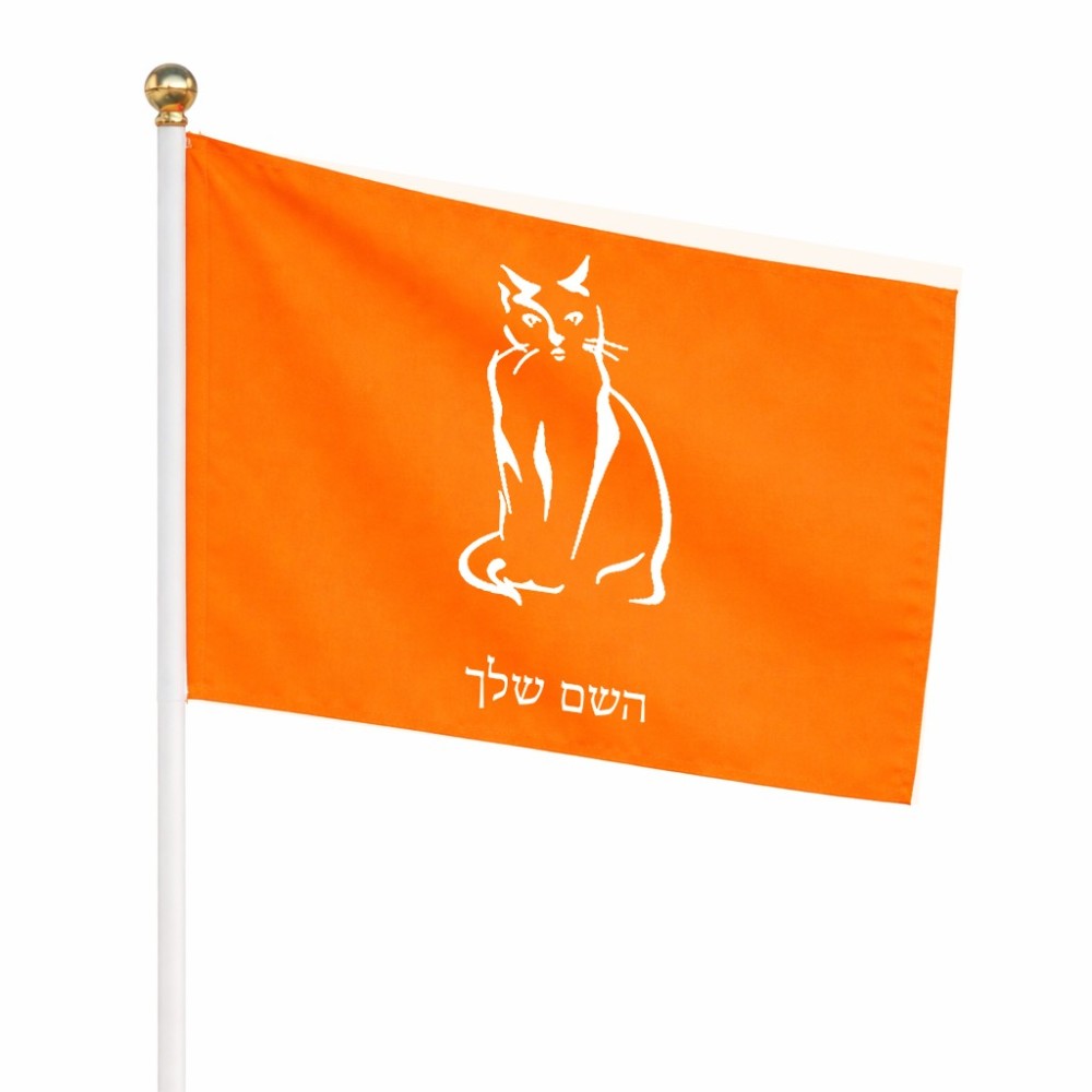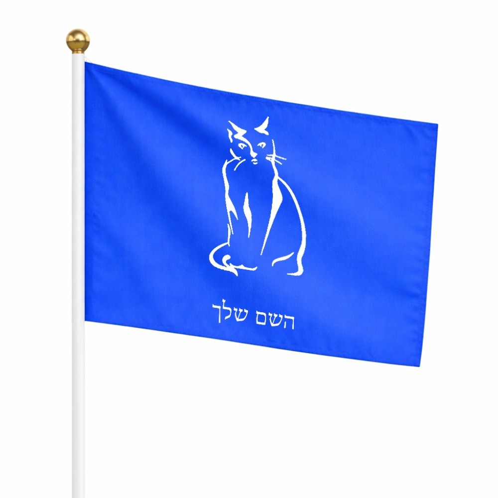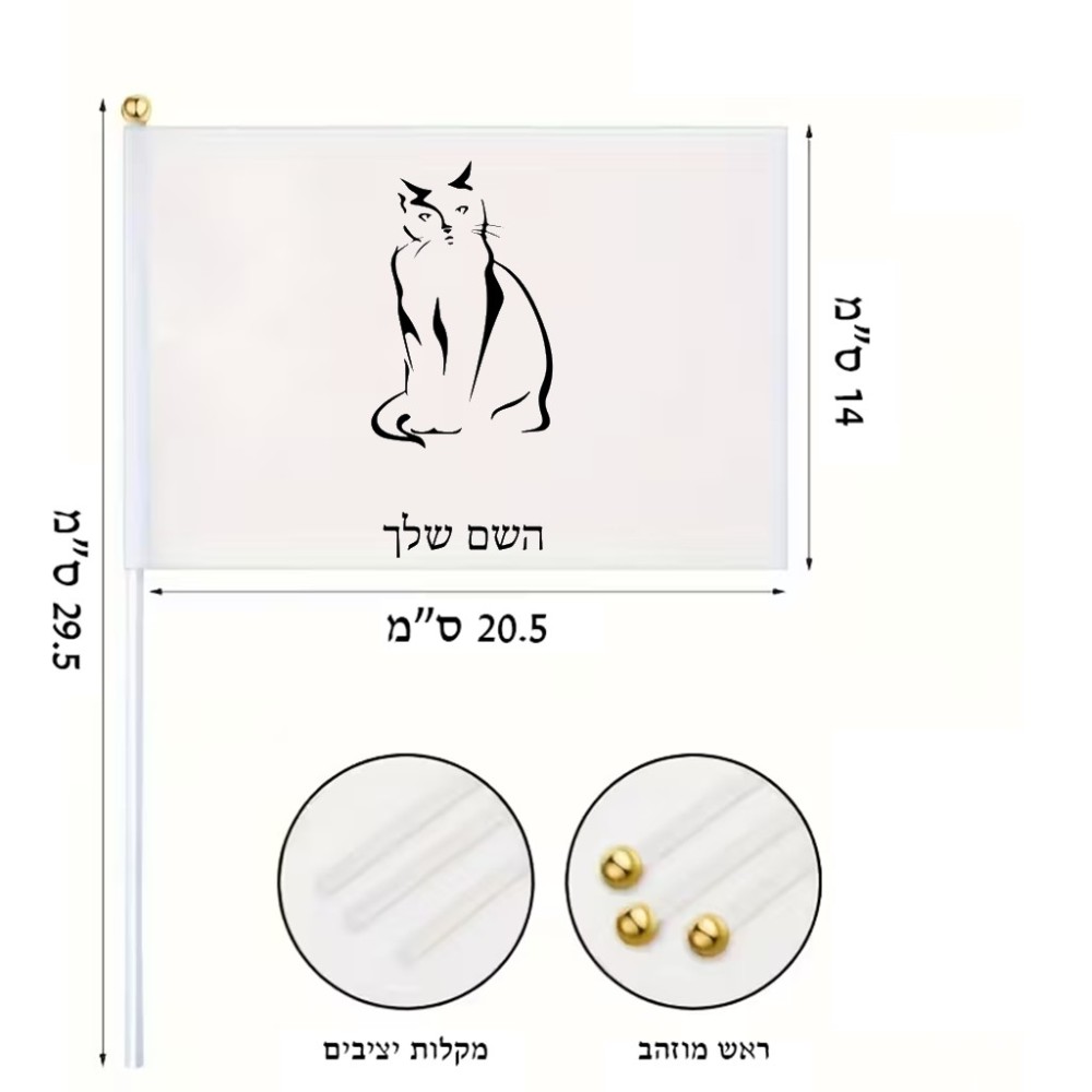 דיגלון בעיצוב אישי עם השם שלך בעיצוב חתול גודל הדיגלון 20.5 × 14 ס"מ, ההדפסה מתבצעת בשני צידי הדגל, את השם המבוקש ניתן לציין בהזמנה, אם לא צויין אנחנו ניצור קשר לבירור.