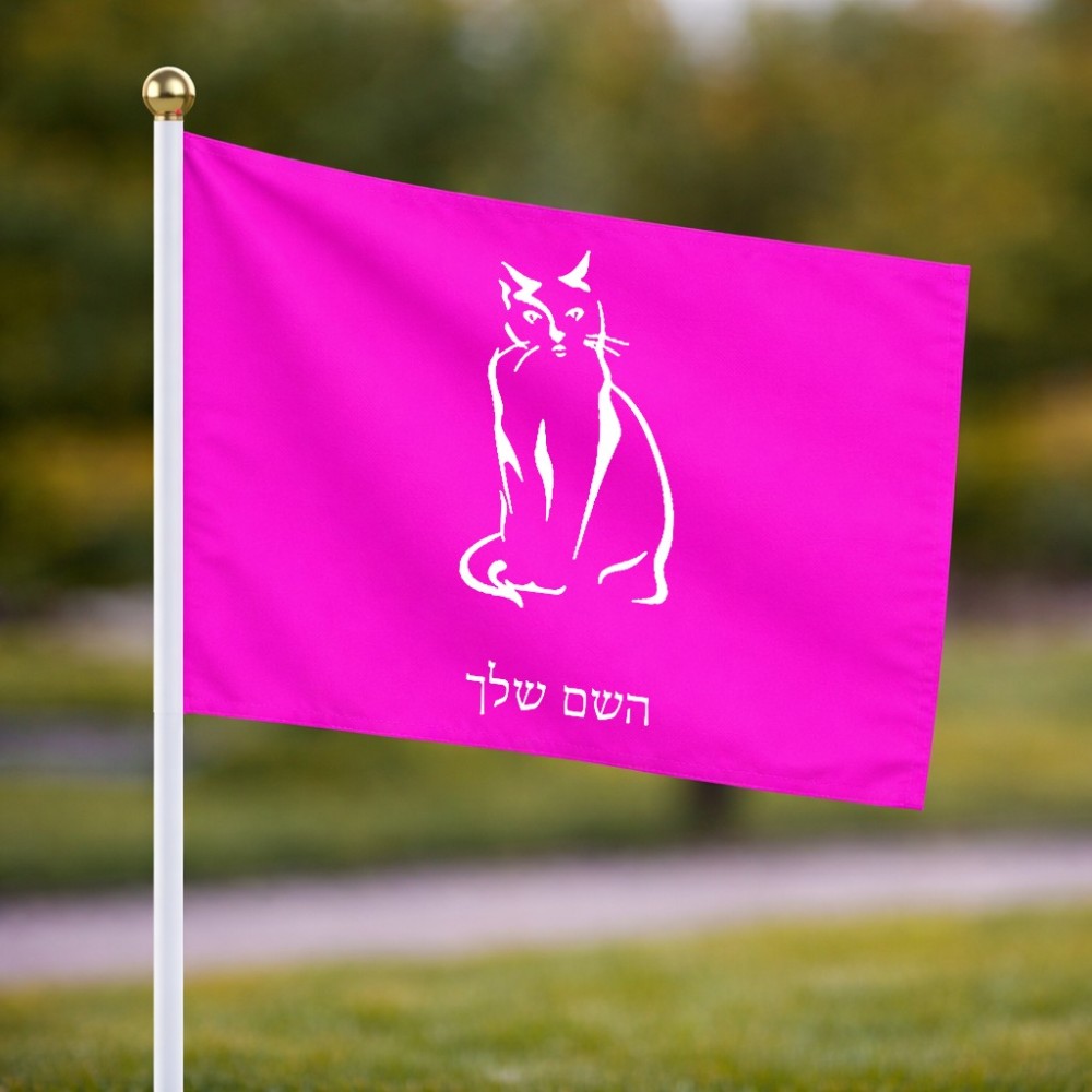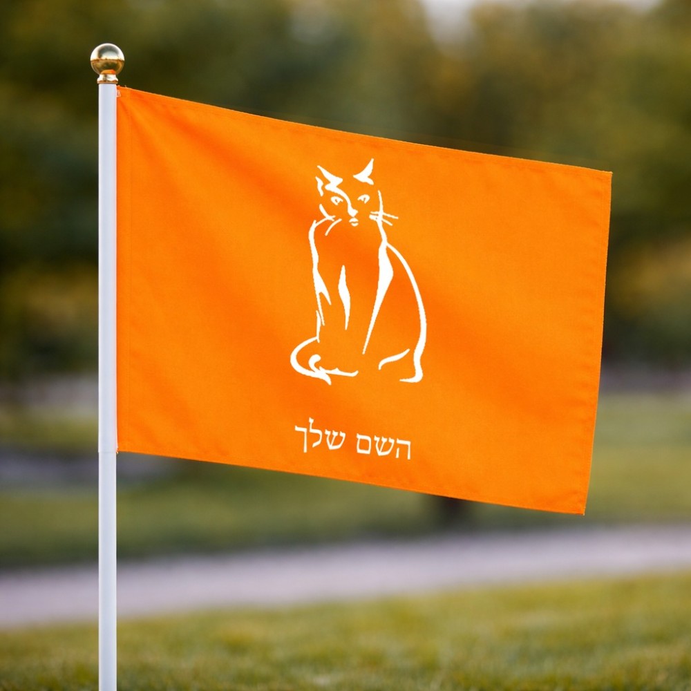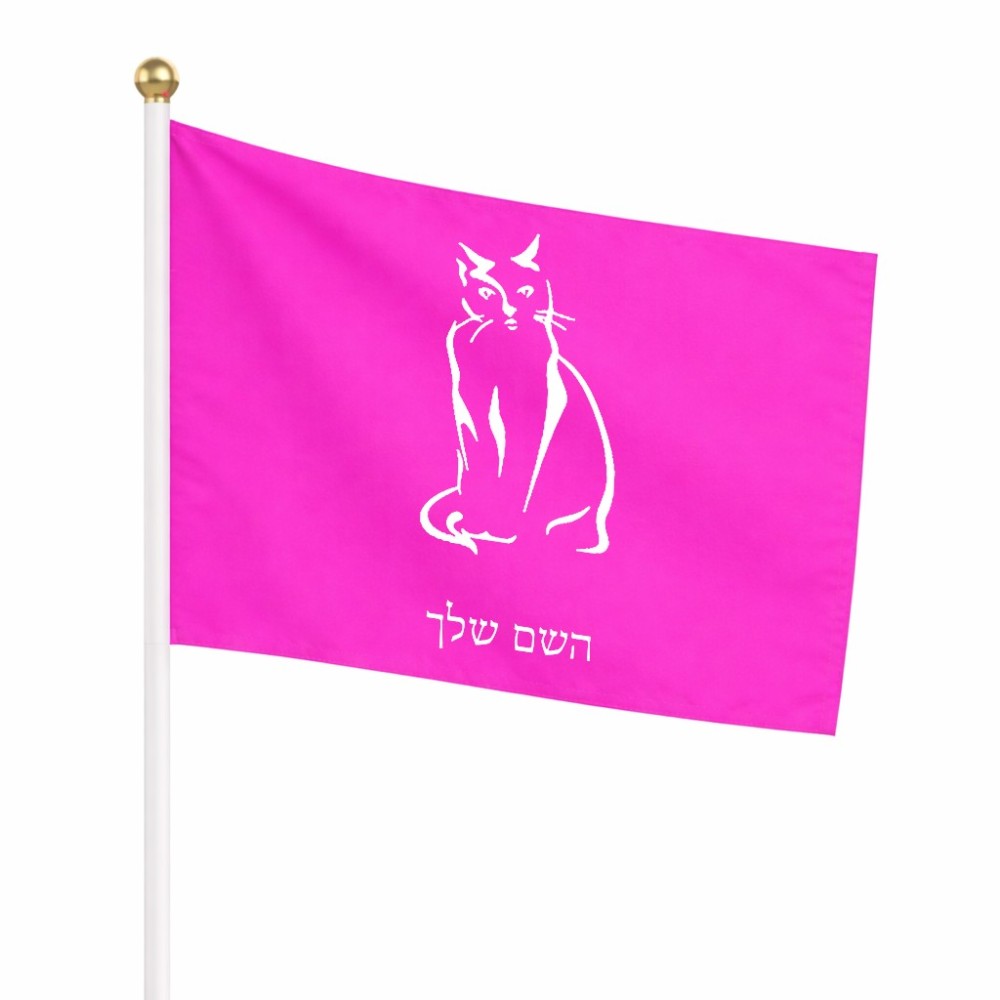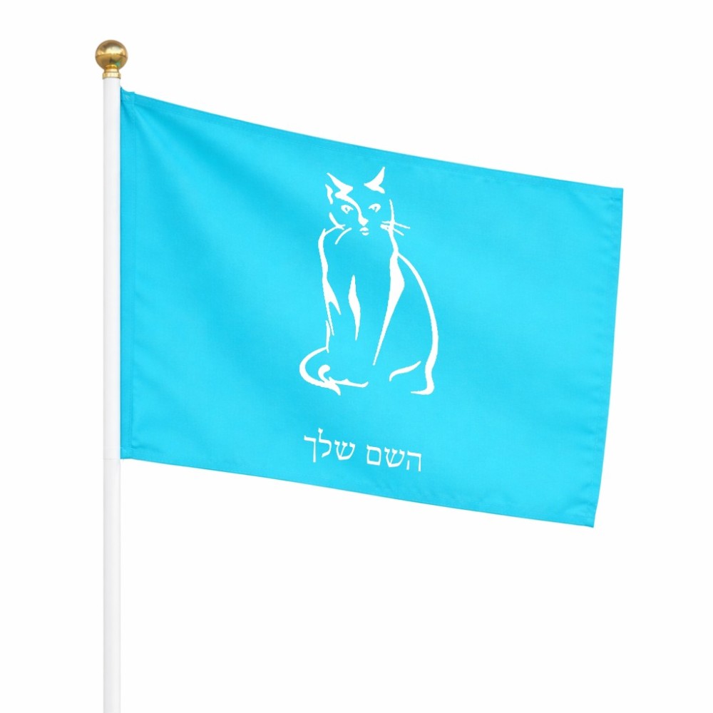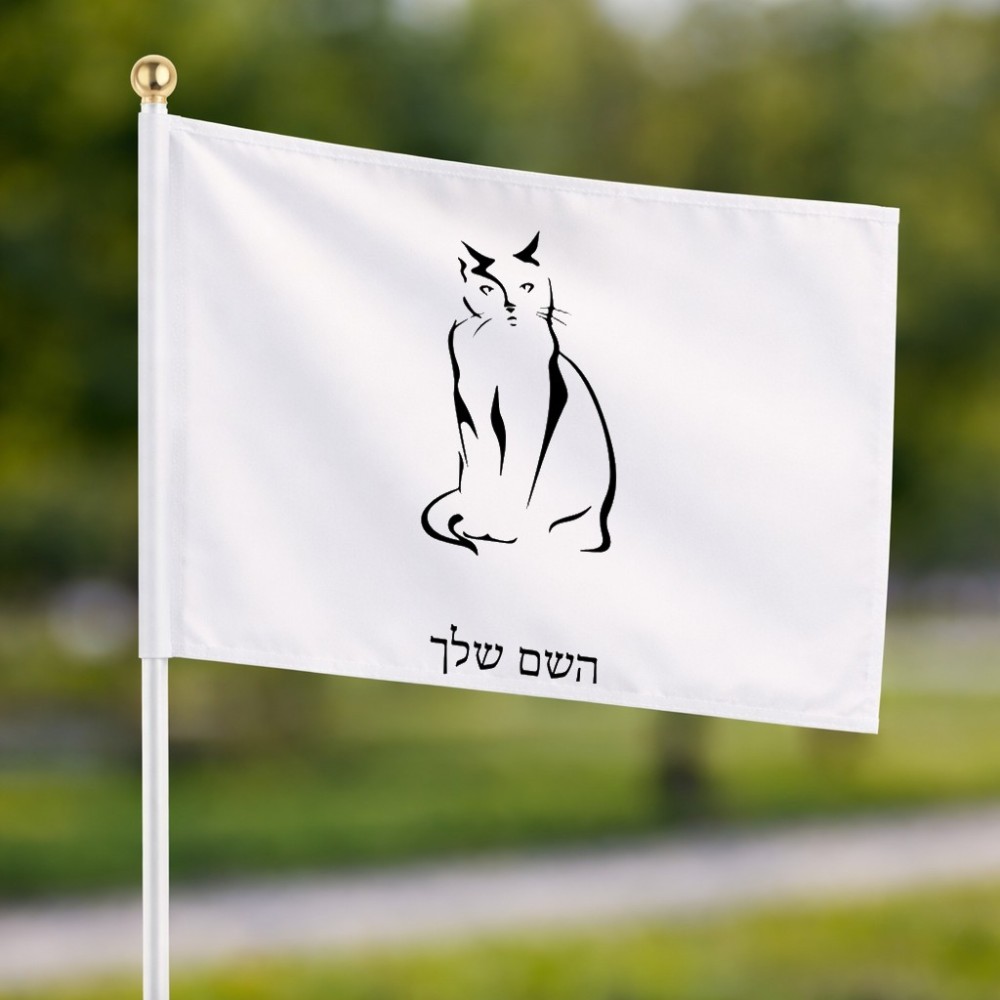 דיגלון בעיצוב אישי עם השם שלך בעיצוב חתול גודל הדיגלון 20.5 × 14 ס"מ, ההדפסה מתבצעת בשני צידי הדגל, את השם המבוקש ניתן לציין בהזמנה, אם לא צויין אנחנו ניצור קשר לבירור.