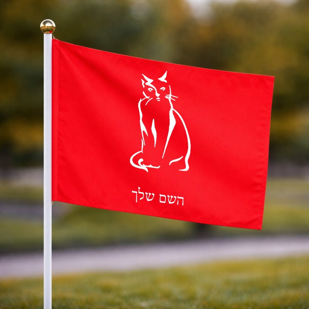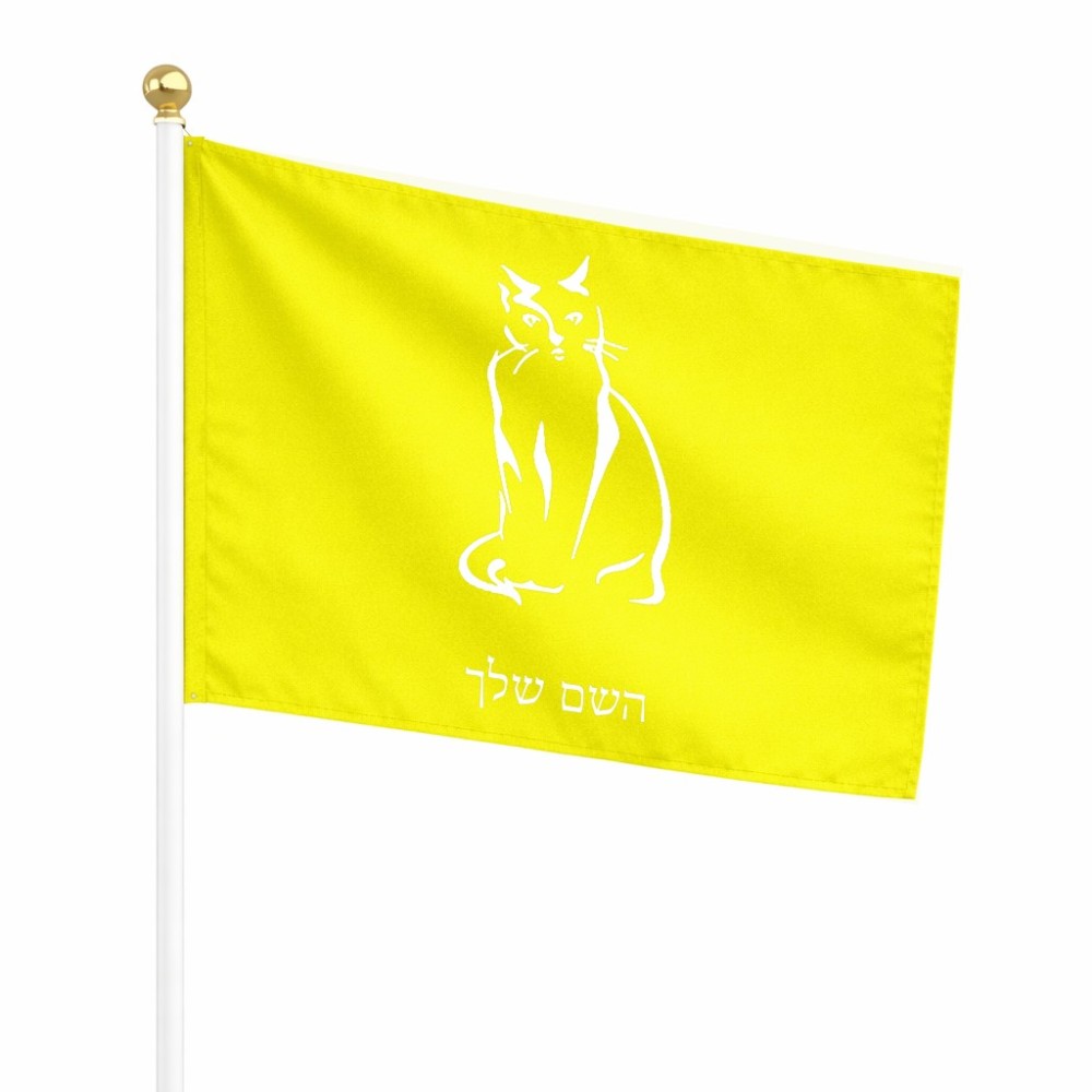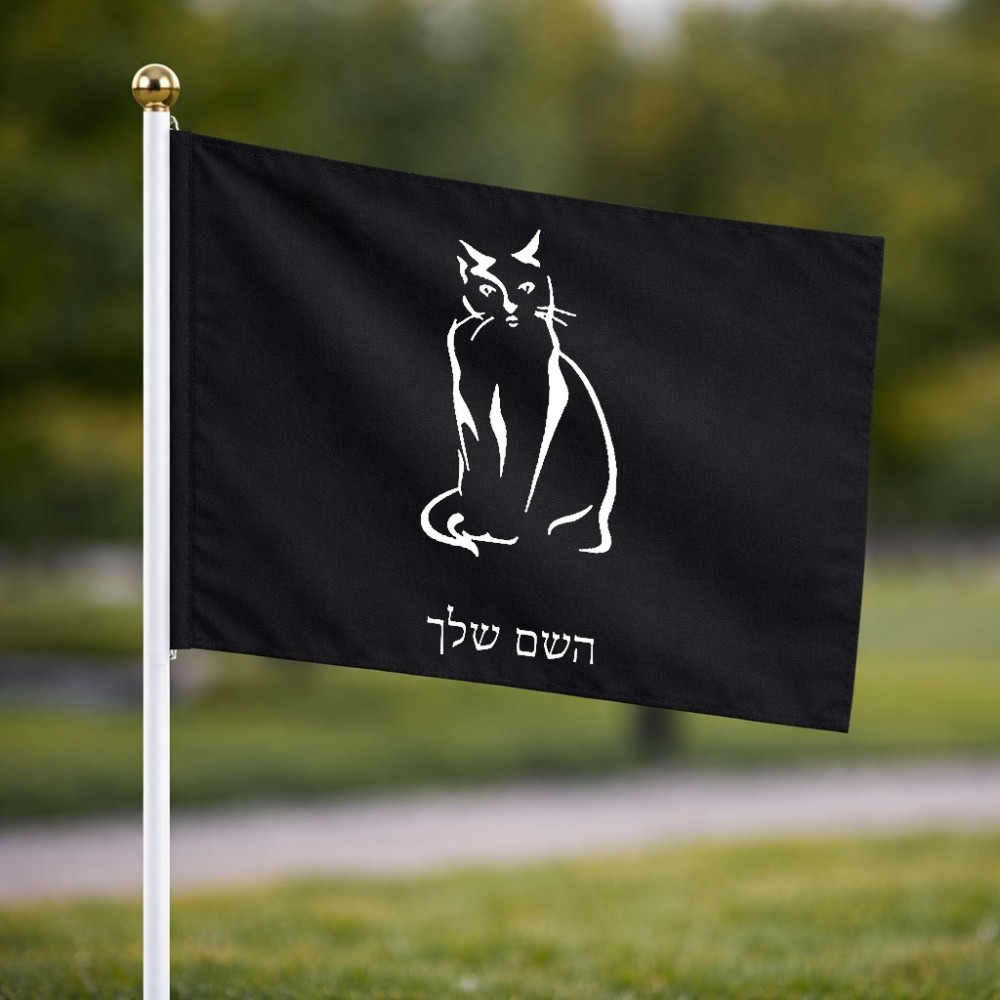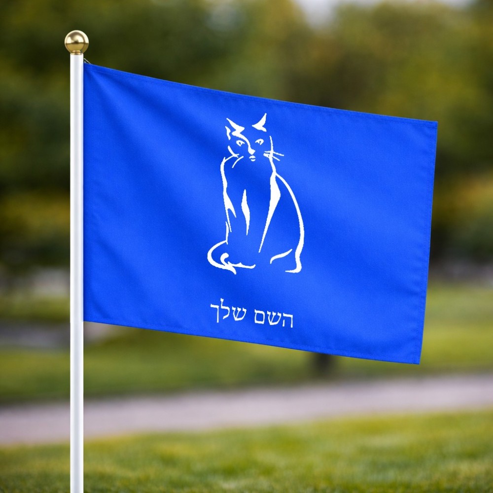 דיגלון בעיצוב אישי עם השם שלך בעיצוב חתול גודל הדיגלון 20.5 × 14 ס"מ, ההדפסה מתבצעת בשני צידי הדגל, את השם המבוקש ניתן לציין בהזמנה, אם לא צויין אנחנו ניצור קשר לבירור.